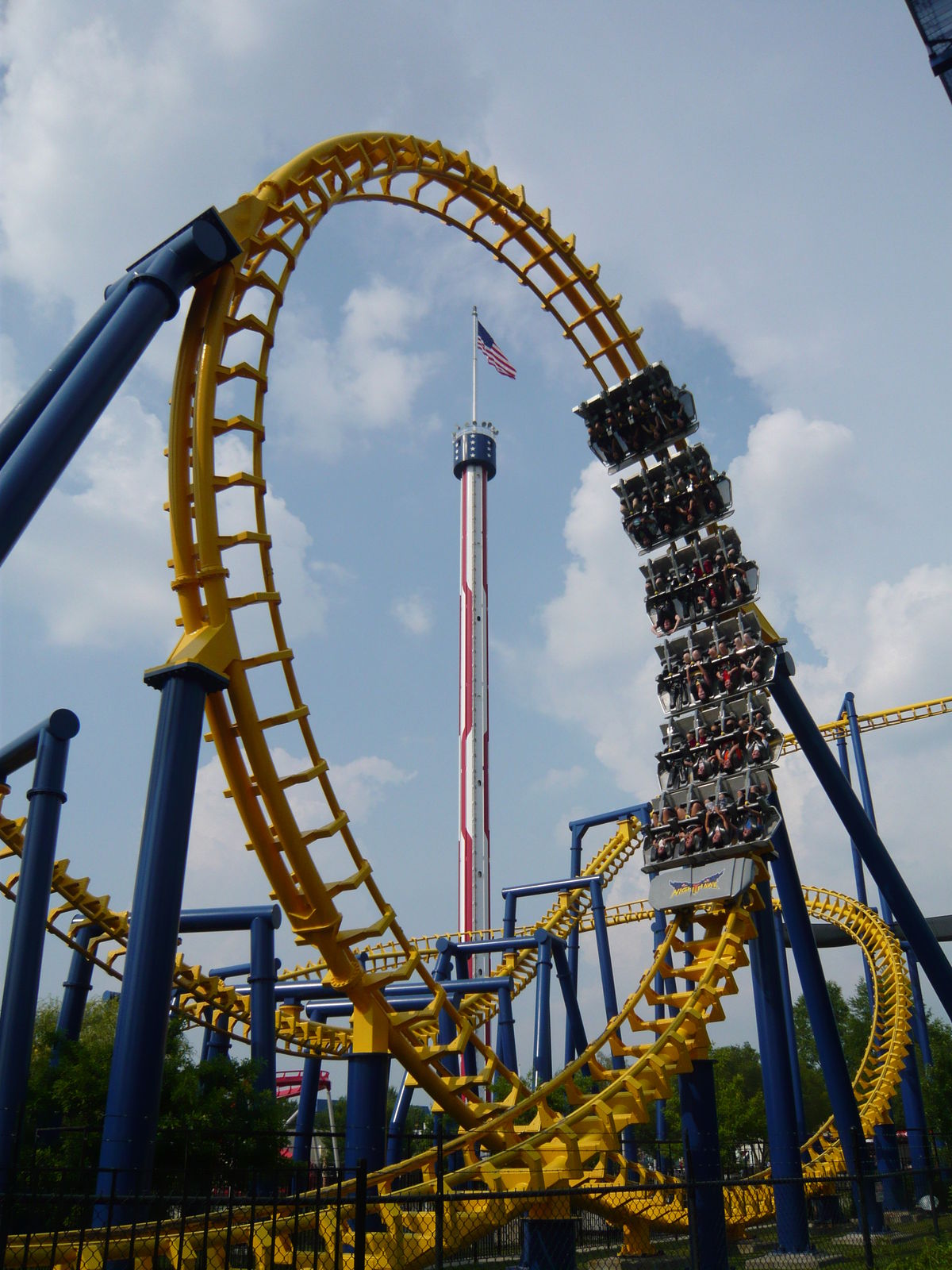 Offenbar war diese Anlage mit Baujahr 1980 die erste Achterbahn der Welt mit vier Überschlägen. Wenn man hier in "