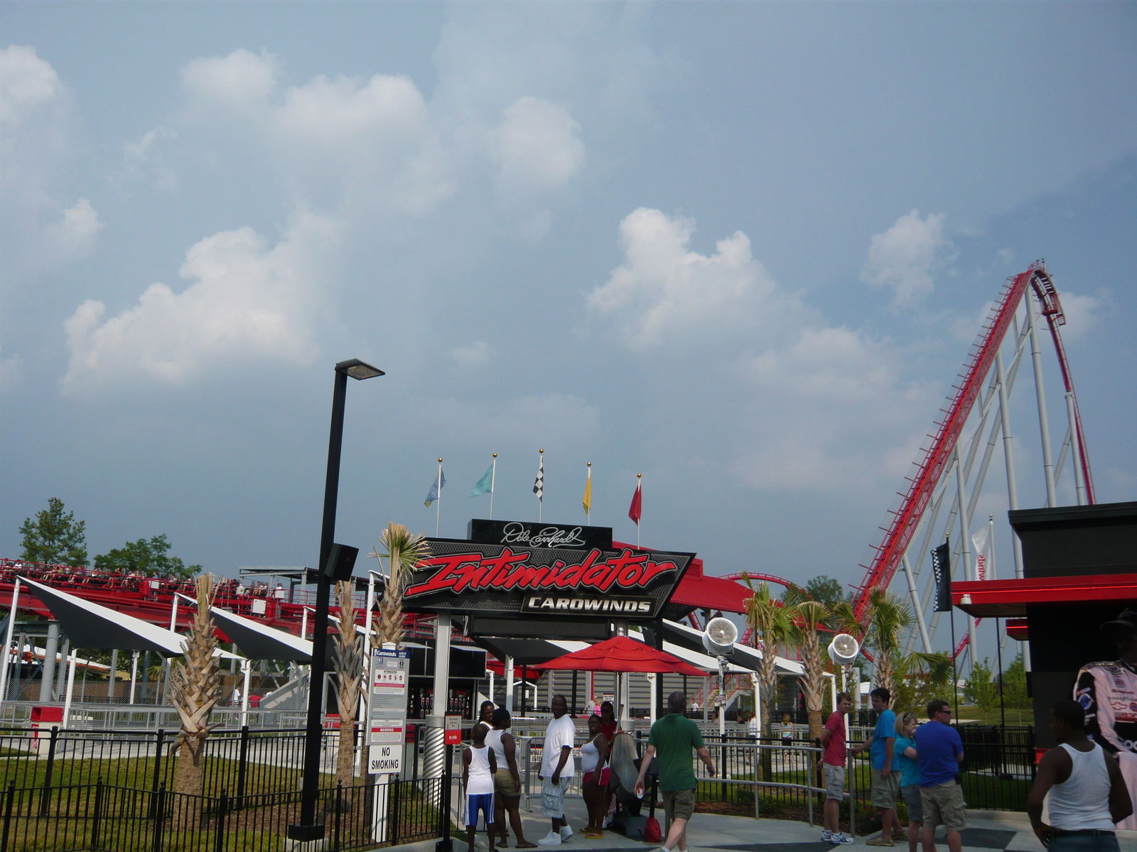 Sonnenschein, Gegenwind, lachende Gesichter! Unsere Fahrten auf Intimidator waren absolut Weltklasse. Natürlich ist er bei weitem nicht so krass wie sein grösserer Bruder in Virginia, aber die wirklich hervorragenden Abfertigungen und die Single Rider Line, gepaart mit mir ohnehin immer zusagenden
