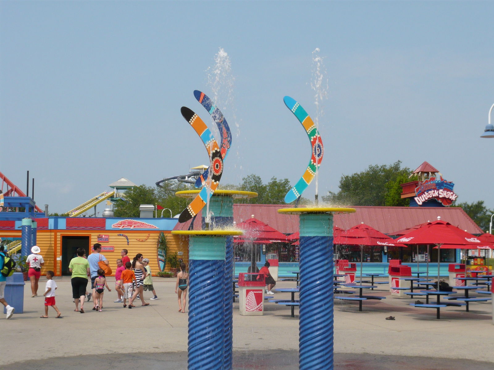 Boomerang Bay noch einen Besuch ab. Die Anzahl der Rutschen ist zwar stattlich, aber nicht sonderlich abwechslungsreich. Es gibt alleine vier vom Fahrerlebnis praktisch identische, stockdunkle Black Hole-Tubeslides, halt einfach auf zwei weit auseinanderliegende Rutschentürme verteilt. Die grüne Raftingrutsche ist ganz witzig und schaukelig, hatte aber wegen der Tatsache, dass nur wenige Rundboote im Einsatz waren, eine ätzend lange Warteschlange.