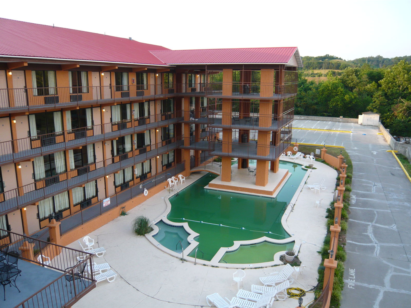 alles rundherum - die Lobby, der Frühstücksraum, die Treppenhäuser, die Lifte, die Flure, die Parkplätze, Beleuchtungen - war einfach nur schäbig und baufällig. Ganz zu schweigen vom layoutmässig eigentlich recht ansprechenden, jedoch komplett algenverseuchten Pool, der auf dem Bild zu sehen ist. Erfahrungsberichte auf Tripadvisor bestätigen, dass dieser selbst einen ganzen Monat nach unserer Übernachtung dort noch nicht gereinigt worden ist. Dieses Geld scheint man sich hier wohl lieber zu sparen. Da wir ja eigentlich eh nur wegen Dollywood hier waren, scherte es uns nicht weiter. Aber für zukünftige Übernachtungswillige in Pigeon Forge kann ich nur empfehlen, eine umfassende Vorrecherche zu machen, gerade auch nach "No-Name"-Hotels. Denn besser als mit diesem HoJo fährt man allemal.