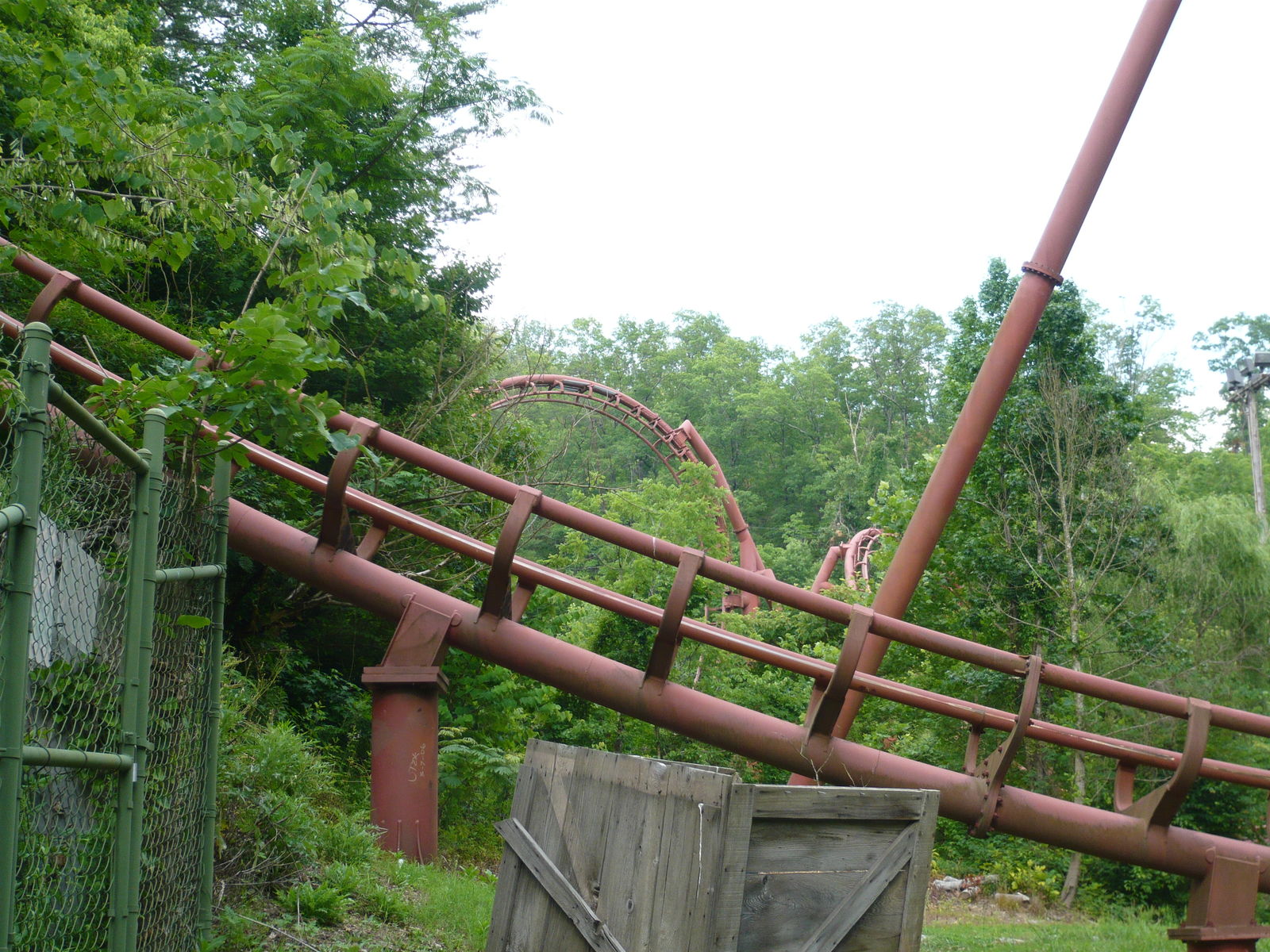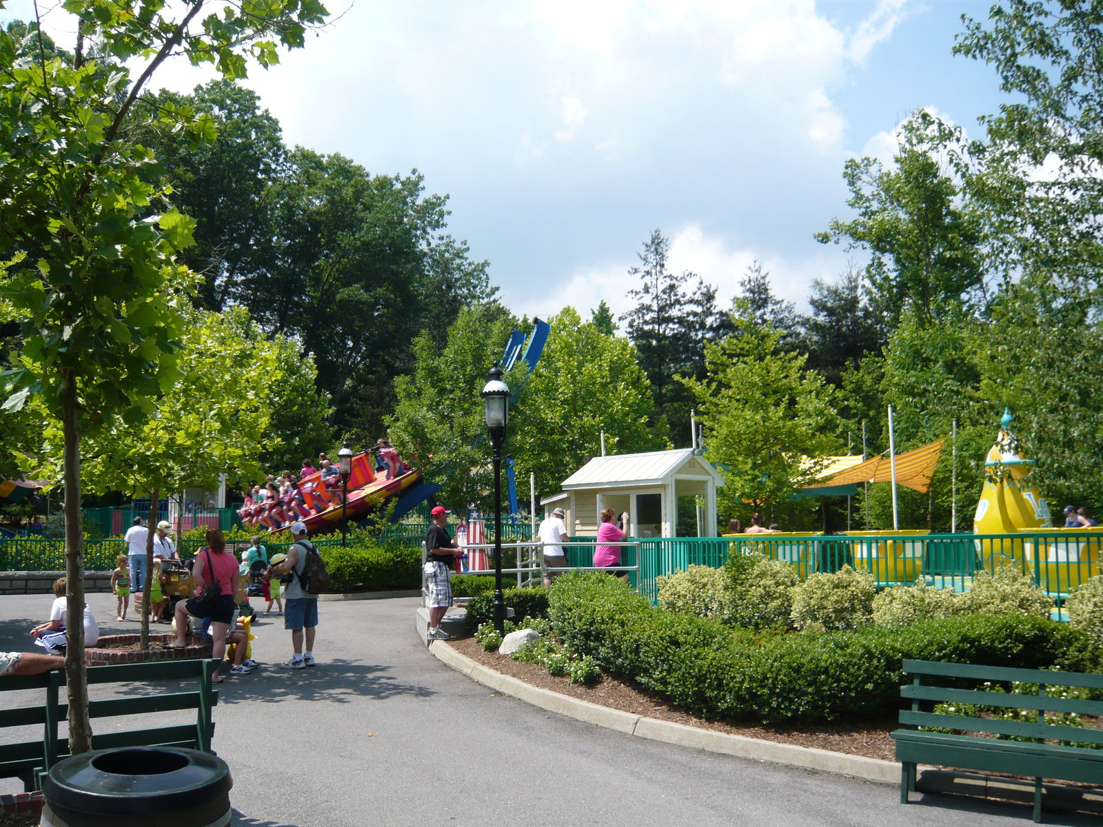 Der nahe gelegene Huss Topple Tower ist diese Saison geschlossen. Wie man dem Schild entnehmen kann, bestehen einige Unstimmigkeiten zwischen Huss und dem Park.