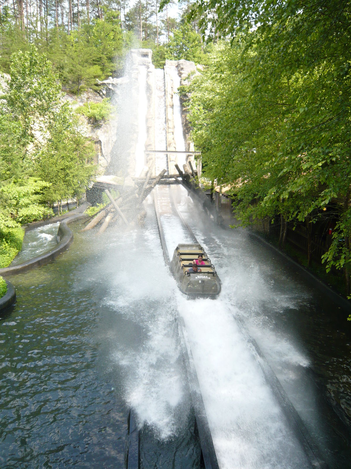 Nicht verpassen sollte man in Dollywood die grandiosen Wasserbahnen! Daredevil Falls in der Nähe von Blazing Fury ist eine klassische Log Flume mit doppelsitzigen Baumstämmen wie Splash Mountain im Magic Kingdom. Hier lassen sich ebenfalls wieder lustige Themeing-Details bis in die hintersten Ecken und Höhlen bestaunen! Nass wird man aber vor allem auf der Zuschauerbrücke und durch verschiedene kleine Wasserspeier, die auf der ganzen Strecke verteilt sind - die einzige grosse Schussfahrt ist vergleichsweise trocken, netzt an heissen Sommertagen aber erfrischend den Kopfbereich.