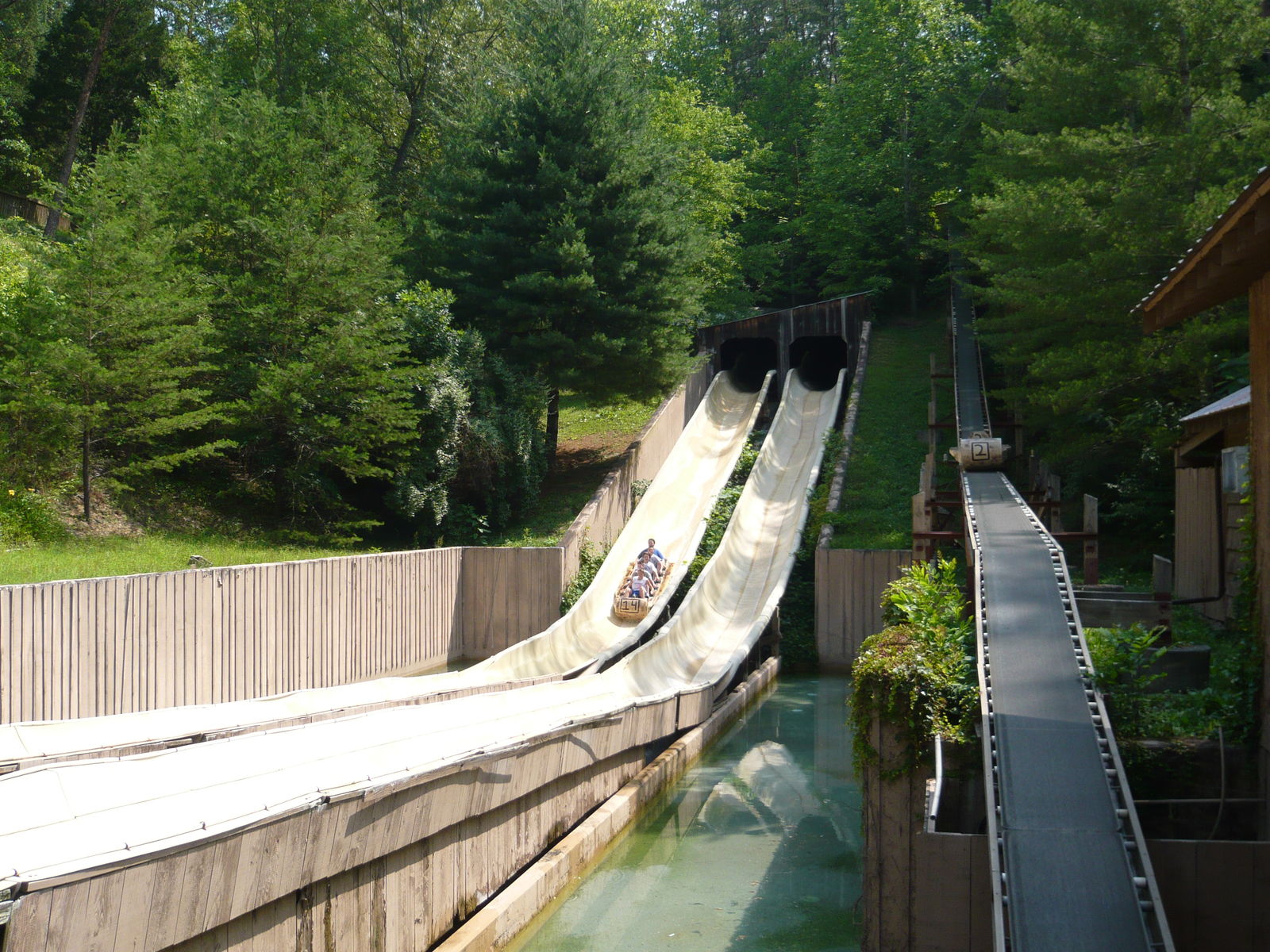 Deutlich nasser geht es auf den grandiosen Mountain Slidewinders zu! In seltsamen Schaumstoff-Fünferschlitten saust man hier über eine kurvige Wasserrutsche einen bewaldeten Abhang hinunter. Den Höhenunterschied zum Startpunkt muss man zu Fuss überwinden - ein weiterer Hauch von "Wie exotisch im Amiland!" auf diesem Trip.