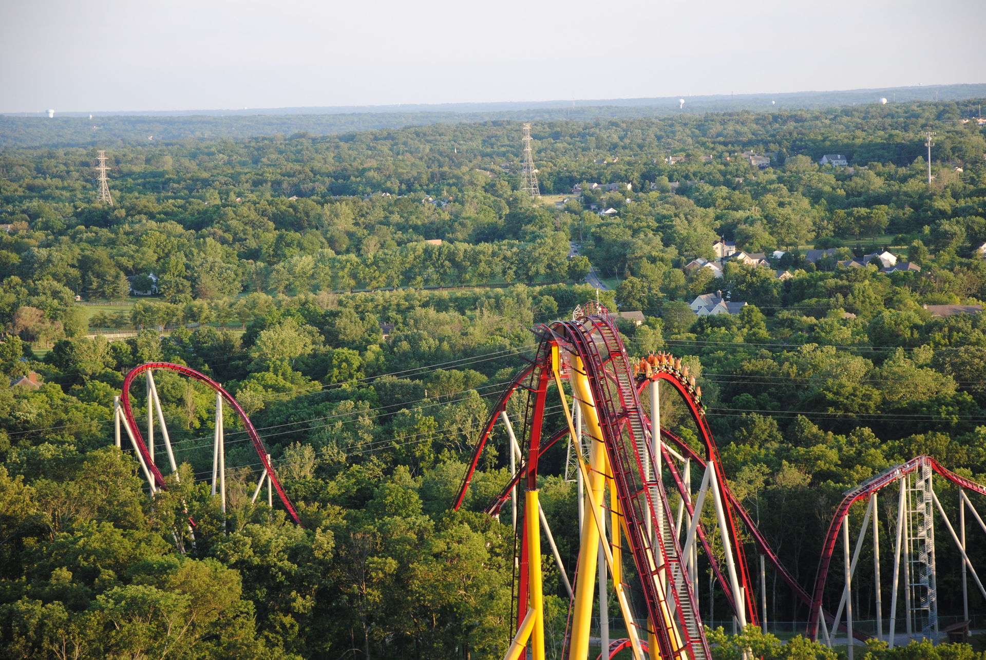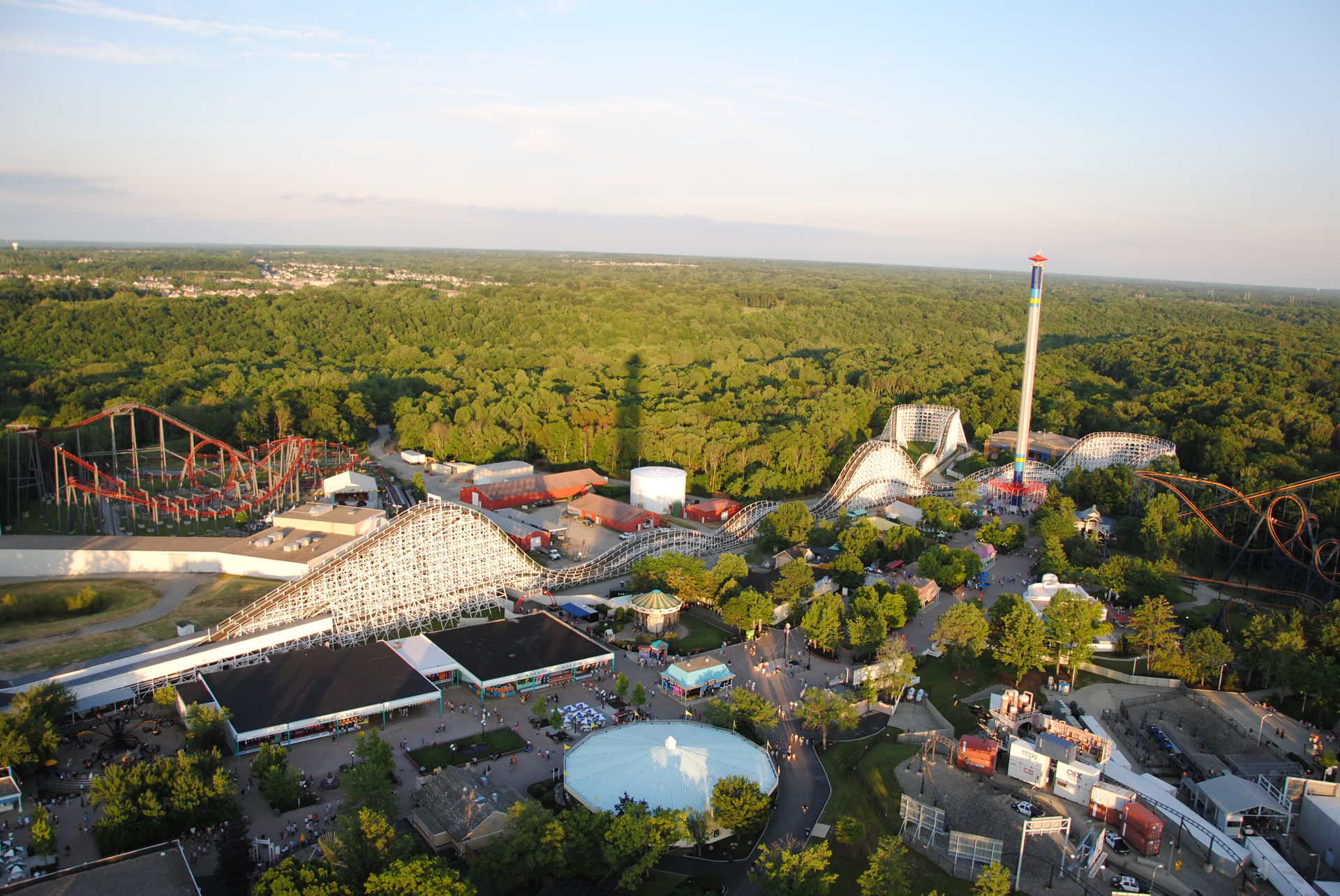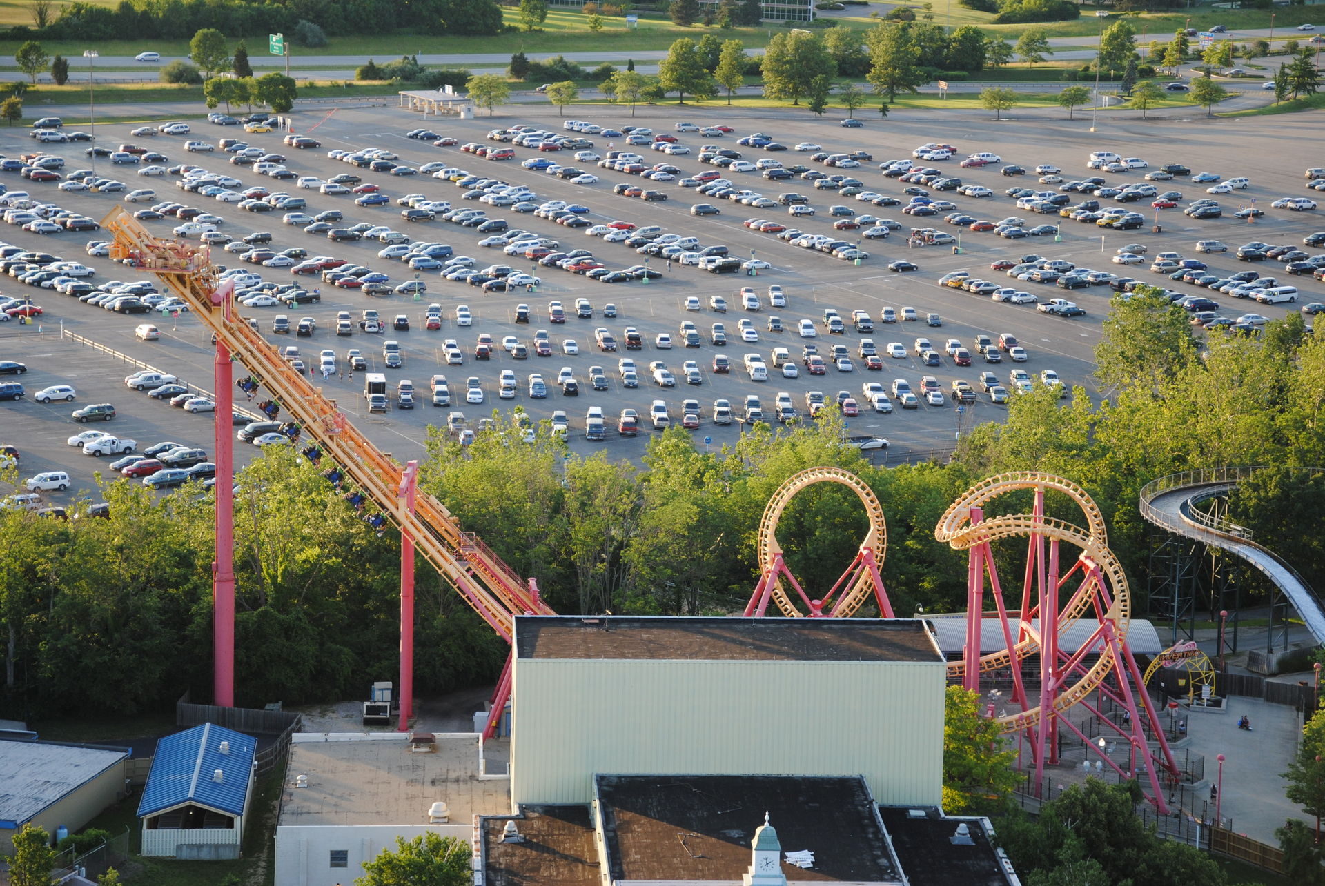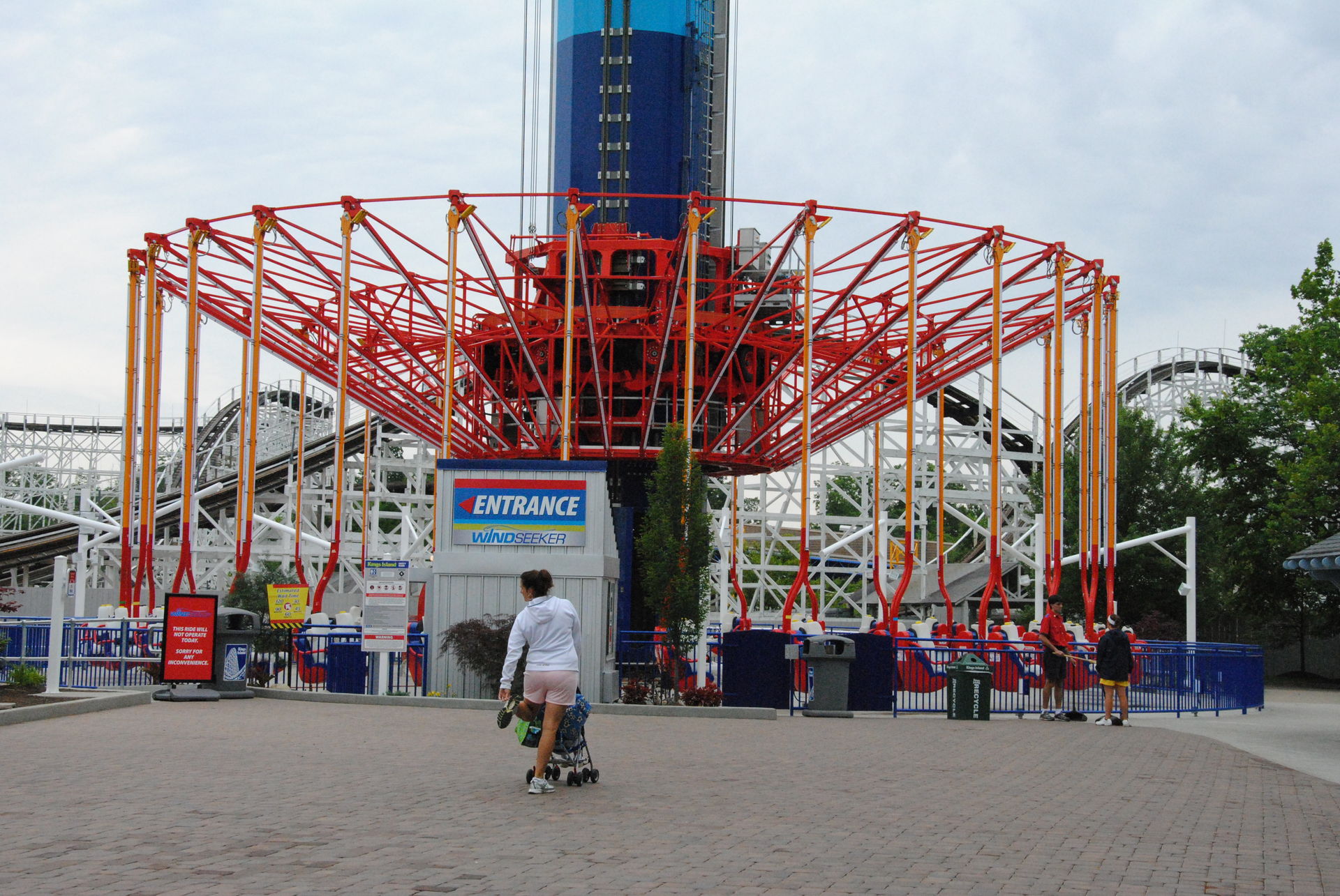 Unseren Besuch in Kings Island hatten wir auf 2 Tage verteilt. Zu einem waren wir an einem sehr sonnigen Sonntag ab nachmittags dort, zum anderen an einem sehr trüben Mittwoch-Vormittag. Am Sonntag war es sehr voll, so dass der Plan, bereits alle Bahnen an diesem Tag zu fahren, nicht ganz aufging.