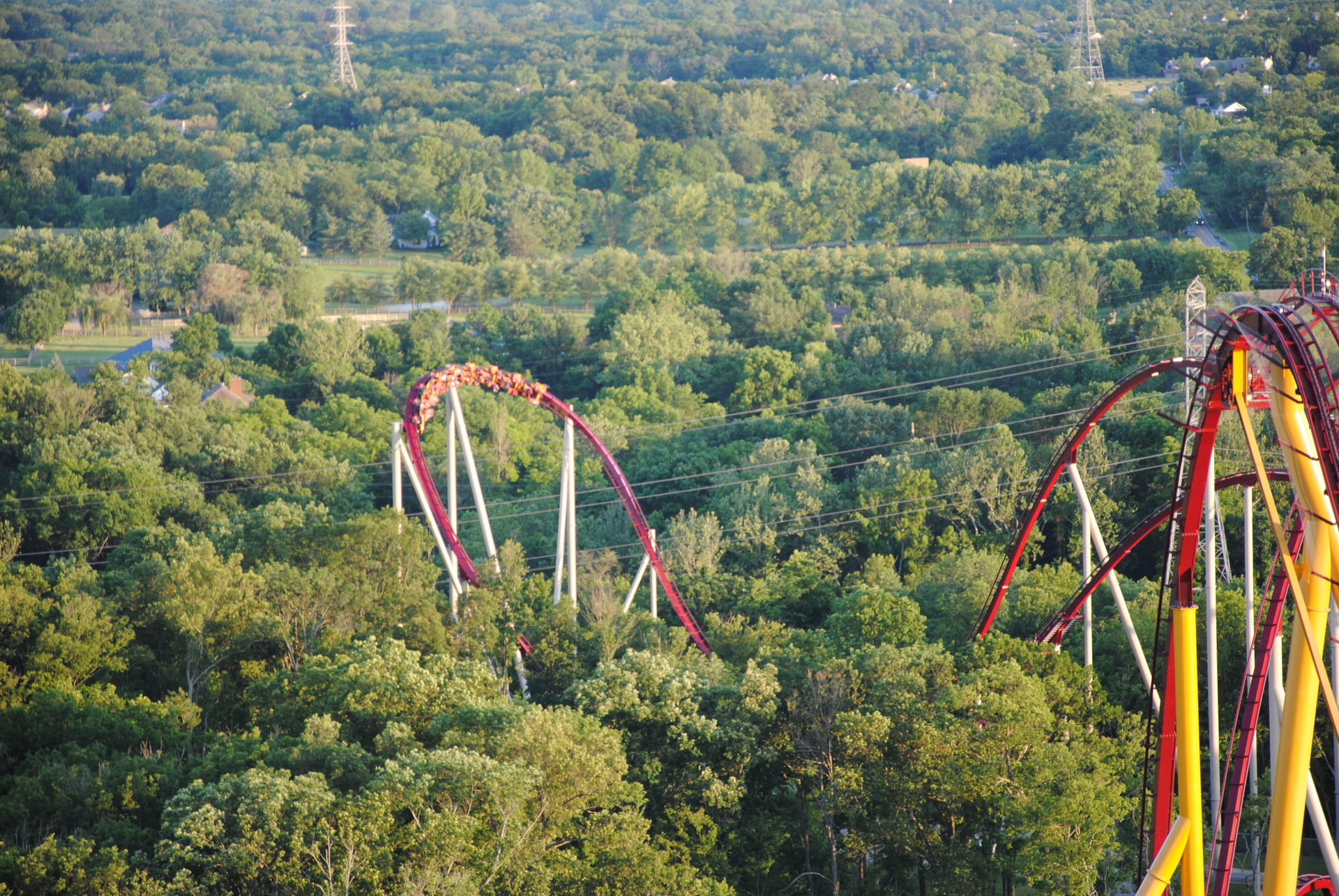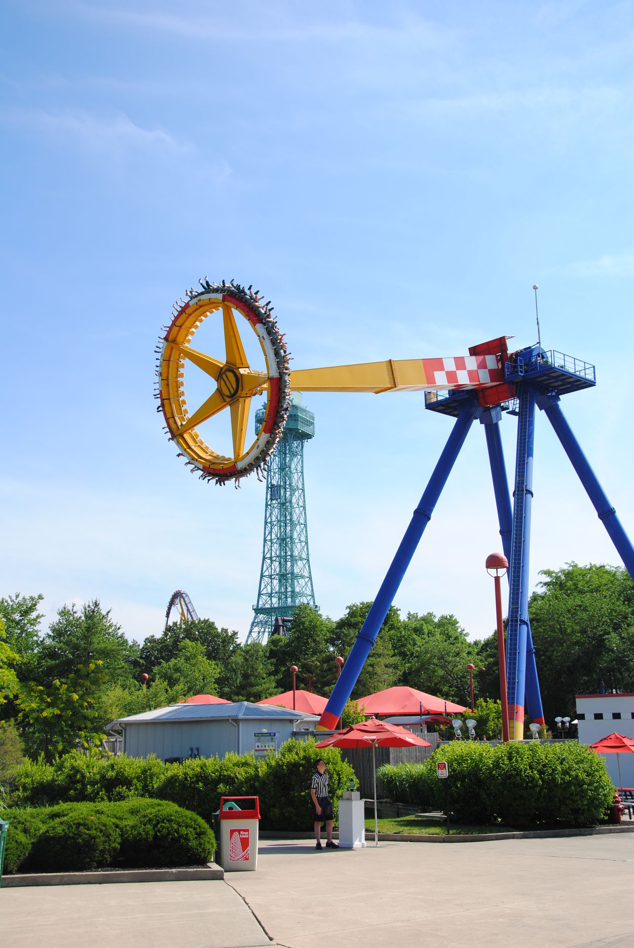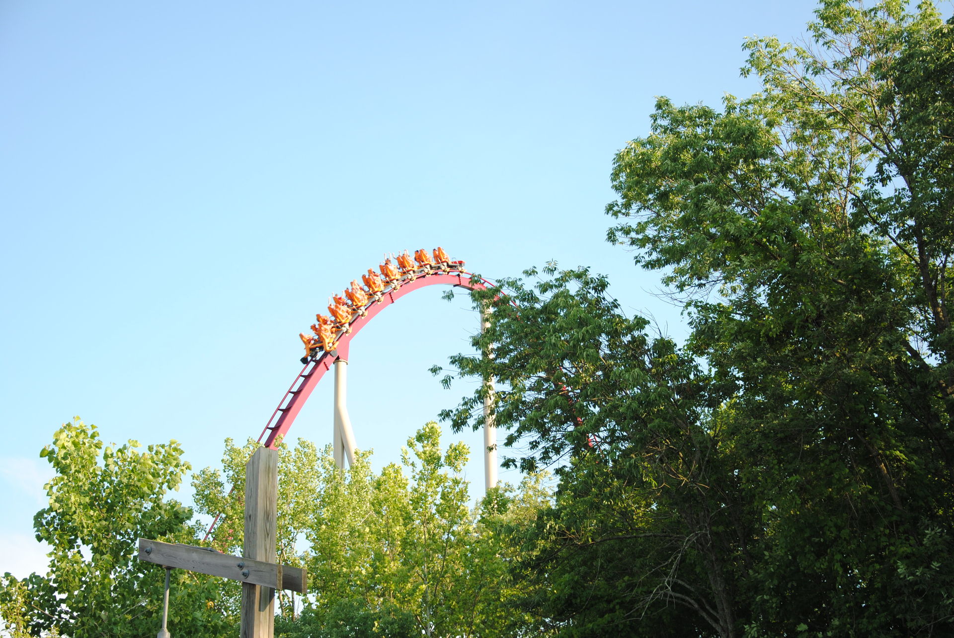 Unseren Besuch in Kings Island hatten wir auf 2 Tage verteilt. Zu einem waren wir an einem sehr sonnigen Sonntag ab nachmittags dort, zum anderen an einem sehr trüben Mittwoch-Vormittag. Am Sonntag war es sehr voll, so dass der Plan, bereits alle Bahnen an diesem Tag zu fahren, nicht ganz aufging.