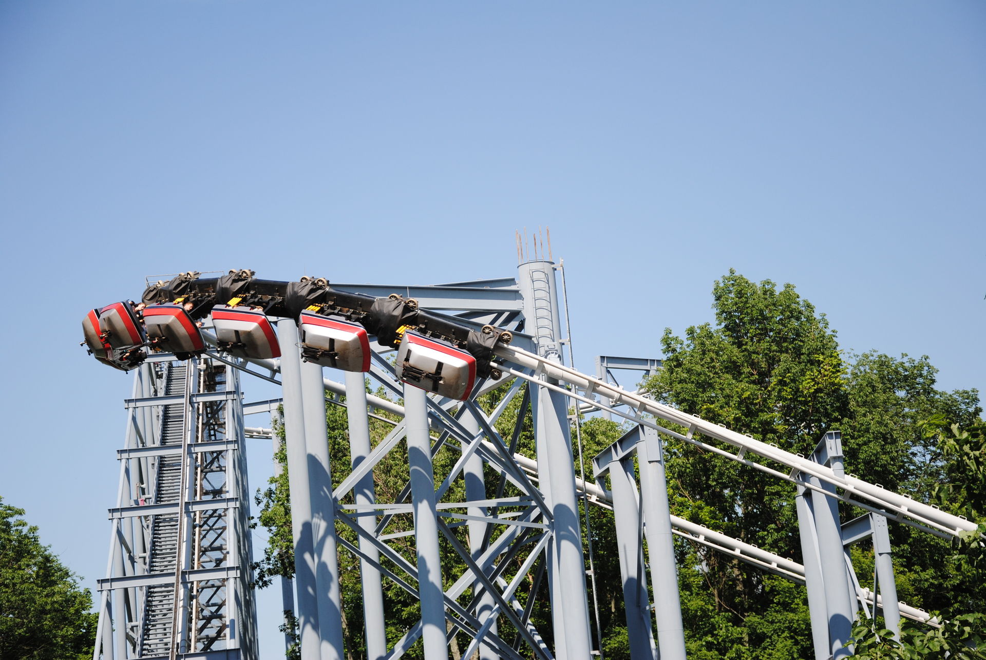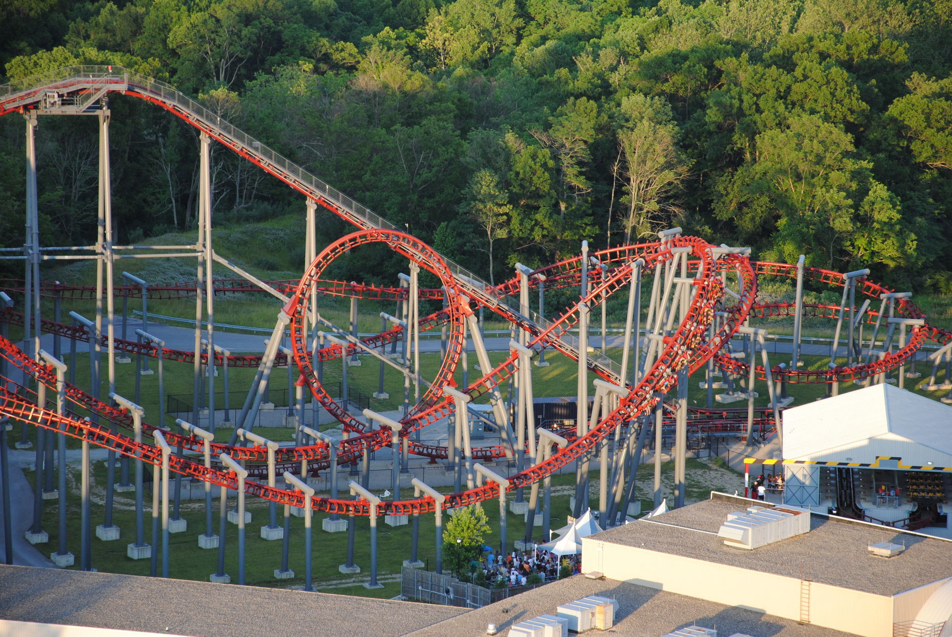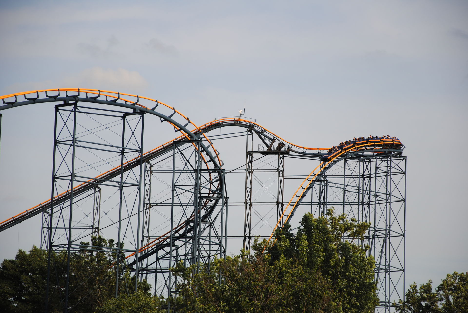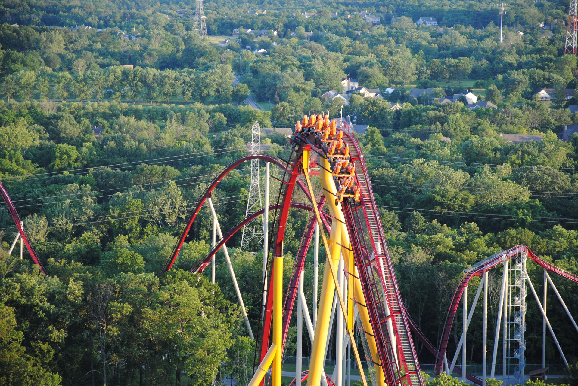 Unseren Besuch in Kings Island hatten wir auf 2 Tage verteilt. Zu einem waren wir an einem sehr sonnigen Sonntag ab nachmittags dort, zum anderen an einem sehr trüben Mittwoch-Vormittag. Am Sonntag war es sehr voll, so dass der Plan, bereits alle Bahnen an diesem Tag zu fahren, nicht ganz aufging.