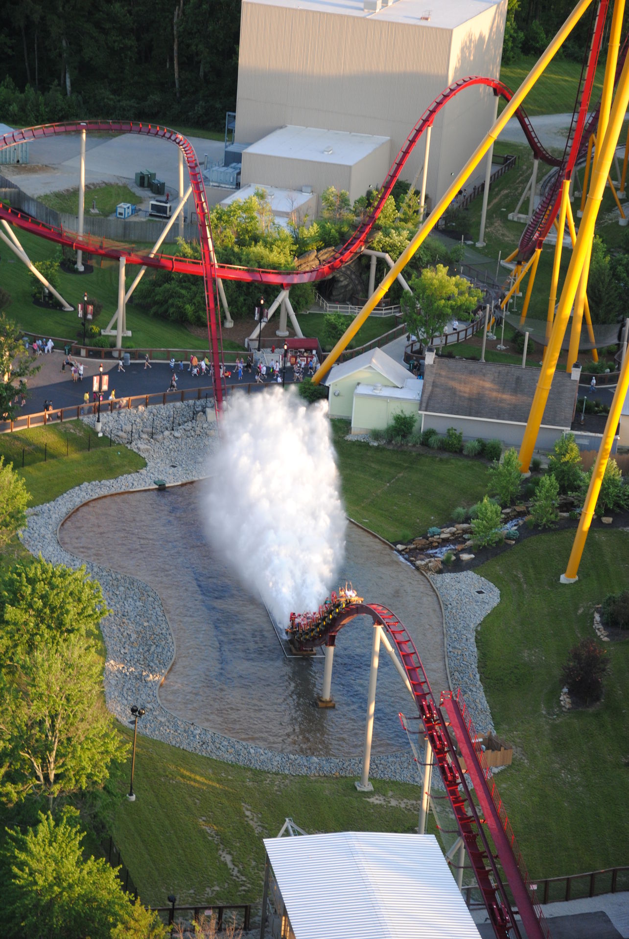 Helix vor dem Splash hat eine deutlich geringere Intensität als bei Nitro oder Goliath (SFoG) und vom Splash selber bekommt man während der Fahrt selbst in der letzten Reihe nur sehr wenig mit, sieht von außen aber schon toll aus. Alles in allem hat die Schlange sich als tolle Spaßmaschine bewiesen und belegt hinter Nitro den zweiten Platz im eigenen B & M Mega Coaster Ranking. Wartezeit kann man übrigens durch eine Single Rider Line (oder durch den „early park entry“ für Saisonkarteninhaber) drastisch verkürzen. Allerdings sind die Platzzuweiser in der Station oft zu langsam (bzw. die Zugabfertigung zu schnell) , den Zug mit Singles aufzufüllen, so dass wir immer wieder leere Plätze im fahrenden Zug entdecken konnten.