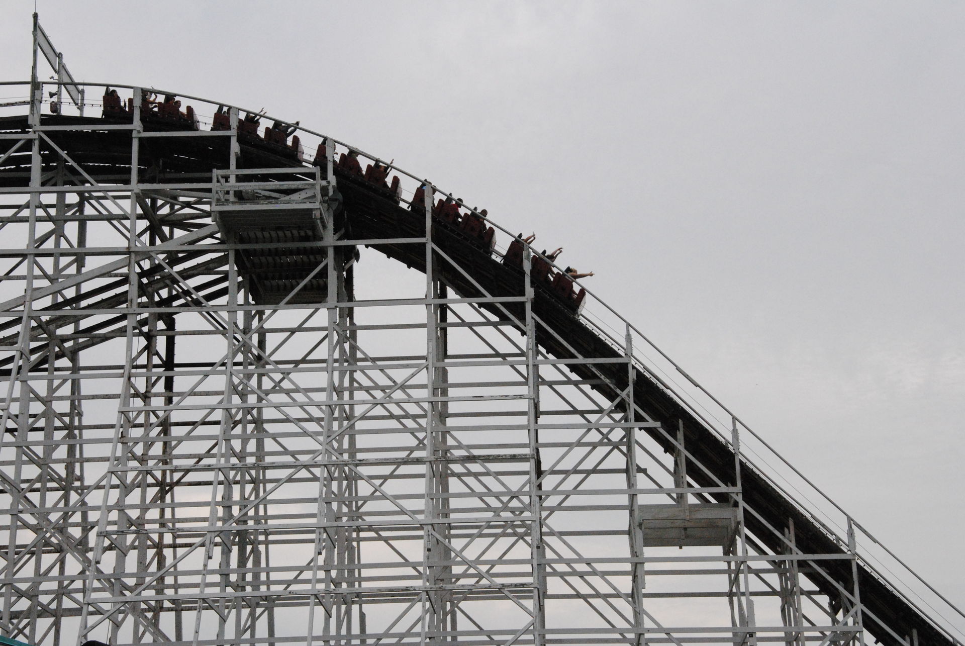 Gerade als sich das Tor für uns öffnen sollte, klingelte das Telefon beim Ride OP. Ich ahnte schon was kommen würde, genau, erst mal eine Pause. Aber mit dem ersten Donnerhall hatte ich die Hoffnung aufgegeben, das die Bahn schnell wieder öffnen würde, zumal für den restlichen Tag Gewitter angesagt waren. So sind wir dann etwas früher als geplant nach Cedar Point aufgebrochen.