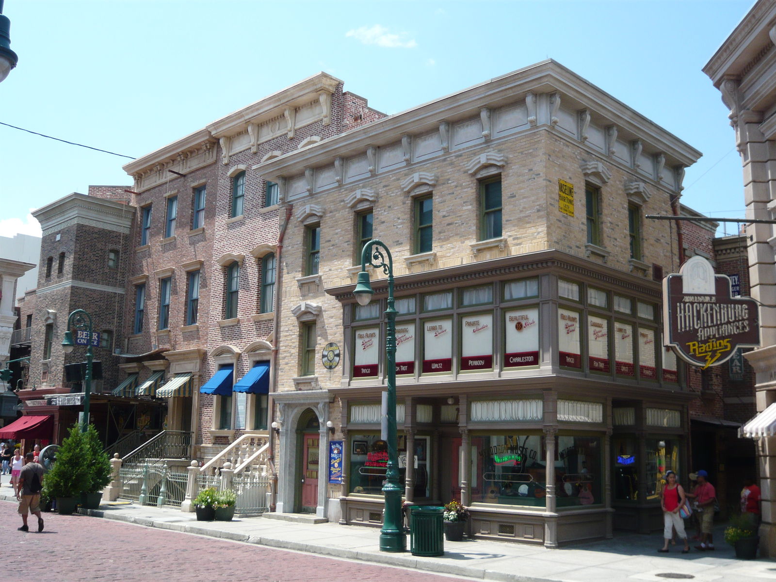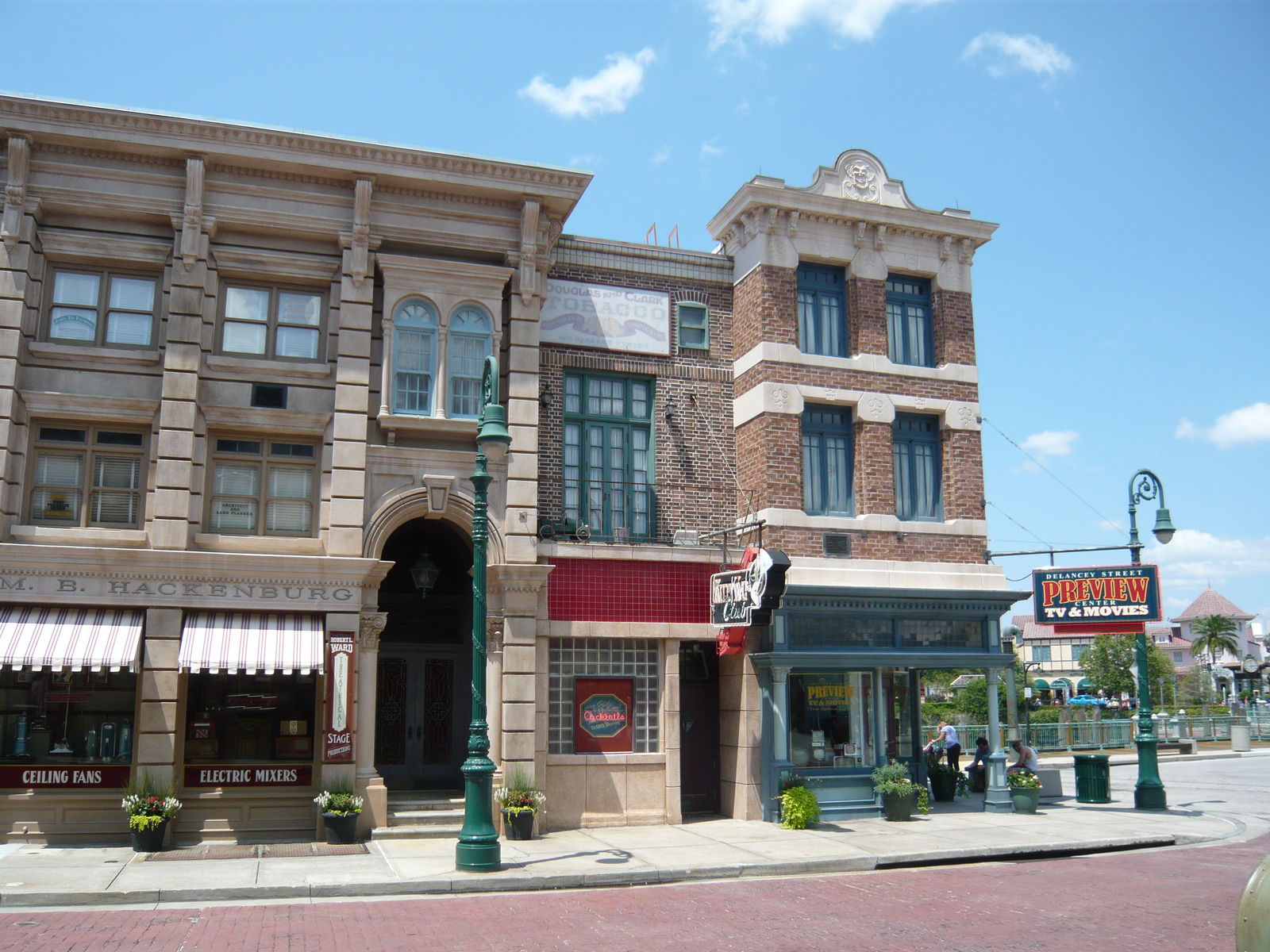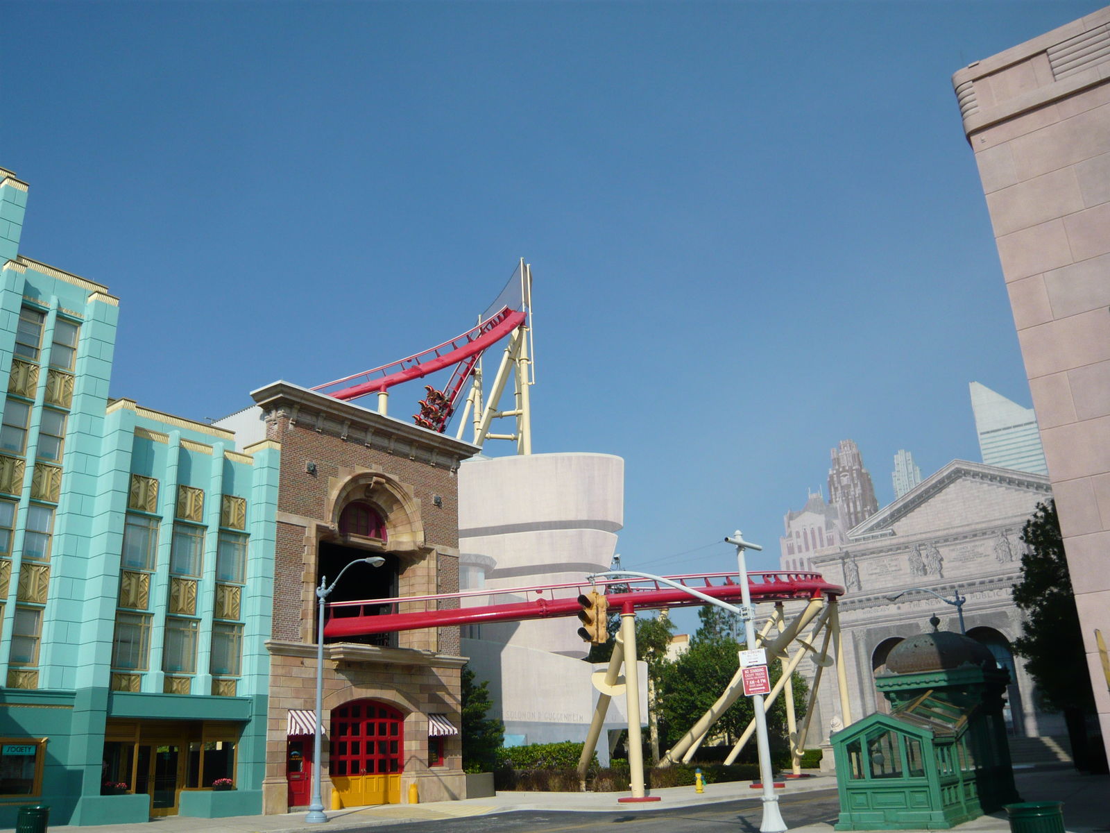 Auch hier kommt man aus dem Staunen nicht mehr heraus! Absolut Brooklyn-typische Backsteinfassaden und Feuerleitern... Wassertürme, Stromleitungen und Strassenlampen... Genial gemachte und bis ins kleinste Detail ausgestaltete fiktive Restaurants, Läden, Dienstleistungsbetriebe und Vergnügungsetablissements... Verwinkelte Seitengassen... Hebräische Schriftzeichen auf Werbetafeln - wohl eine Hommage an die New Yorker East Side. Eine Werbung für Asthma-Zigaretten in einem Apotheken-Schaufenster - "Good for your health!" Absolut typische Fronttreppen und Kellereingänge zu den Häusern... Hat man in Frisco noch grosse Augen gemacht, klappt einem hier die Kinnlade runter! Hier kann man sich echt kaum sattsehen. So schön, so kreativ, so detailverliebt, stellenweise verblüffend authentisch und einfach total genial gemacht! Dieses Level an Themeing kann wohl nur noch Disney toppen.