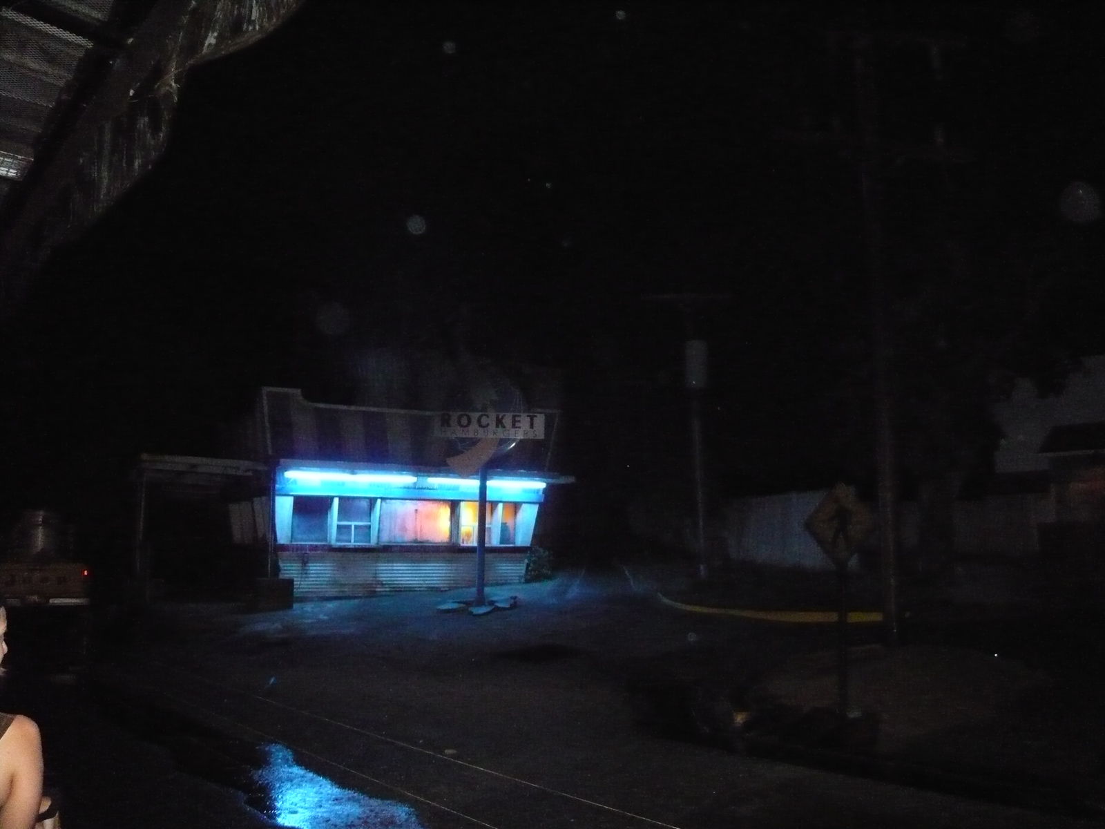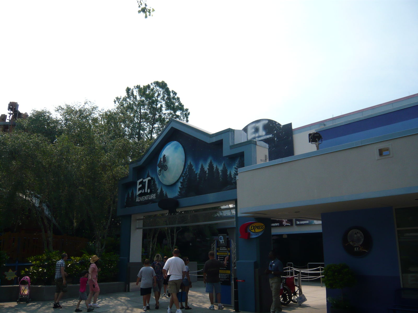 Hierauf war E.T. Adventure an der Reihe, das der eine Kollege und ich schon aus den Studios in Hollywood kannten. Ebenda wurde dieser stellenweise niedliche und schön gemachte Darkride mit aufgehängten Gondeln jedoch für die dortige Version von The Mummy geopfert. Im Prinzip sitzt man auf Fahrrädern und es wird die finale Fluchtszene des Films nachgestellt. Im ersten Teil kurvt man also durch den finsteren nächtlichen Wald, immer auf der Flucht vor den Polizeiautos, danach hebt man mithilfe von E.T.s Kräften in den Sternenhimmel ab, direkt vor dem scheinenden Vollmond durch. Gerade diese Szene ist echt toll gemacht, wird vom originalen Film-Soundtrack untermalt und man schwebt über eine wirklich detailvoll gestaltete und beleuchtete kleine Modellstadt drüber. Am Ende dann auf E.T.s Heimplaneten angekommen, wird man von E.T.s Verwandten und Freunden begrüsst und ein Fest mit absolut seltsamer Musik wird ausgerichtet. Hier wirken die in die Jahre gekommenen Animatronics dann wieder etwas gar komisch, besonders einen "tanzenden" E.T.-Verschnitt hab ich hier äusserst verstörend im Gedächtnis!