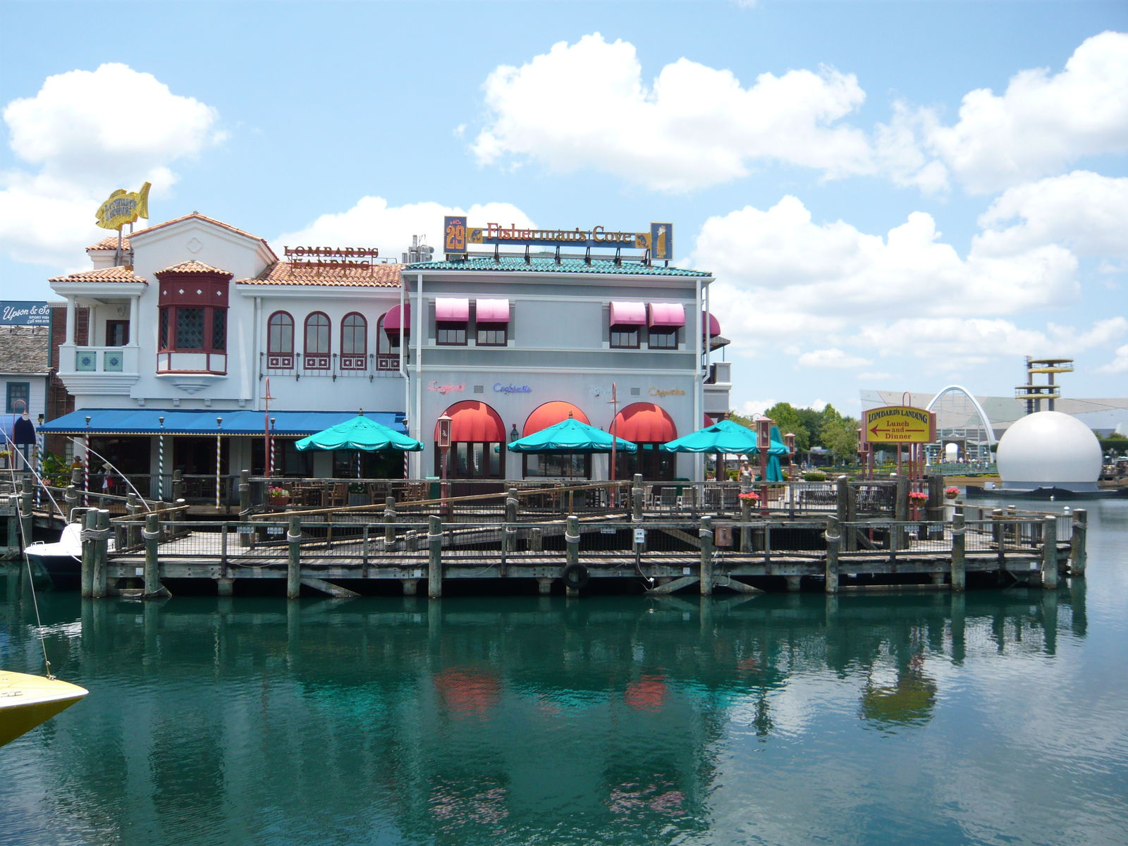 Bubba Gump Shrimp Co. oder auch ein Hard Rock Café, das sich etwas weiter entfernt, am anderen Ufer der angrenzenden Lagune befindet. In so einer Aufzählung fehlen eigentlich nur noch ein Planet Hollywood und ein Rainforest Café, meines Wissens aber beides unweit von hier entfernt bei Disney anzutreffen.