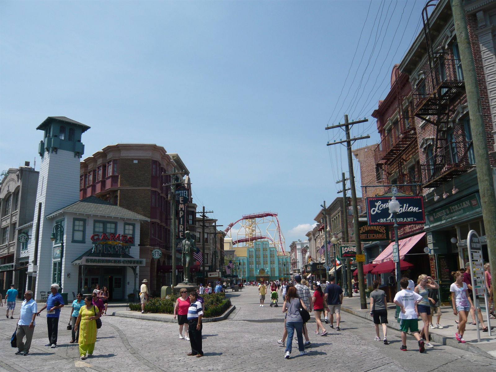 Die nahegelegene Beetle Juice-Show hatten wir gerade verpasst, aber der eine Mitstreiter und ich kannten die Show bereits aus Los Angeles. So haben wir dann erst einmal die wirklich unfassbar schönen Themenbereiche San Francisco/Amity und New York erkundet.