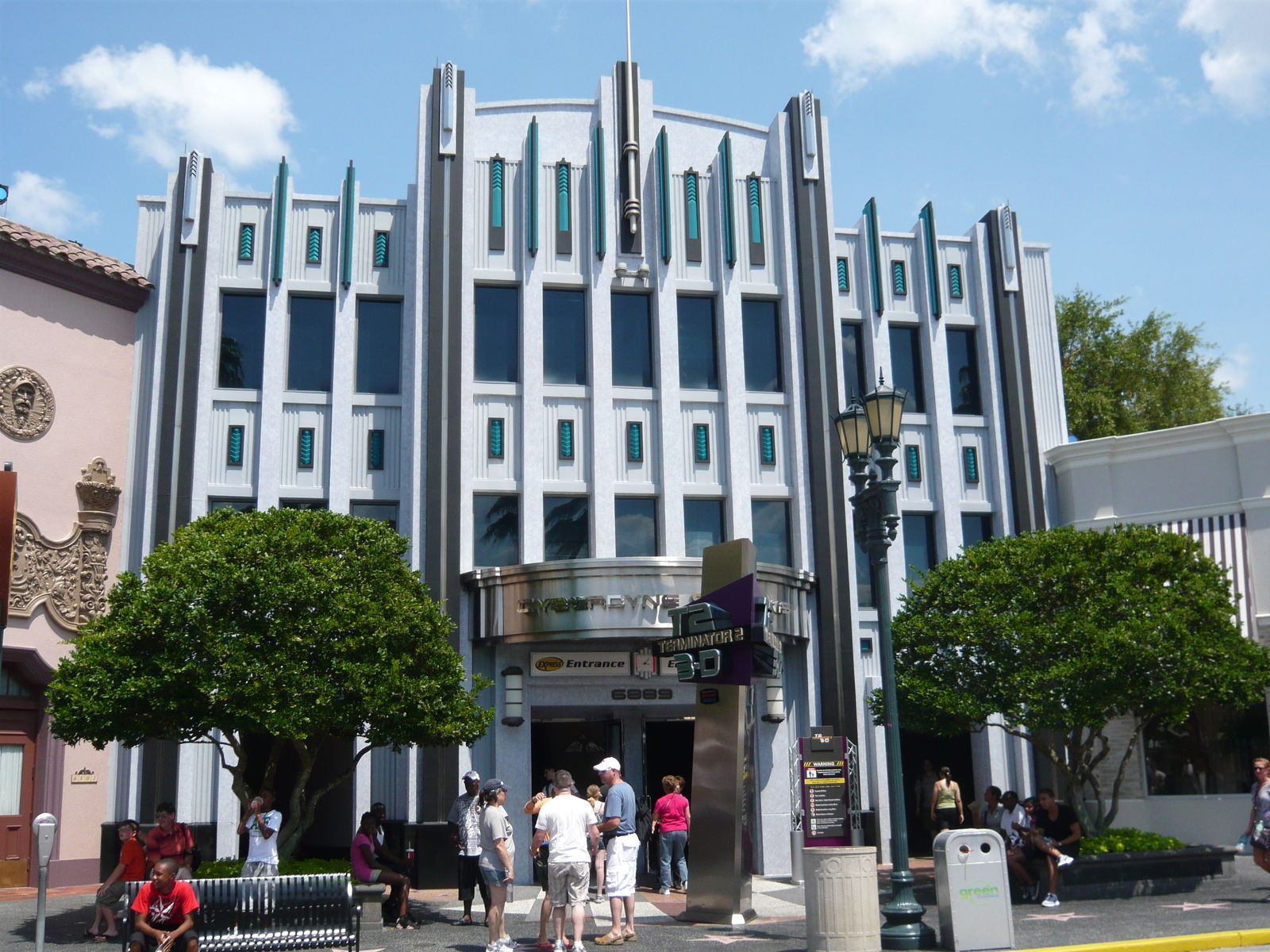 Nach einem leckeren kleinen Mittagessen haben wir uns dann die Show Terminator 2: 3D angeschaut, die der eine Kollege und ich schon aus Hollywood kannten. Allerdings war sie für uns beide insofern Neuland, als dass wir damals noch zu jung waren, um die ganzen Dialoge und die Thematik zu verstehen. Zunächst beginnt das Ganze als zynische Tour durch die Cyberdyne Corporation, wo eine Hostess verschiedene Filmfetzen vorführt, in welcher die zukunftsträchtigen Innovationen der Firma aufgezeigt werden. Dieser wird einige Male durch Warnhinweise der Protagonisten aus dem Film unterbrochen - man solle der Firma keinen Glauben schenken und schnellstmöglich flüchten, bevor hier alles in die Luft fliegt. Die Hostess aber versichert, die Lage unter Kontrolle zu haben und geleitet die Gäste dann in den eigentlichen Kinosaal.