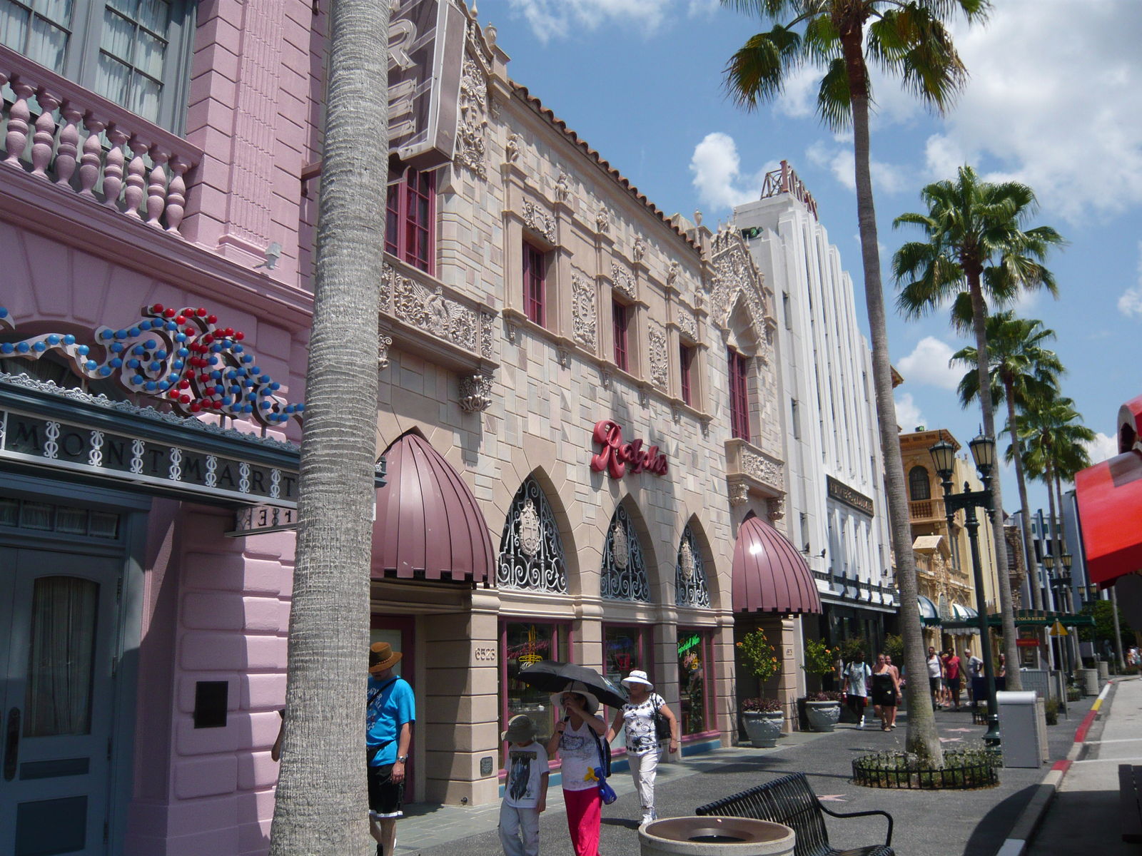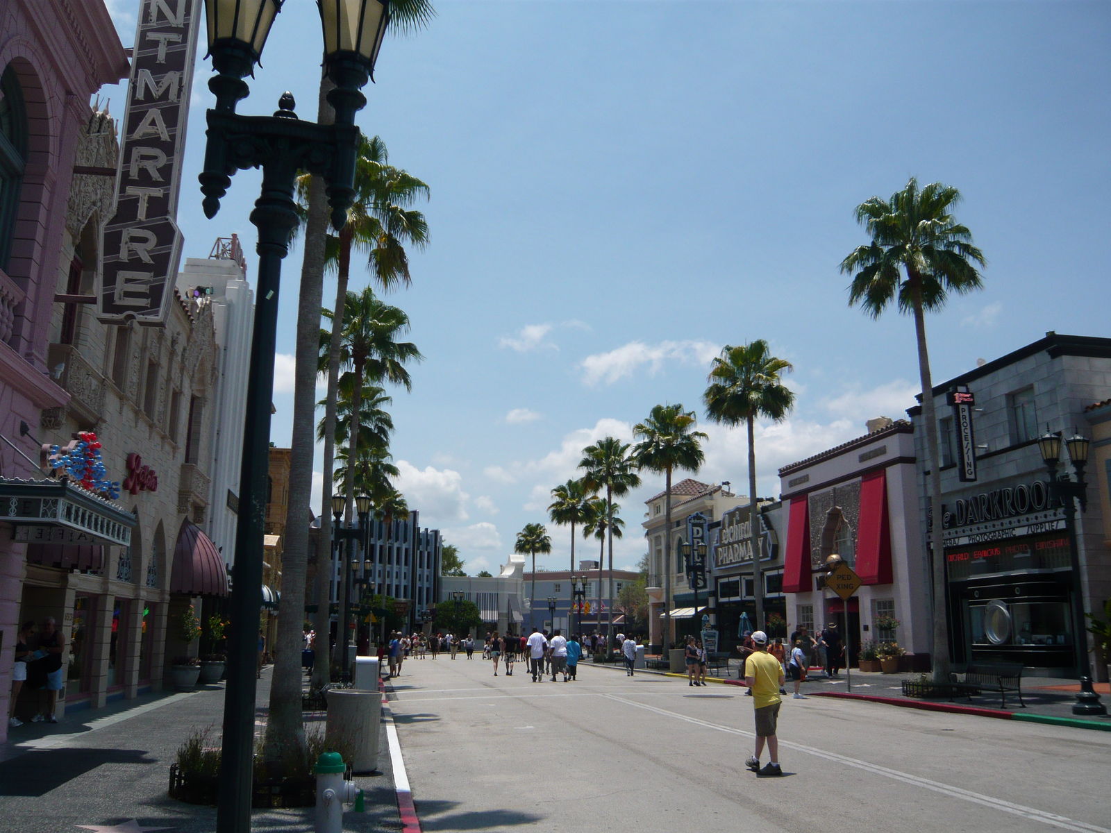 Danach durchqueren wir den grossen Boulevard, der durch den Themenbereich Hollywood führt. Auch hier wieder mit zahlreichen verblüffenden Details wie einem Mini-Walk of Fame auf dem Trottoir, schicken Boutiquen-Schaufenstern, einem 50er-Jahre-Diner, stilechten kalifornischen Palmen etc.