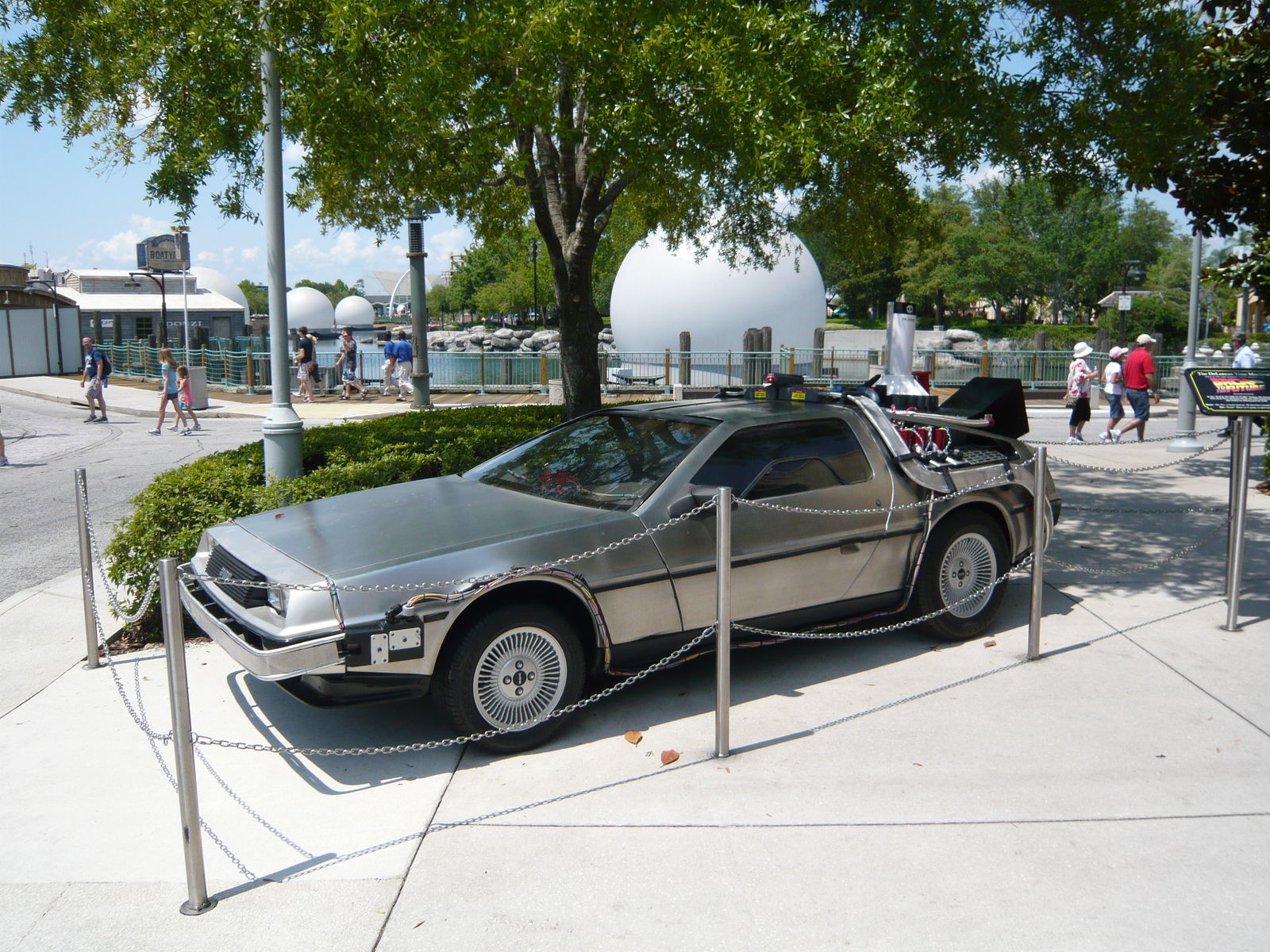 Der De Lorean aus Back to the Future ist trotz der inzwischen nicht mehr existenten Simulatorattraktion noch neben dem Shrek-Kino abgestellt. Hätte ich zwei Sekunden später abgedrückt, hätte ich hier sogar noch ein auf einem Velo vorbeifahrendes Double von Doc Brown mit einfangen können.