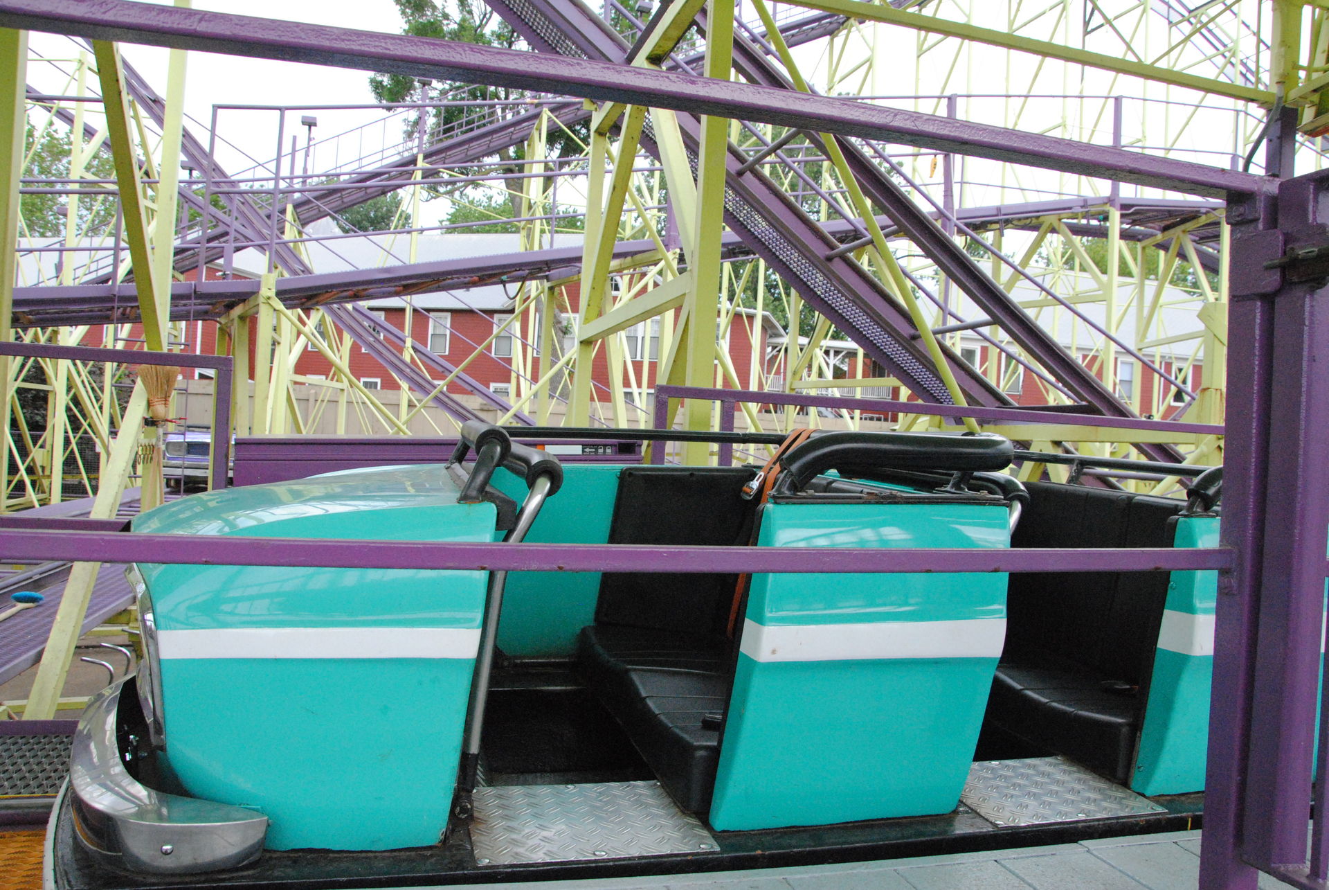 Corkscrew von Arrow. Der fuhr sich eigentlich noch ganz annehmbar, wäre mir nicht ein Malheur passiert. Ich dachte ich bin pfiffig und ziehe den Schulterbügel so wenig wie möglich an mich ran, um mehr Freiraum zu haben. Dummerweise hat die Bahn nach der ersten Abfahrt einen Airtimehügel, der mich ziemlich aus dem Sitz gehoben hat. Während ich aus dem Sitz gehoben werde, kommt der Bügel einiges näher an mich ran und rastet ein, bevor ich wieder vollständig im Sitz gelandet war. Nun hing ich irgendwie eingequetscht mehr über als im Sitz und musste durch den