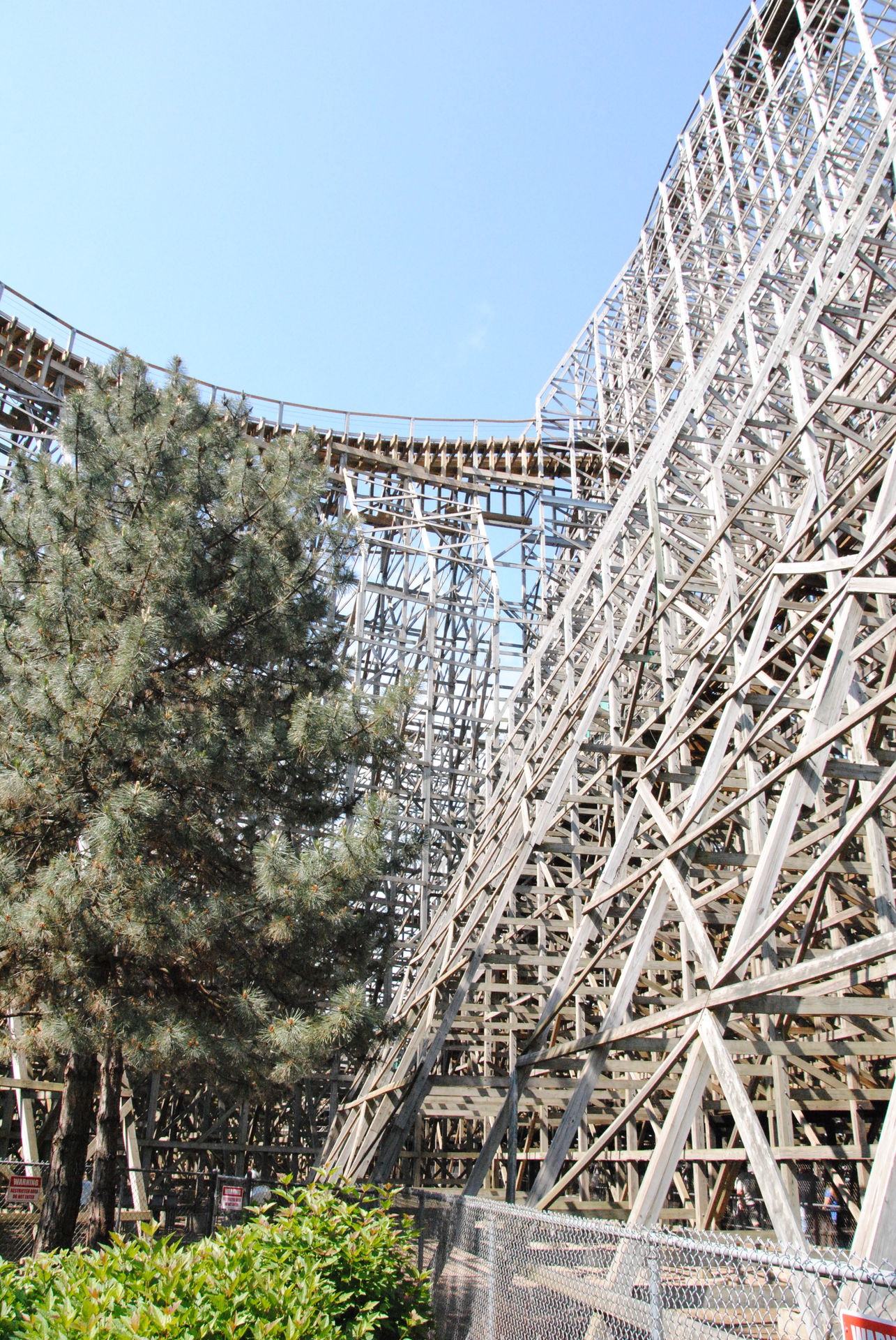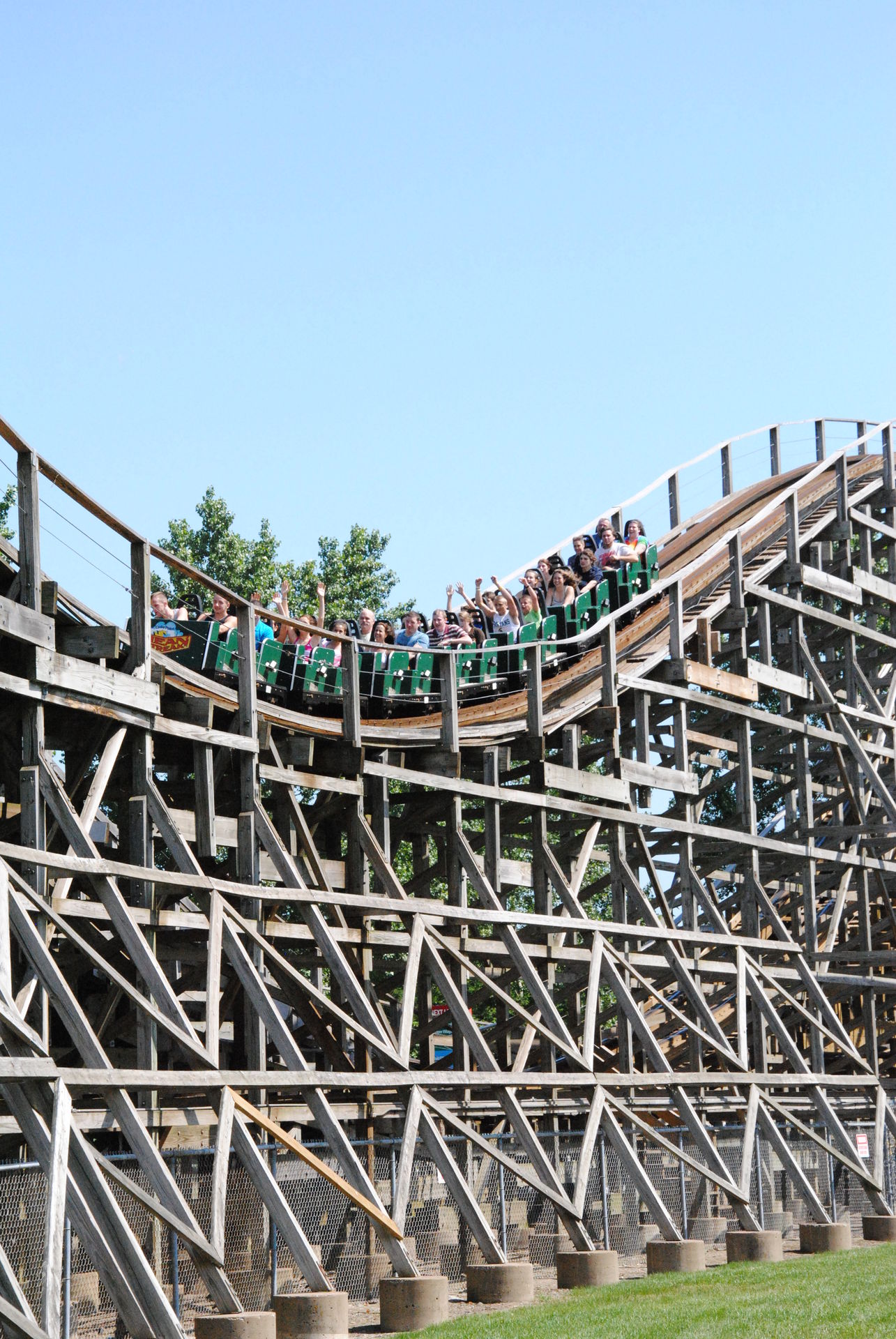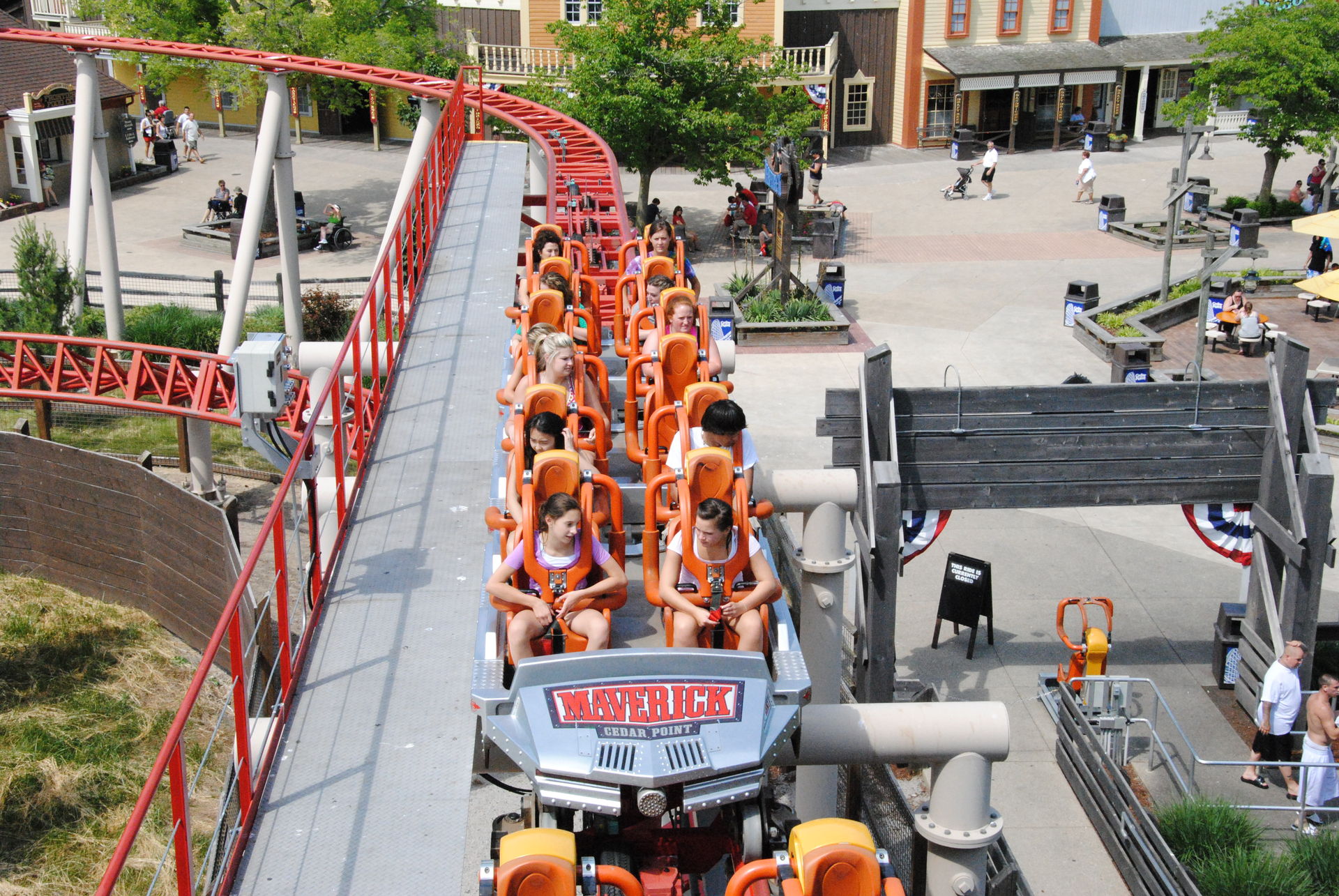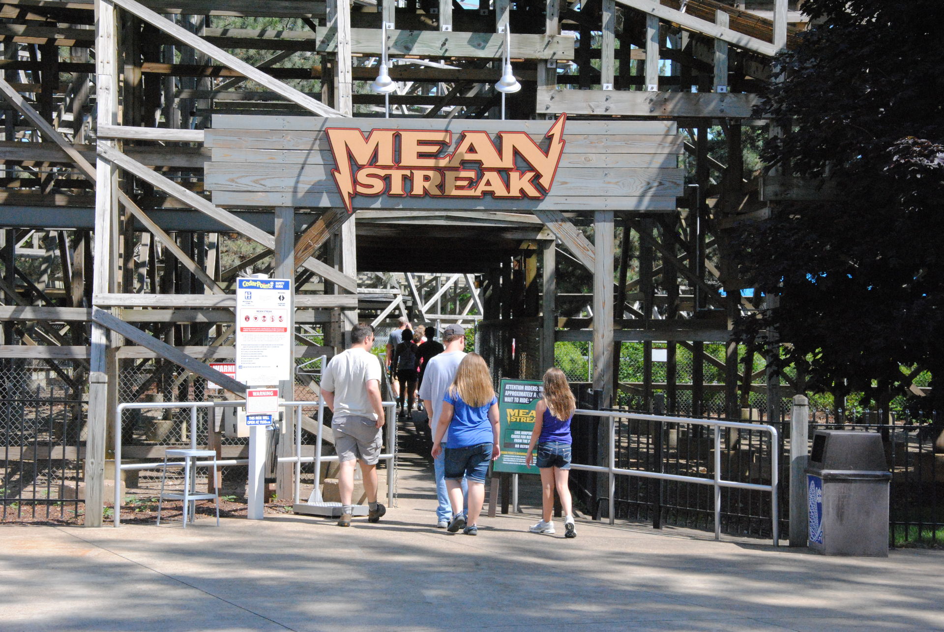 Nächste Station sollte dann eigentlich Maverick sein, der war aber gerade wegen einer kleineren Störung geschlossen. Daher sind wir gegenüber zum Woody Mean Streak gegangen. Diese Bahn gehört zu den unzähligen ehemaligen Rekordhaltern in Cedar Point, so war sie zur Eröffnung die höchste und schnellste Holzachterbahn der Welt.