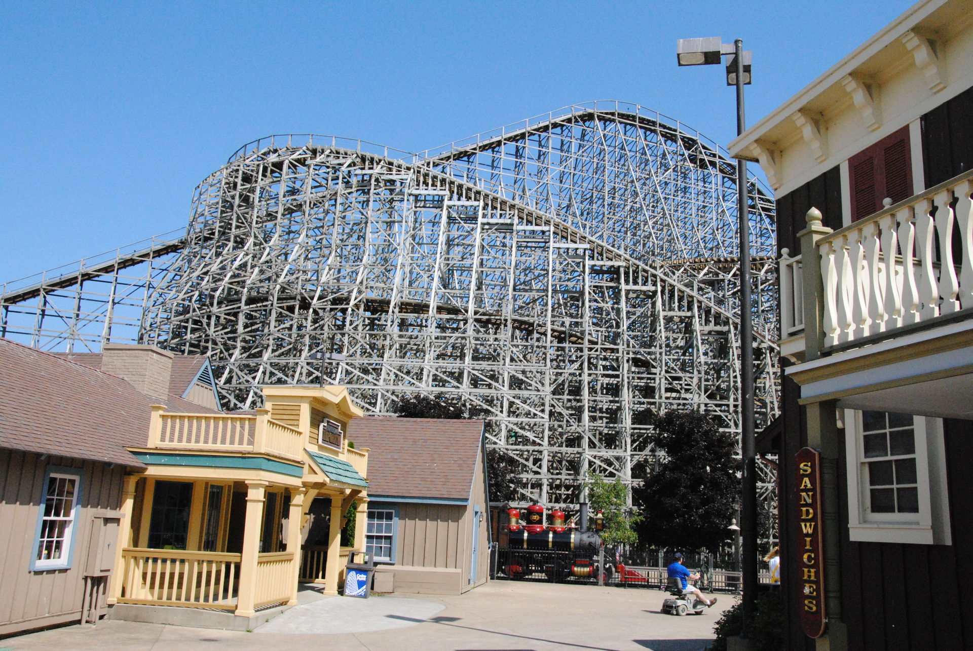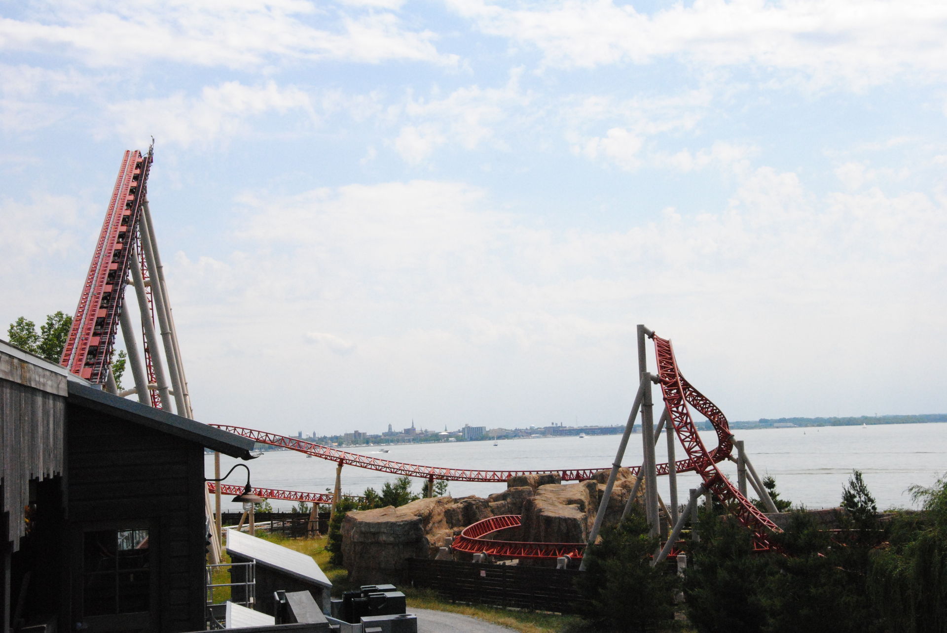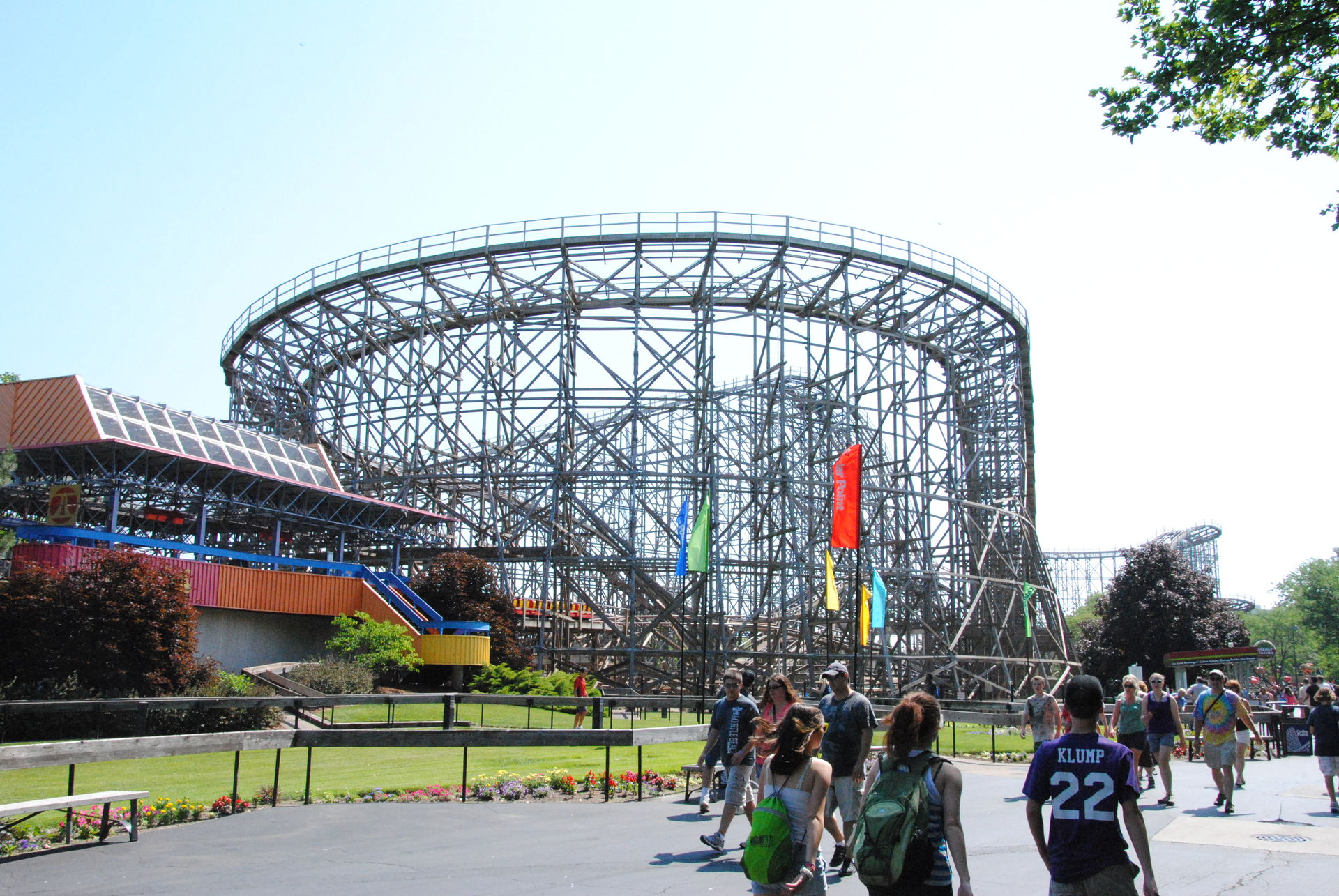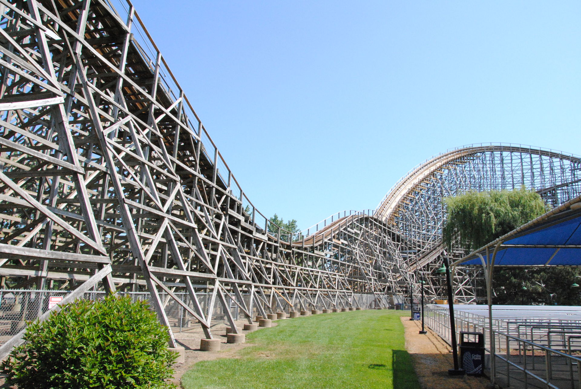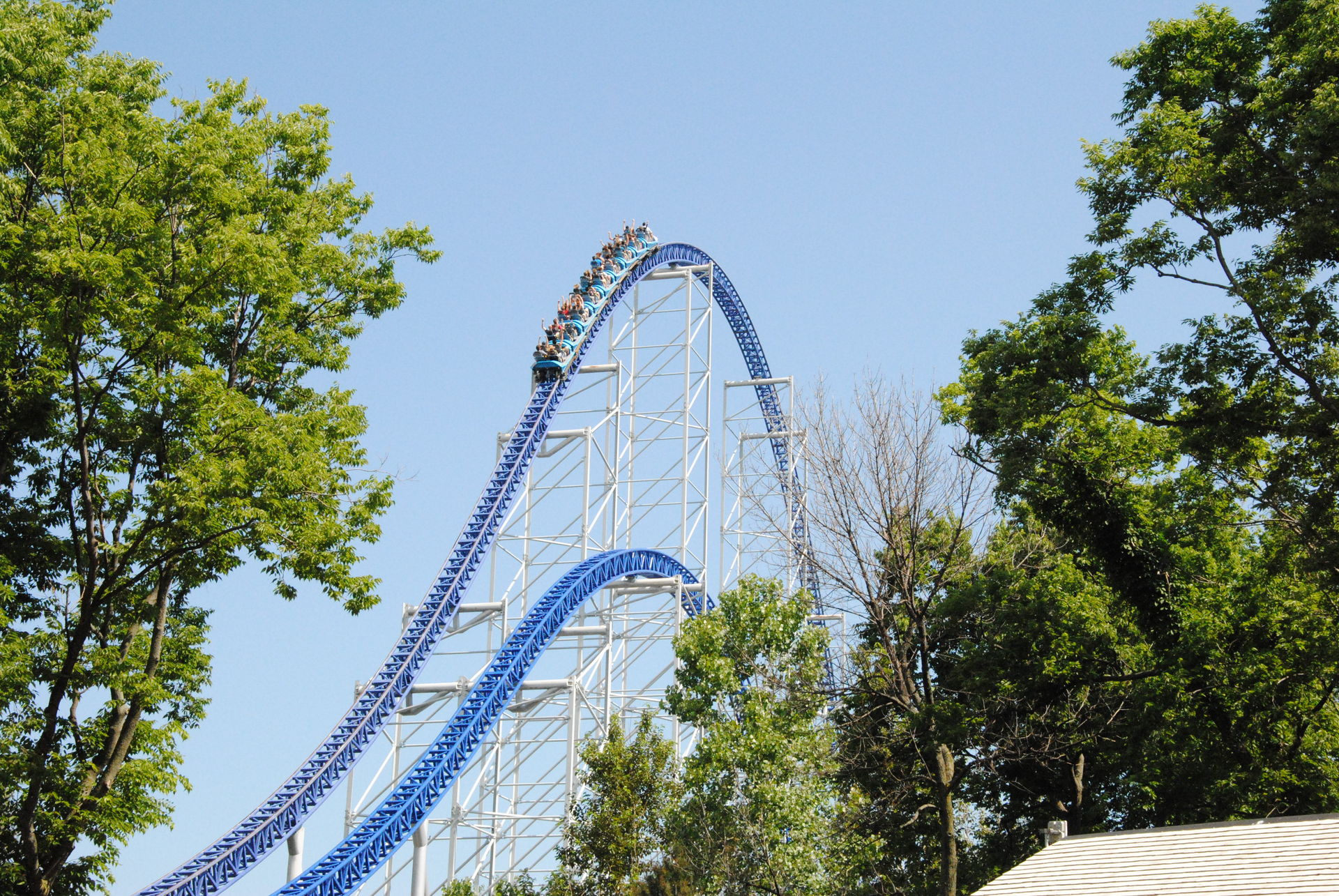 Weiter ging es mit der ältesten aktiven Bahn in Cedar Point, der Holzachterbahn Blue Streak. Das Out und back Layout verläuft entlang des Parkrandes und erlaubt auch einige Blicke auf die benachbarte Marina. Ohne jegliche Wartezeit konnte man hier sofort einsteigen und den Parcours mit den zahlreichen Camelbacks absolvieren. Diese sorgen durchaus für ordentliche