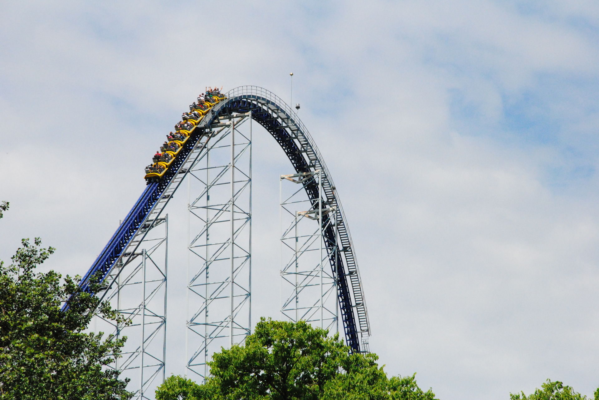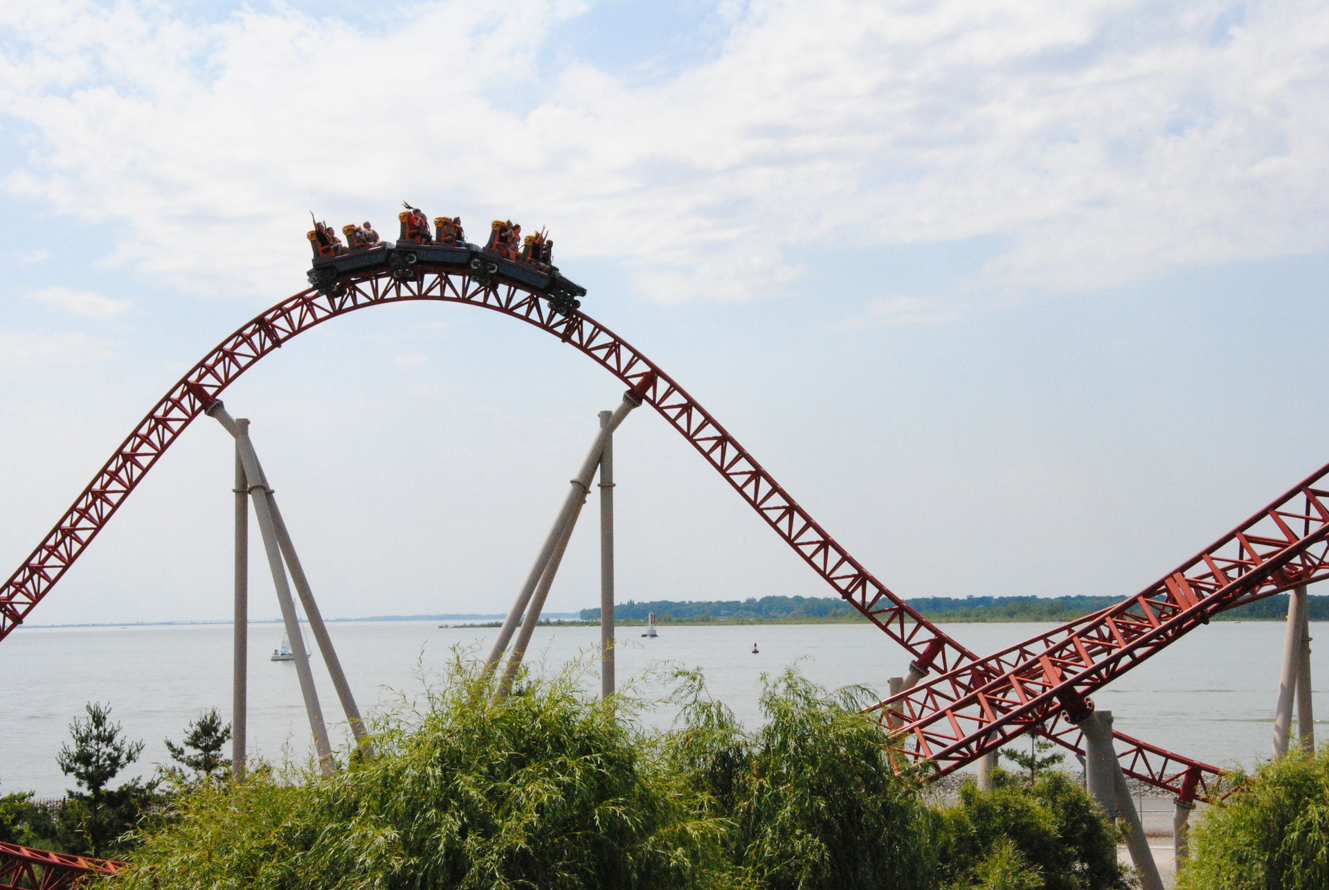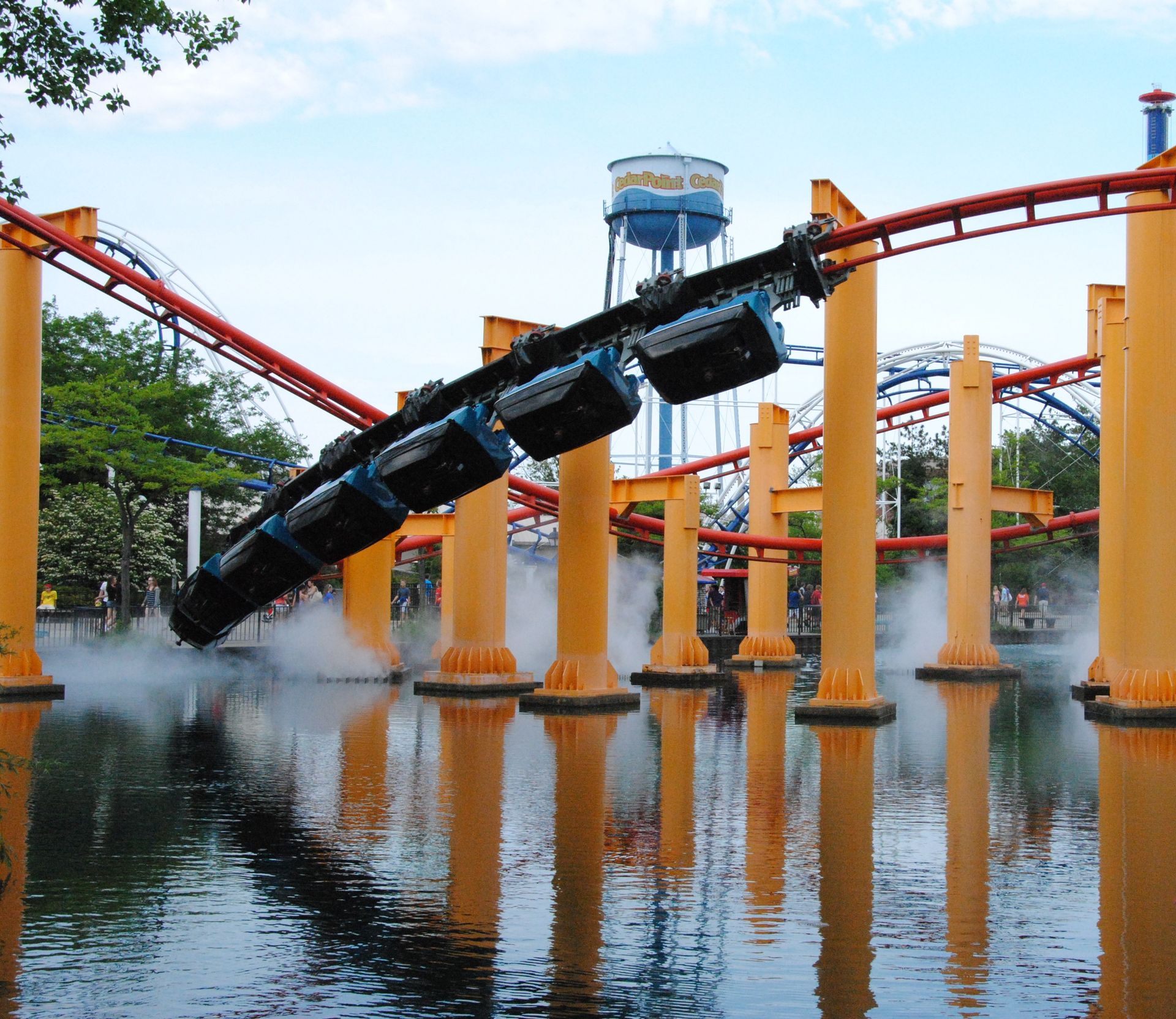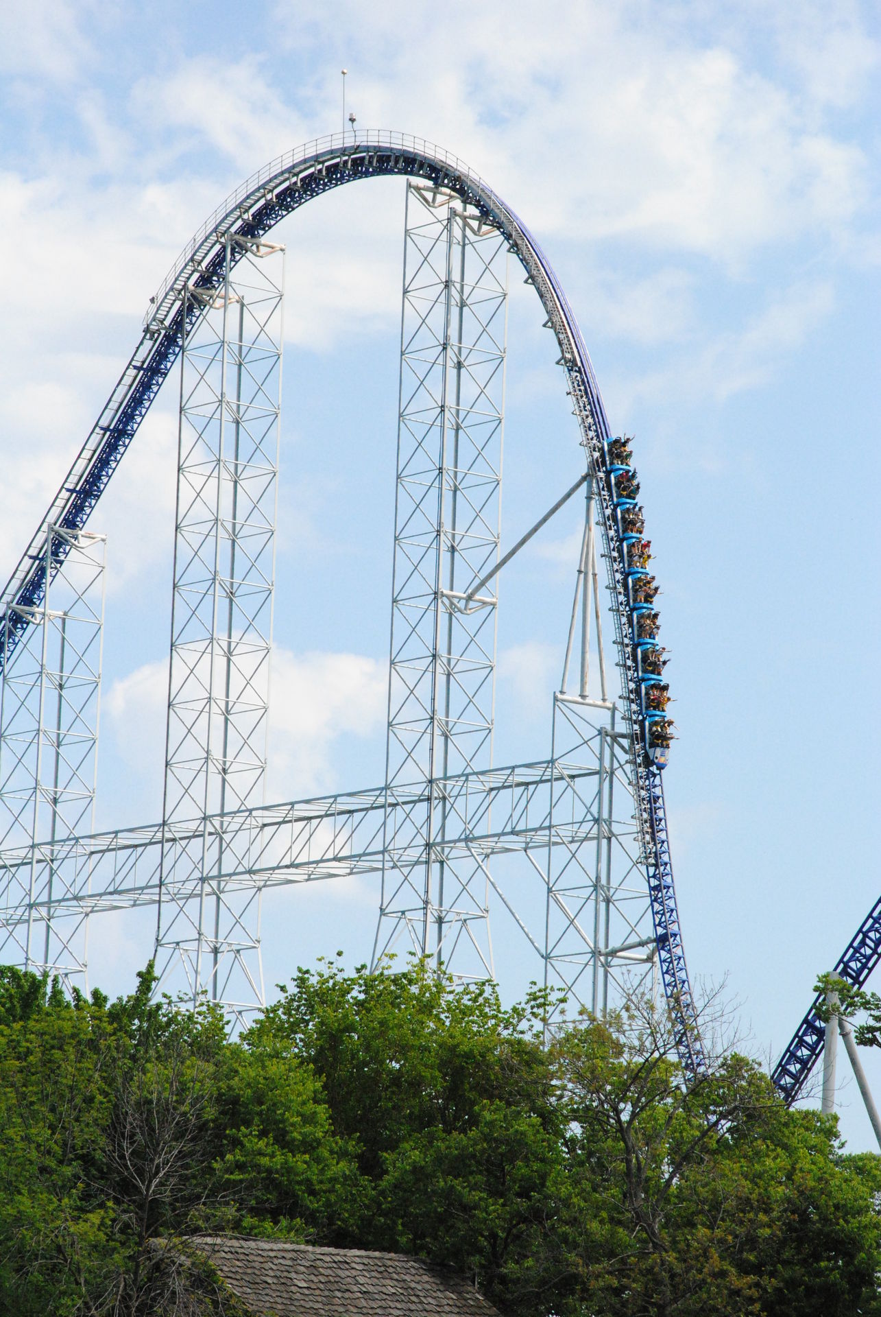 Weiter ging es mit der ältesten aktiven Bahn in Cedar Point, der Holzachterbahn Blue Streak. Das Out und back Layout verläuft entlang des Parkrandes und erlaubt auch einige Blicke auf die benachbarte Marina. Ohne jegliche Wartezeit konnte man hier sofort einsteigen und den Parcours mit den zahlreichen Camelbacks absolvieren. Diese sorgen durchaus für ordentliche