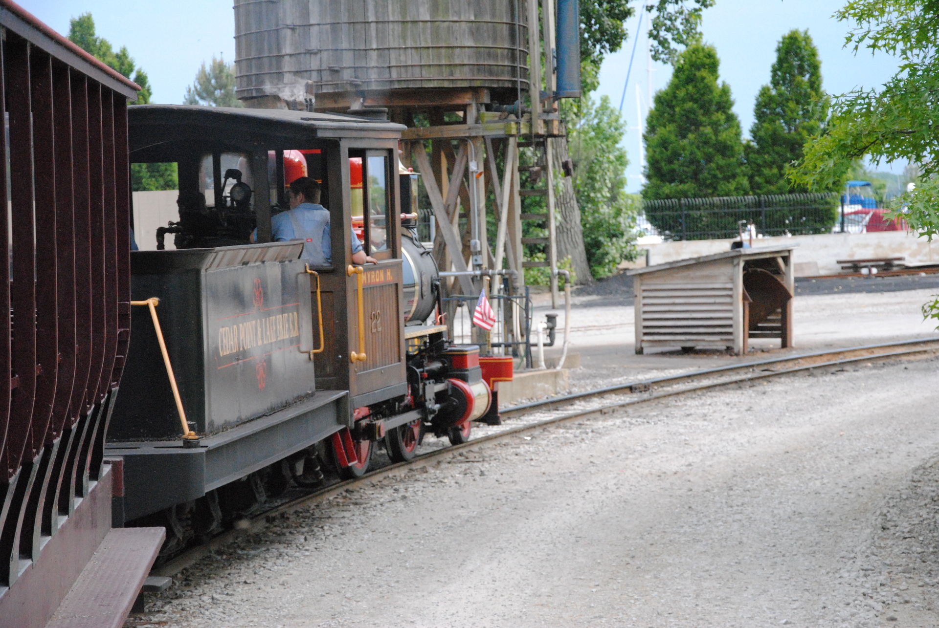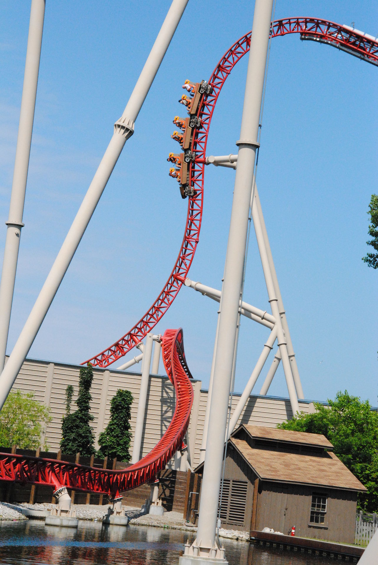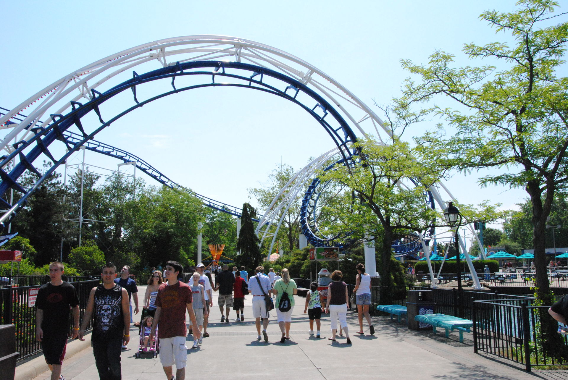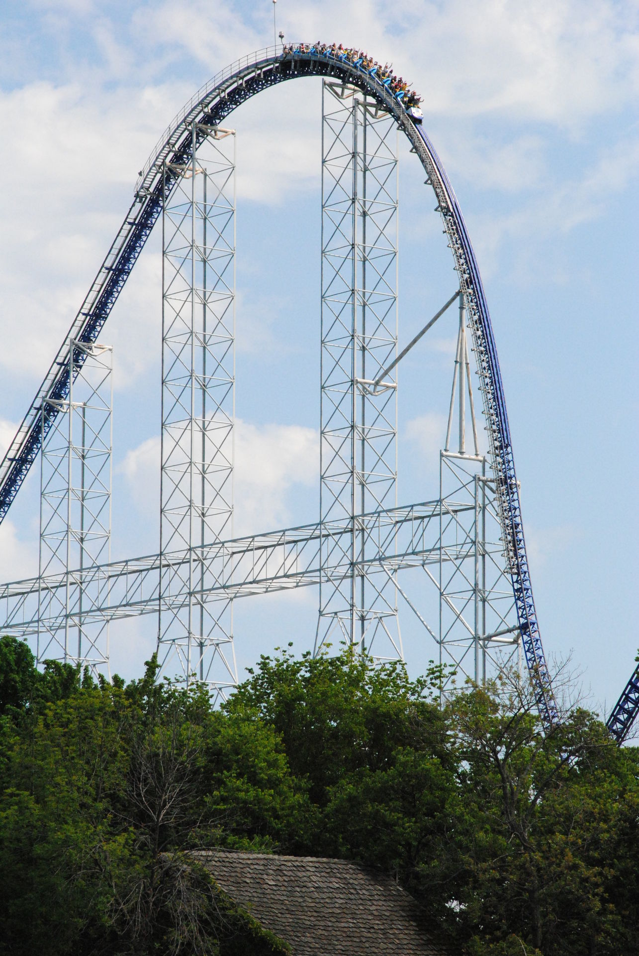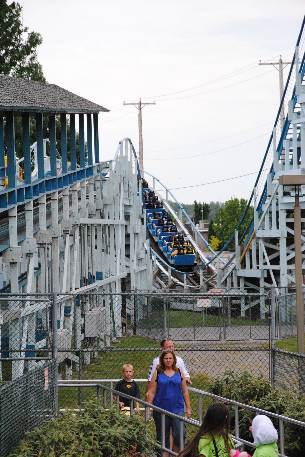Weiter ging es mit der ältesten aktiven Bahn in Cedar Point, der Holzachterbahn Blue Streak. Das Out und back Layout verläuft entlang des Parkrandes und erlaubt auch einige Blicke auf die benachbarte Marina. Ohne jegliche Wartezeit konnte man hier sofort einsteigen und den Parcours mit den zahlreichen Camelbacks absolvieren. Diese sorgen durchaus für ordentliche