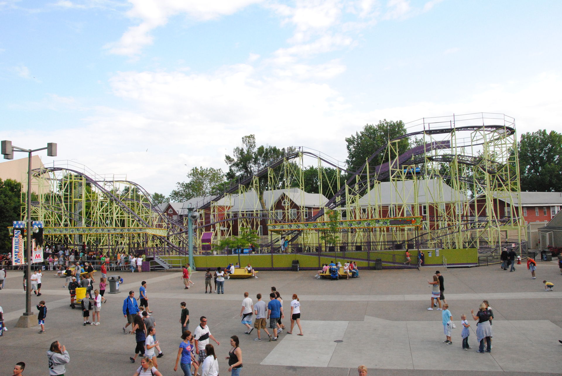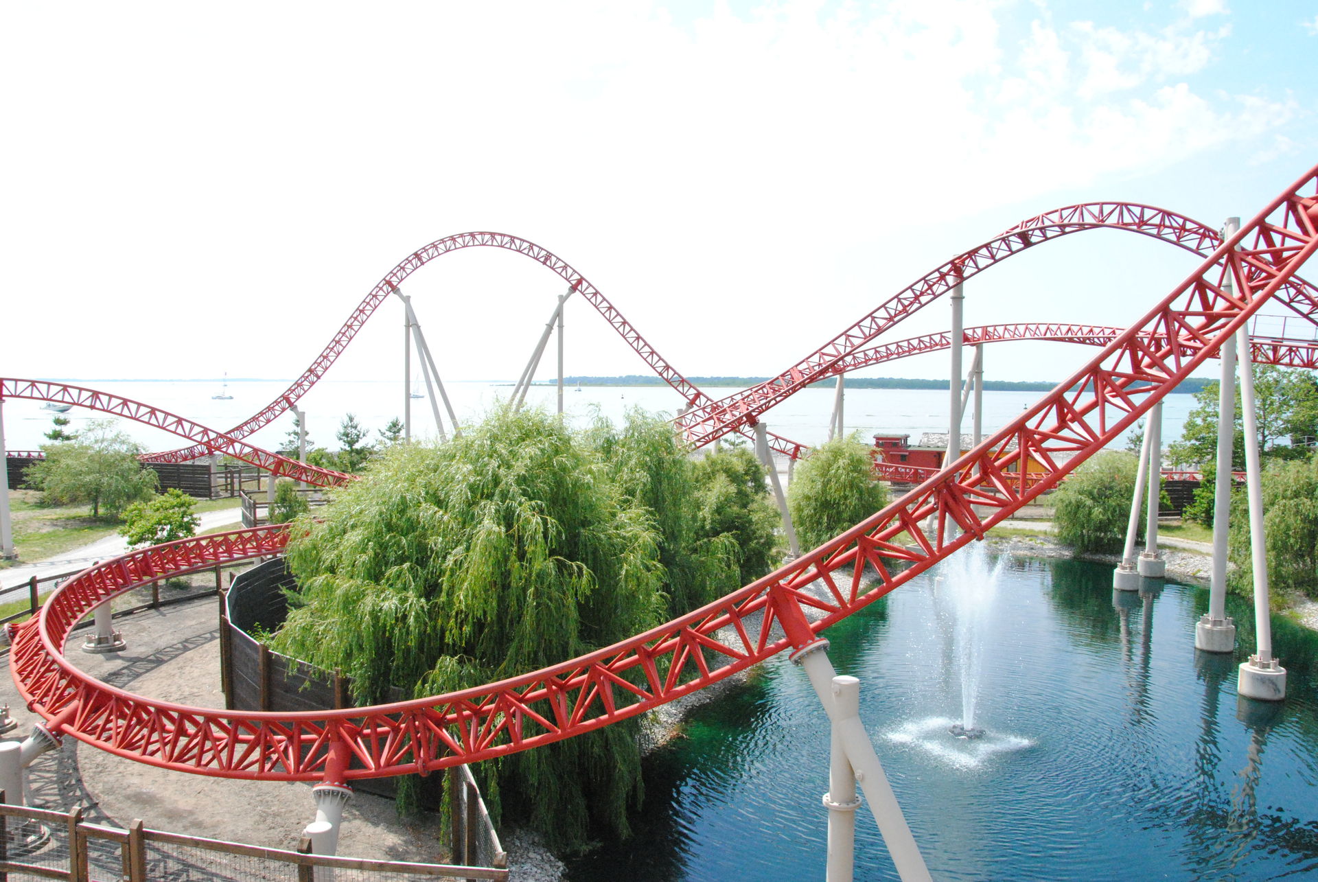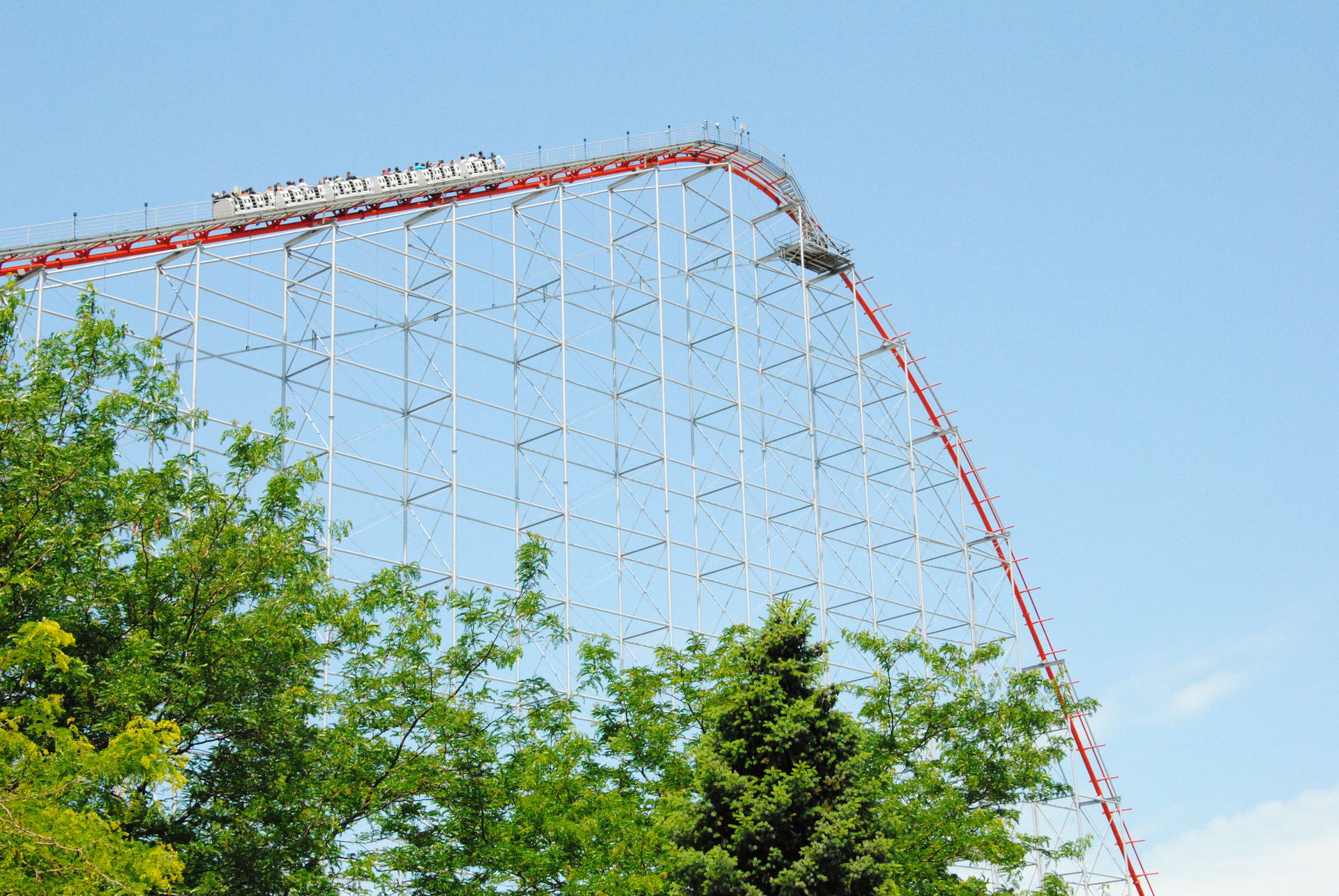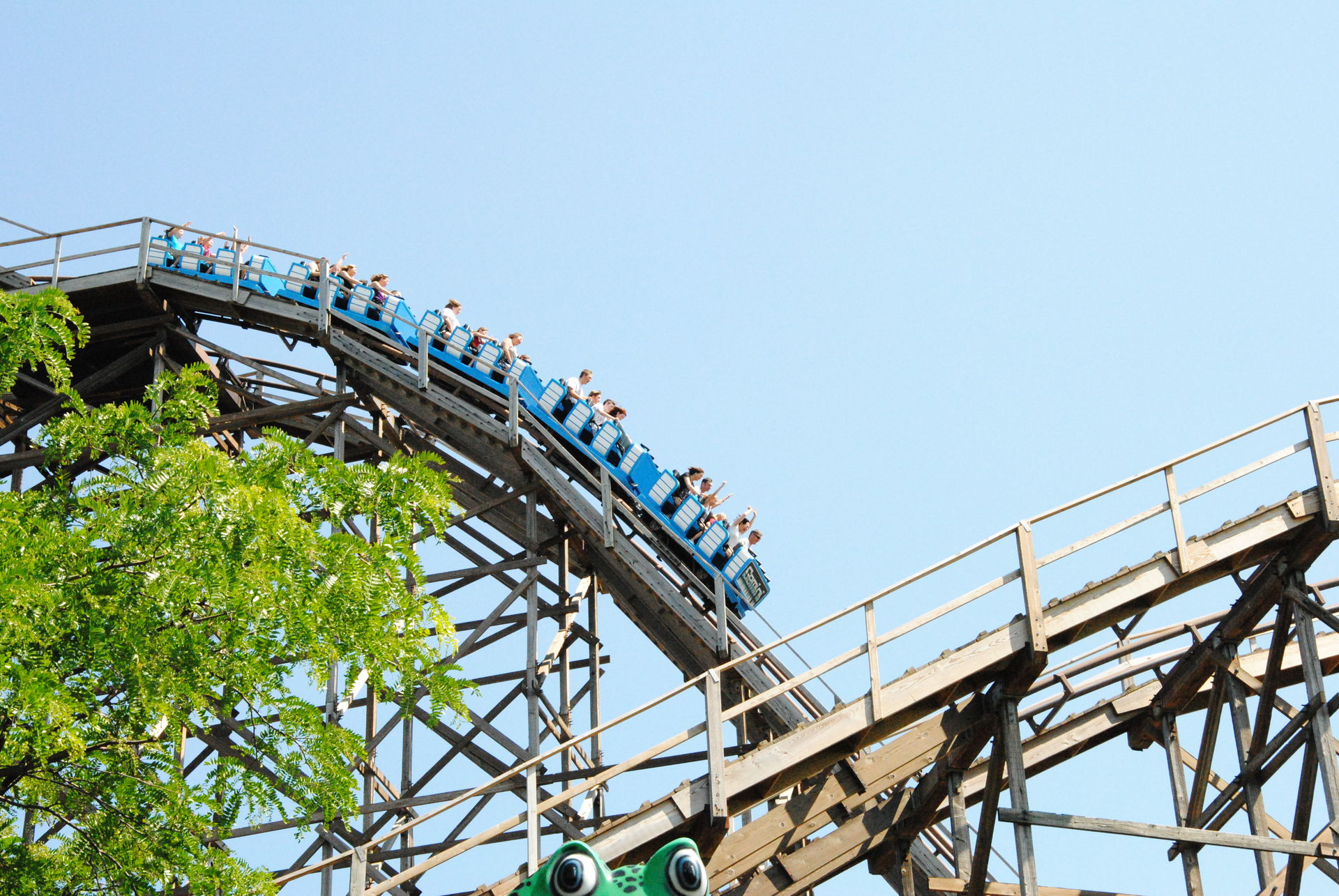 Weiter ging es mit der ältesten aktiven Bahn in Cedar Point, der Holzachterbahn Blue Streak. Das Out und back Layout verläuft entlang des Parkrandes und erlaubt auch einige Blicke auf die benachbarte Marina. Ohne jegliche Wartezeit konnte man hier sofort einsteigen und den Parcours mit den zahlreichen Camelbacks absolvieren. Diese sorgen durchaus für ordentliche