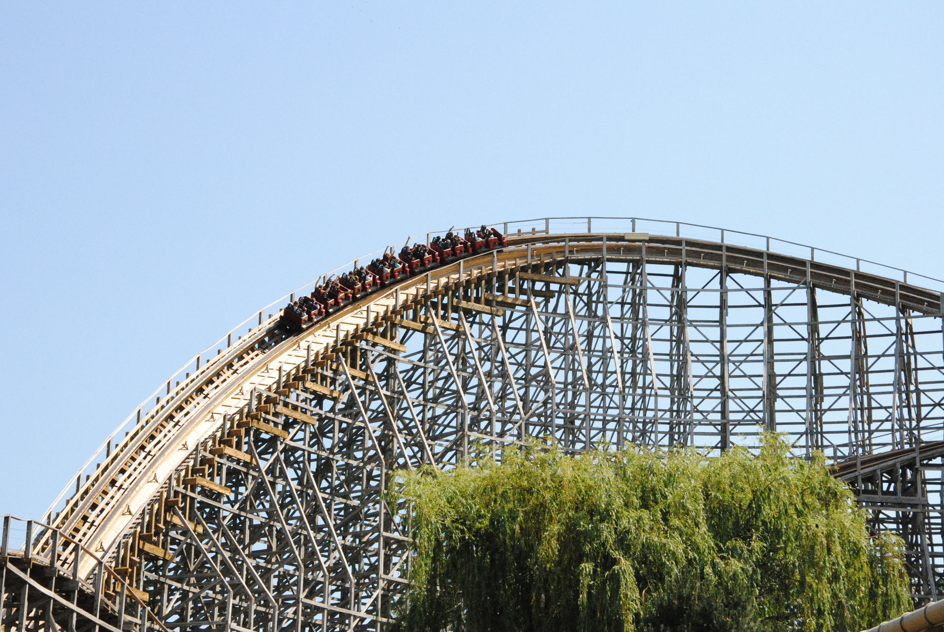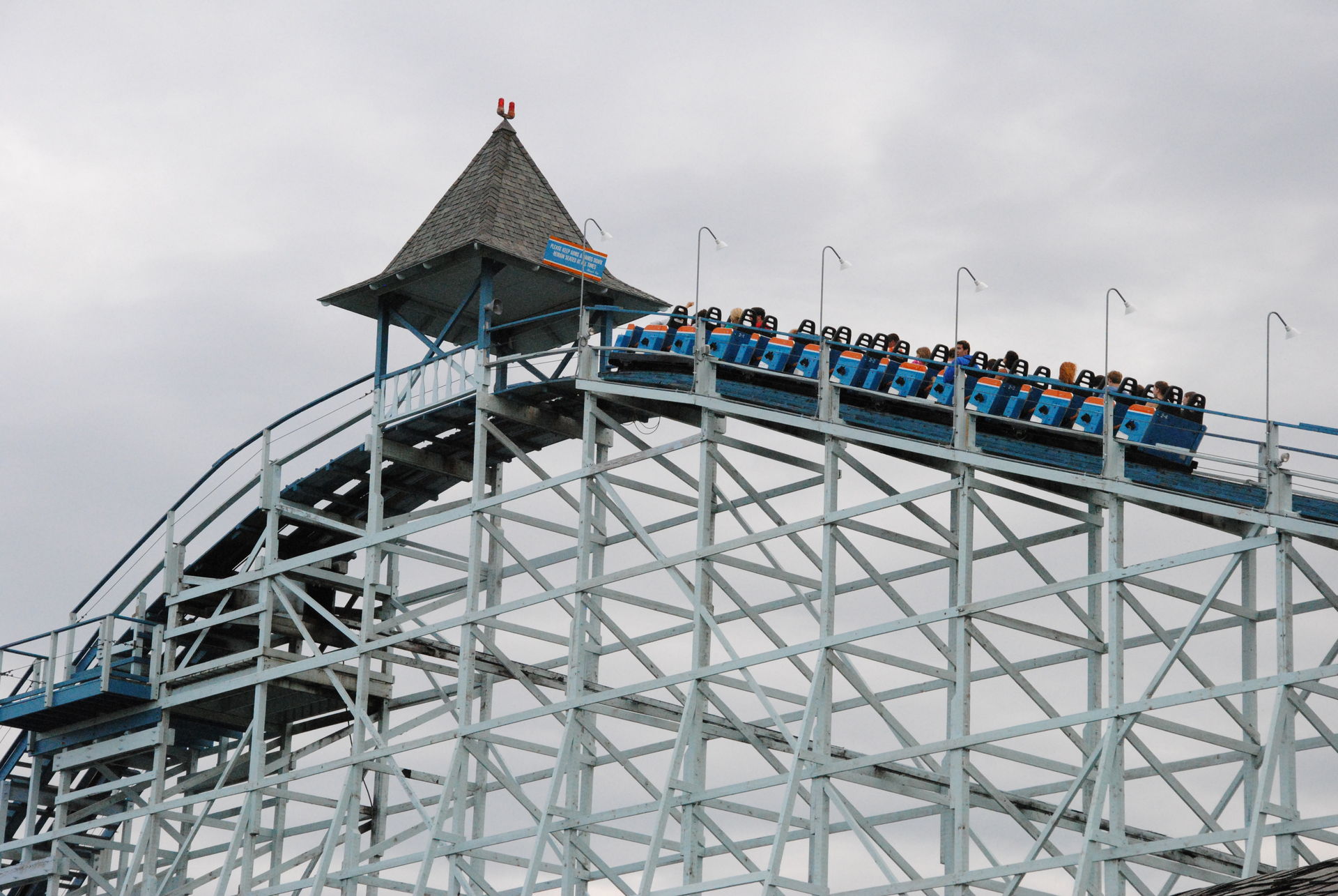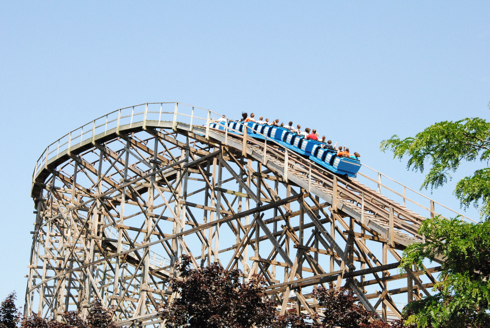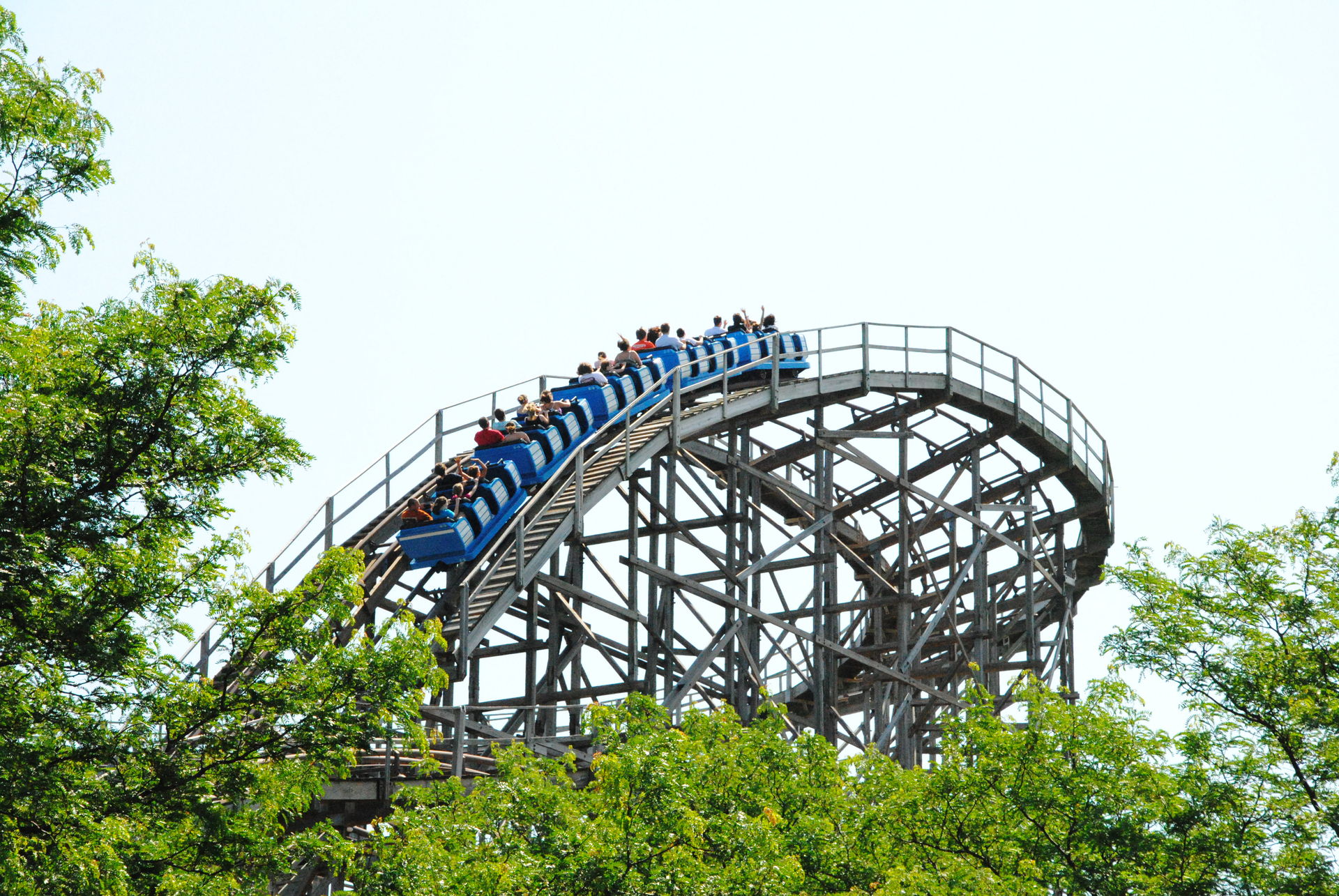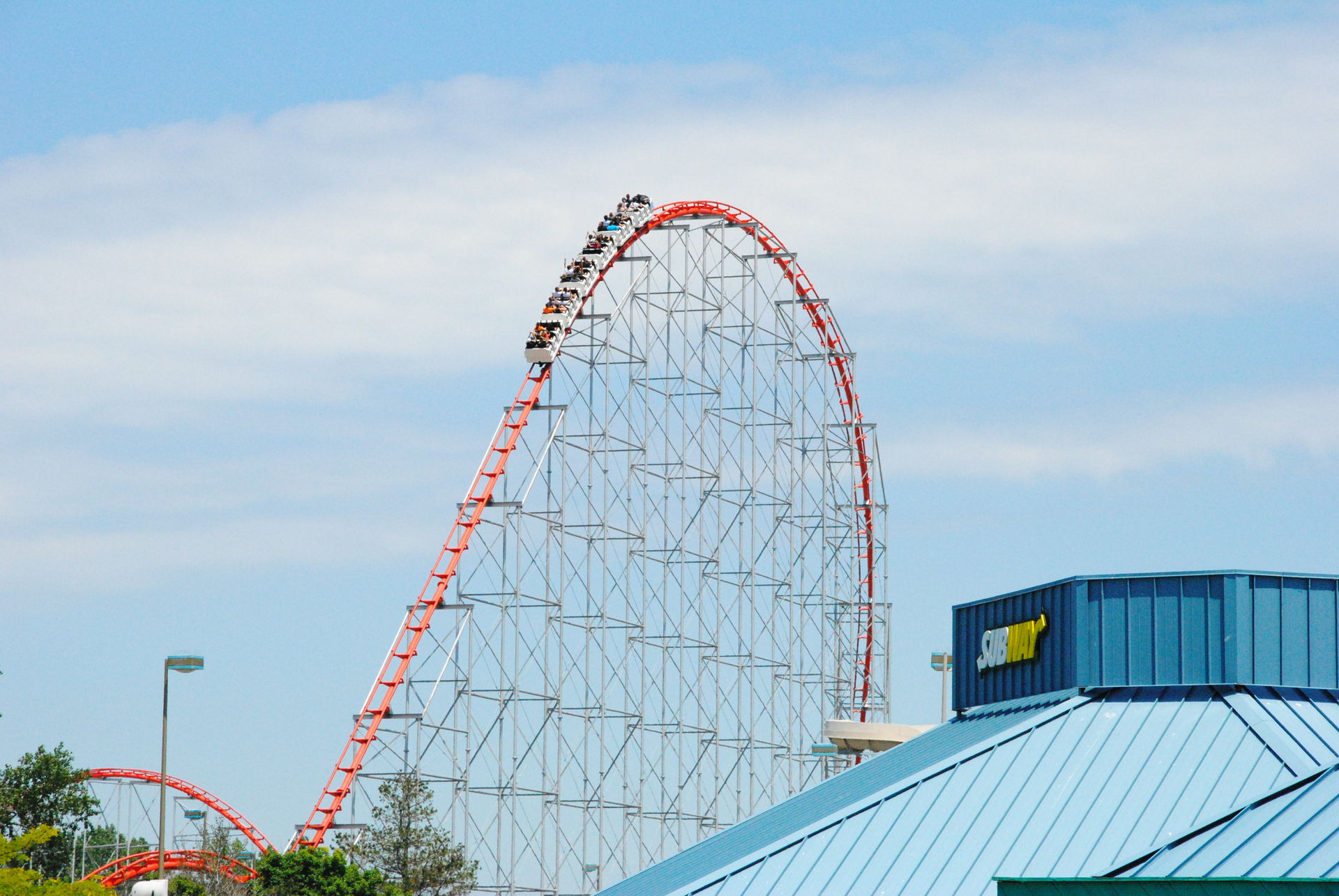 Weiter ging es mit der ältesten aktiven Bahn in Cedar Point, der Holzachterbahn Blue Streak. Das Out und back Layout verläuft entlang des Parkrandes und erlaubt auch einige Blicke auf die benachbarte Marina. Ohne jegliche Wartezeit konnte man hier sofort einsteigen und den Parcours mit den zahlreichen Camelbacks absolvieren. Diese sorgen durchaus für ordentliche