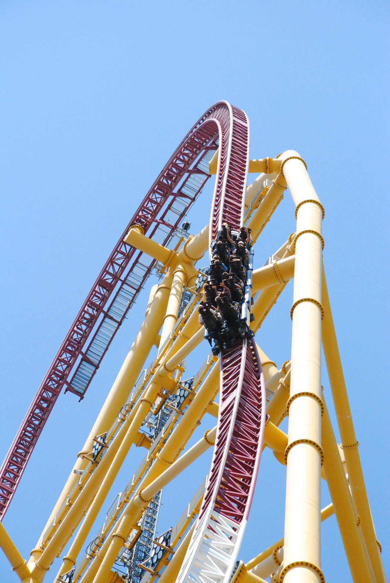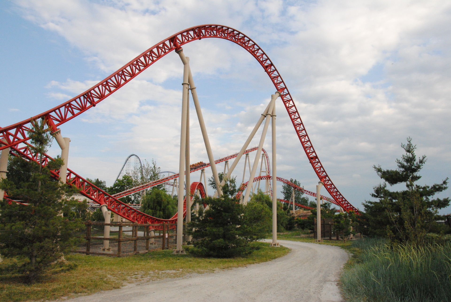 Weiter geht es mit Magnum XL-200, die sich über dem Wasserpark und entlang des Strandes in einem out & back Layout ausdehnt. Die vielen Camelbacks sorgen für reichlich