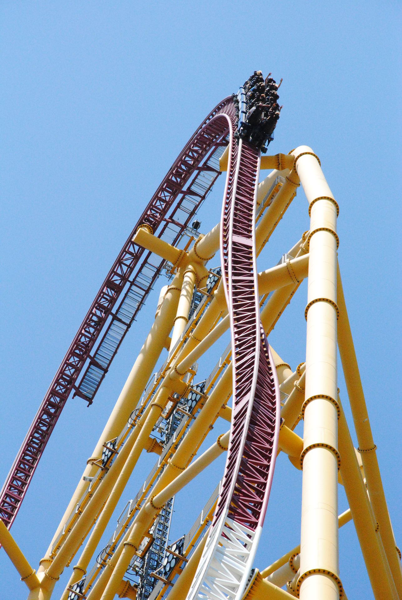 Airtime Hügel, Inversionen, der Abschuss, hammergeile Umschwünge, am Ende bleiben wir aber sicher im Sattel sitzen und Maverick hat sich ganz weit in meiner Gunst oben platziert und eine gewisse Sucht entfacht, die in den nachfolgenden 2 Tagen gestillt werden musste. Klar, die Bügel sind nicht das gelbe vom Ei, aber nach 1-2 Fahrten lernt man gegen zu steuern und den Gaul richtig zu reiten. Vielleicht rüsten sie ja eines Tages nach, die Bügel, die z.B. bei Insane (Gröna Lund) verwendet werden, wären auf alle Fälle eine Verbesserung.