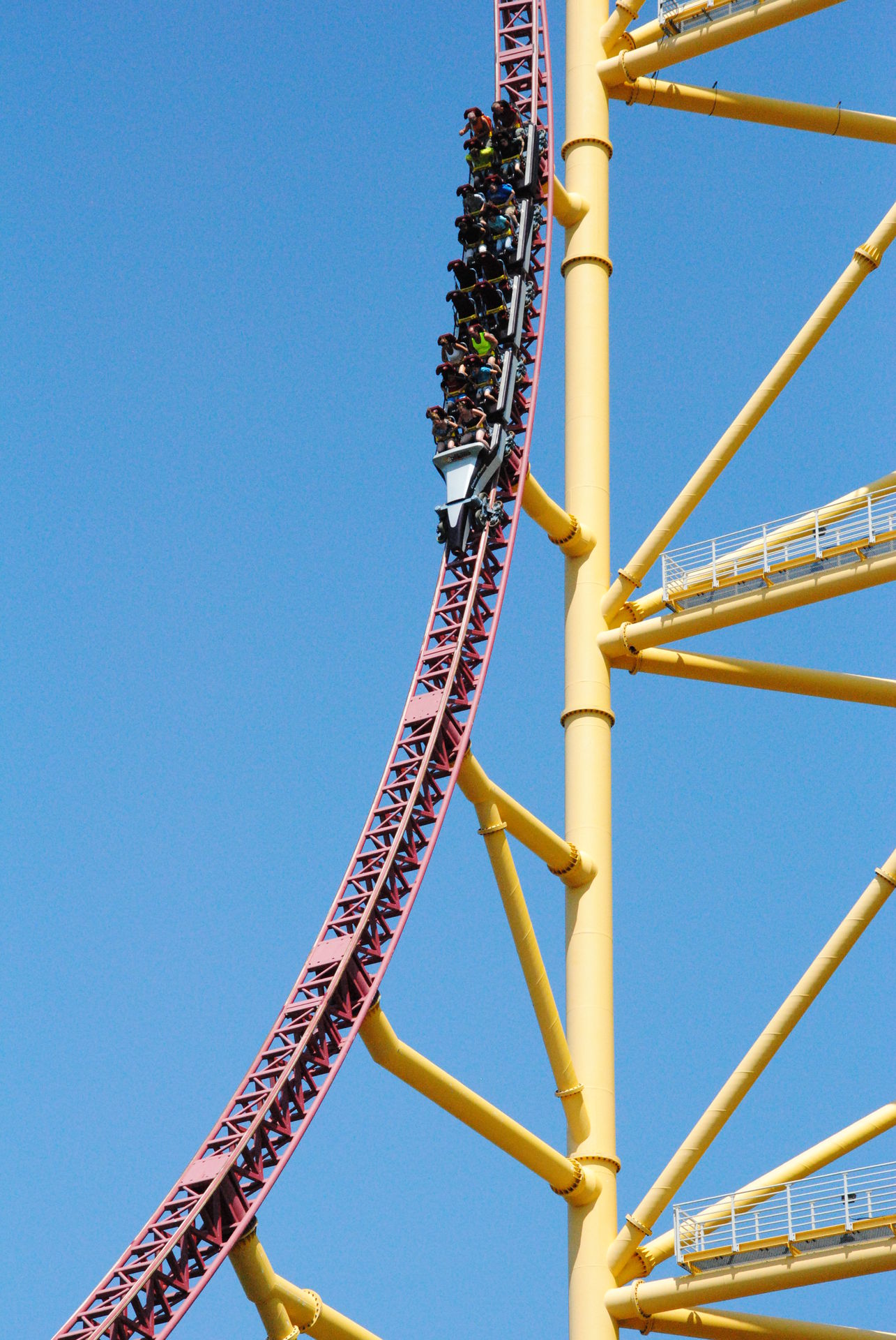 Top Hat gerichtet. Irgendwie kommt einen das wie eine kleine Ewigkeit vor, bevor dann endlich der Abschuss erfolgt. Ab dann heißt es nur noch das (kurze) Achterbahnvergnügen genießen, den knackigen Abschuss, die steile Auffahrt, die Überfahrt vom