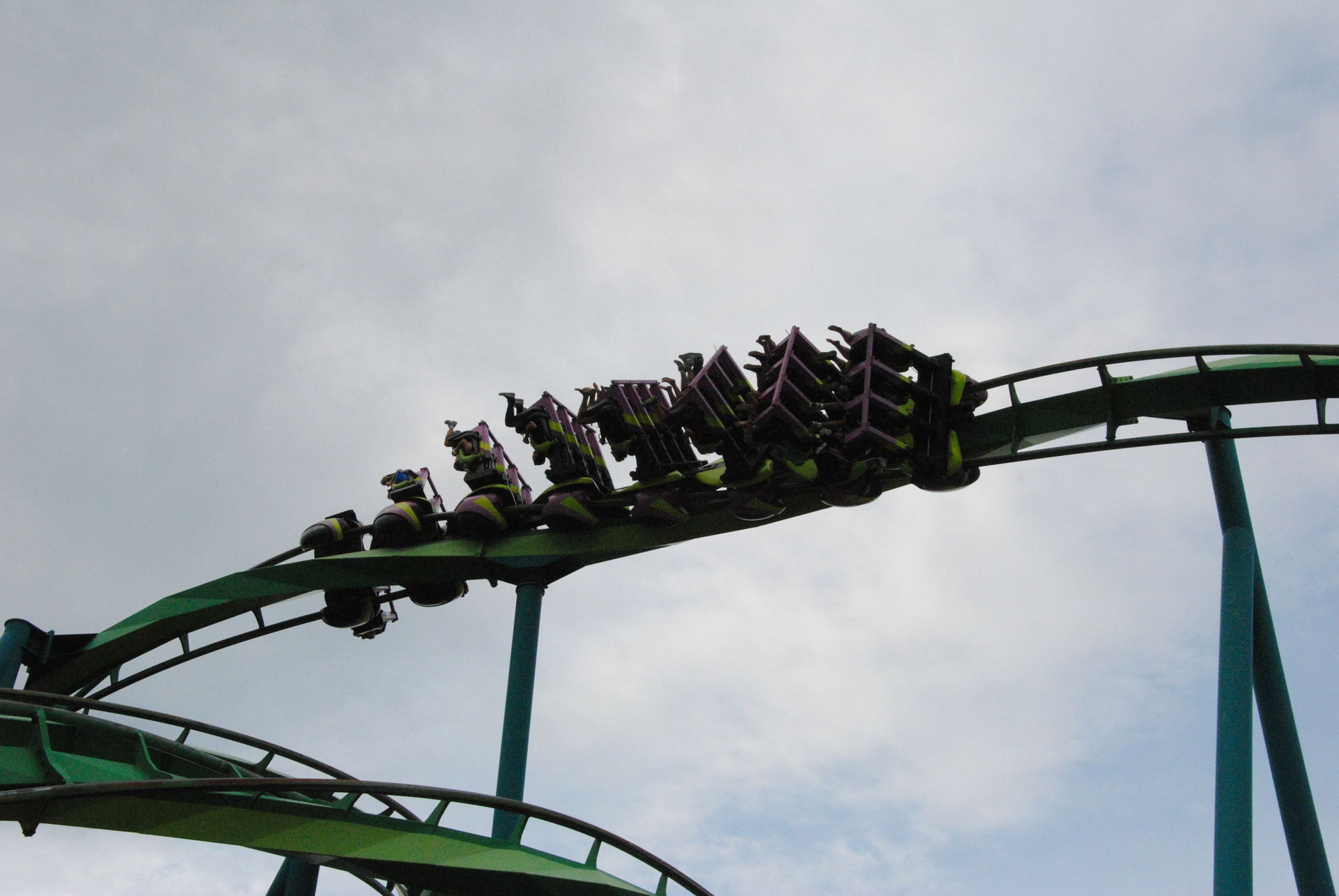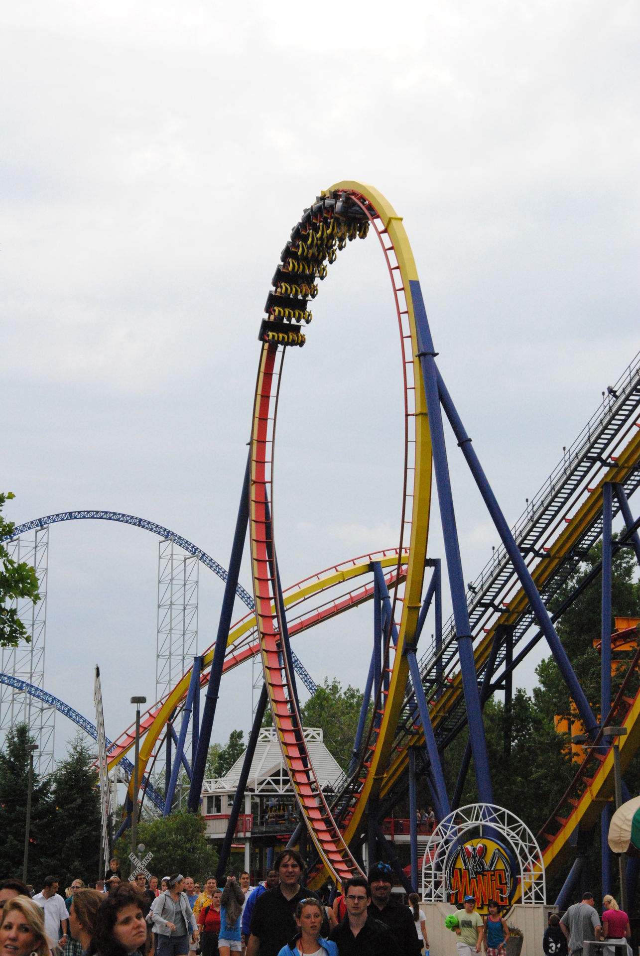 Lange aufgeschoben hatten wir die Fahrt auf Mantis, da sich doch die Lobeshymnen von diesem Stand Up-Coaster in Grenzen halten. Die Fahrt war durchaus in Ordnung, ist die erste Abfahrt doch auch fast 100 km/h schnell. Allerdings fand ich, dass gerade der Dive