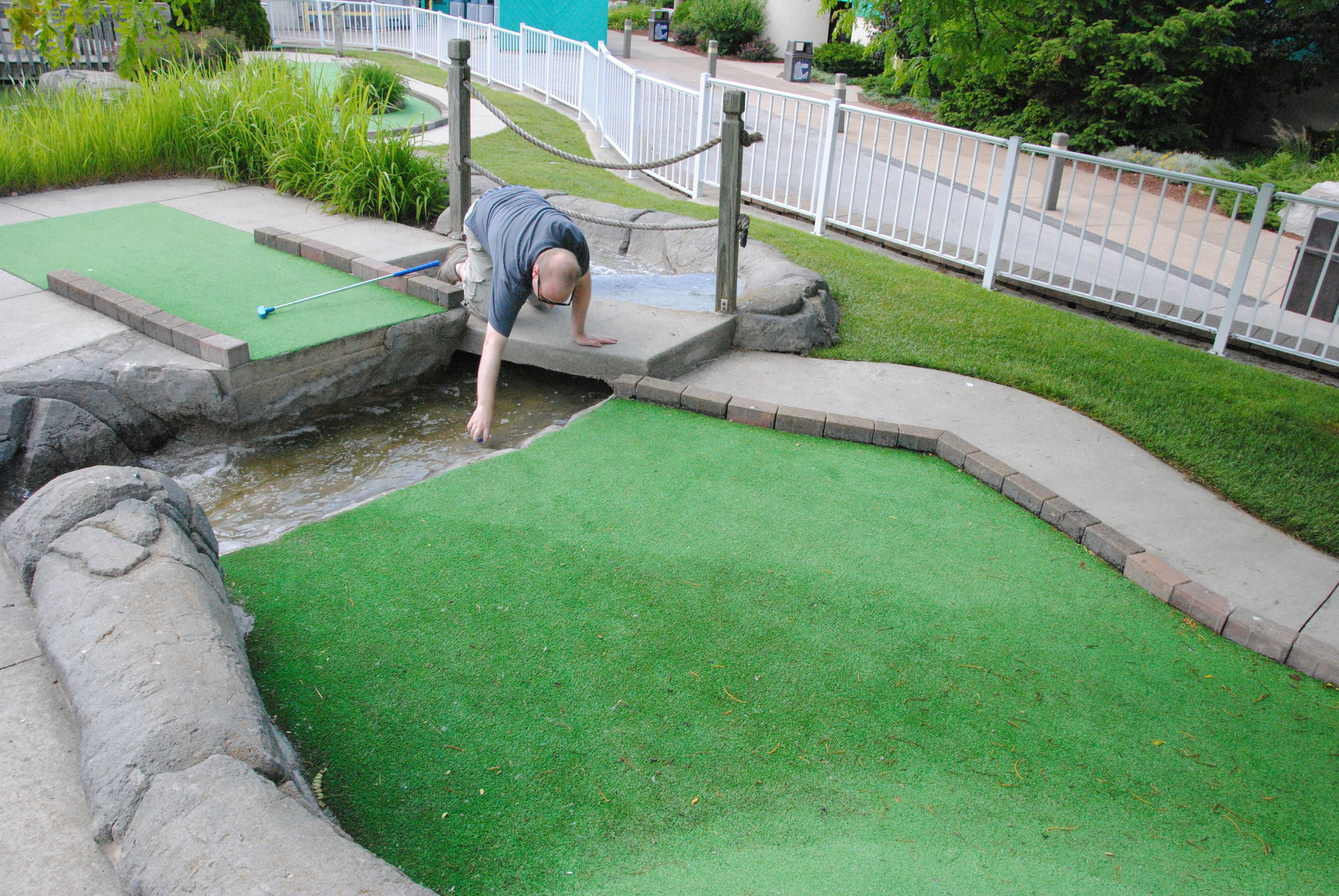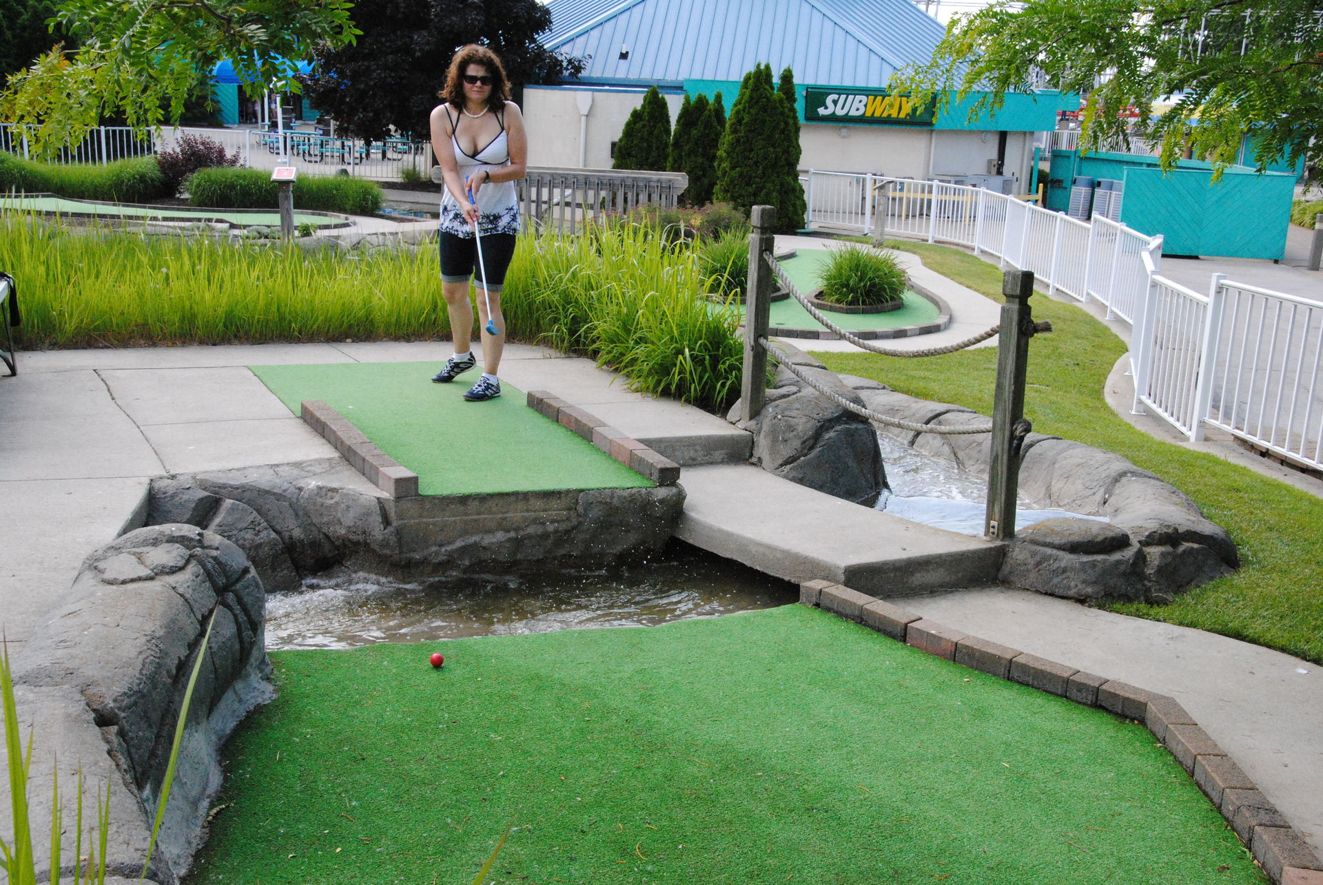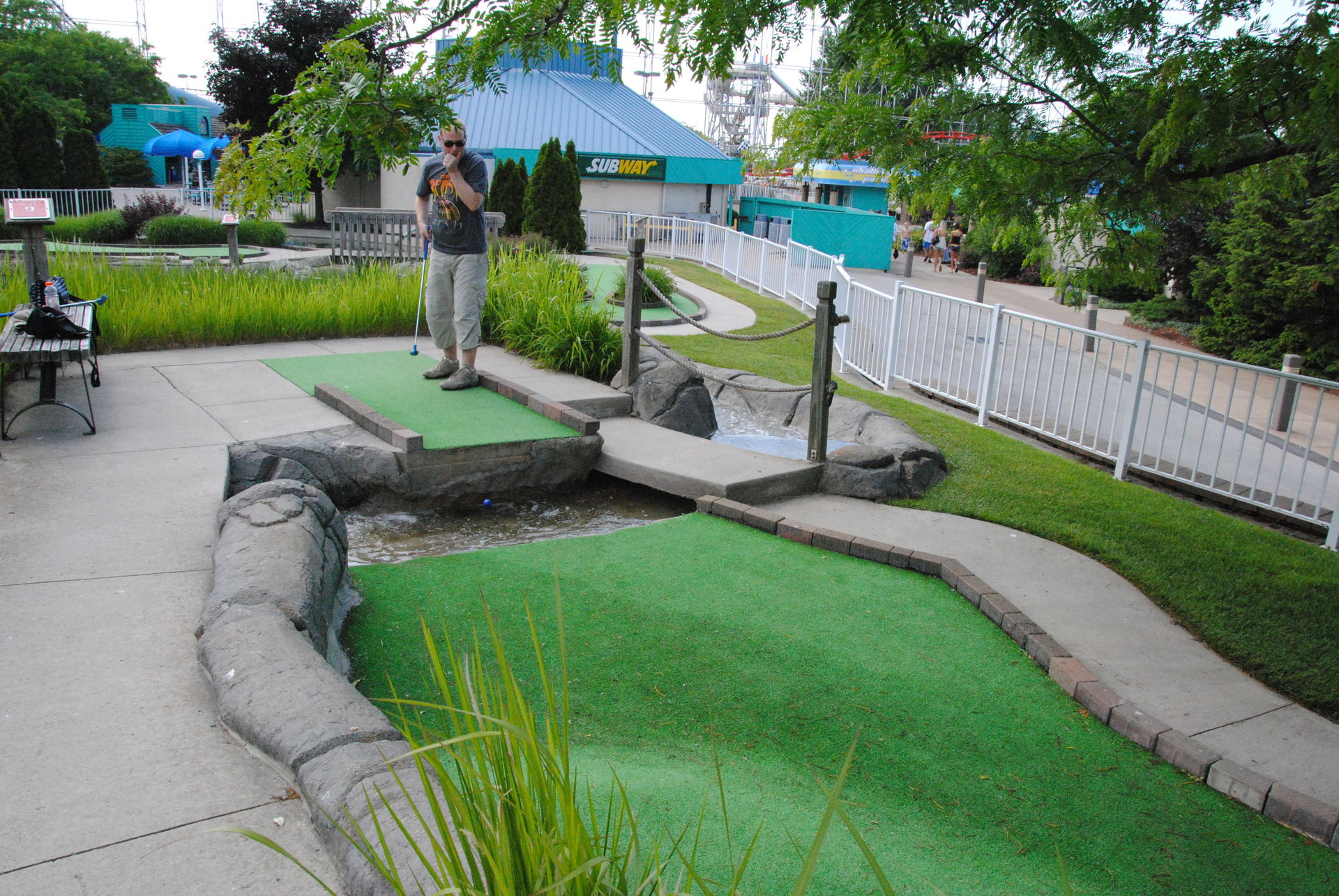 Den Rest des Tages sind wir überwiegend zwischen den großen Drei gependelt und haben ab und an eine andere Bahn noch ein weiteres mal mitgenommen. Auch den Minigolfplatz beim Wasserpark haben wir ausprobiert. Hier gab es sehr aggressive Krähen, die mehrmals Anne attackiert haben bzw. ihre Haare mit einem Nest oder Busch verwechselt haben.