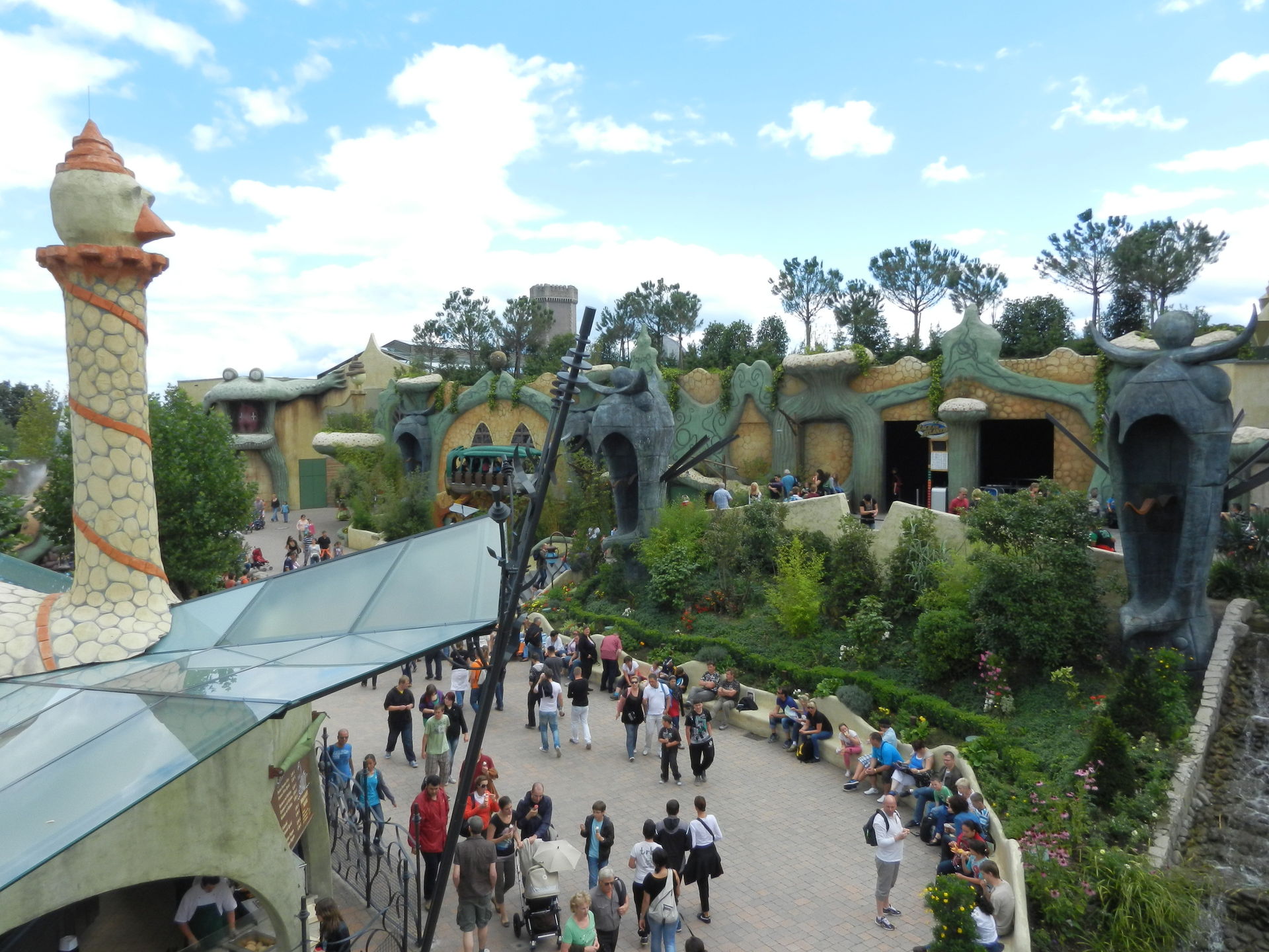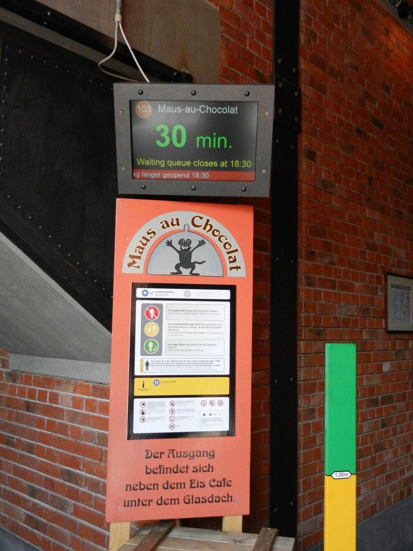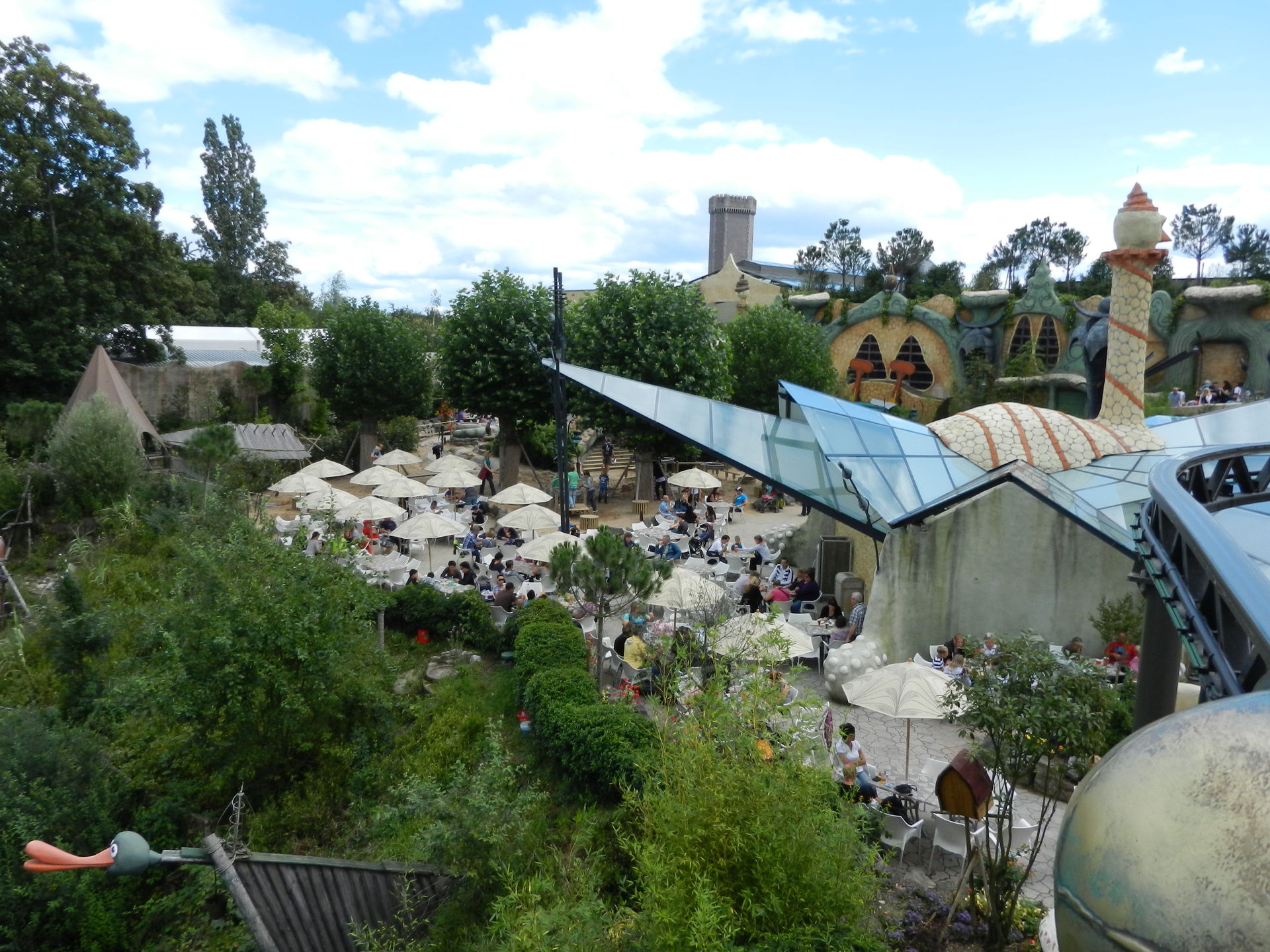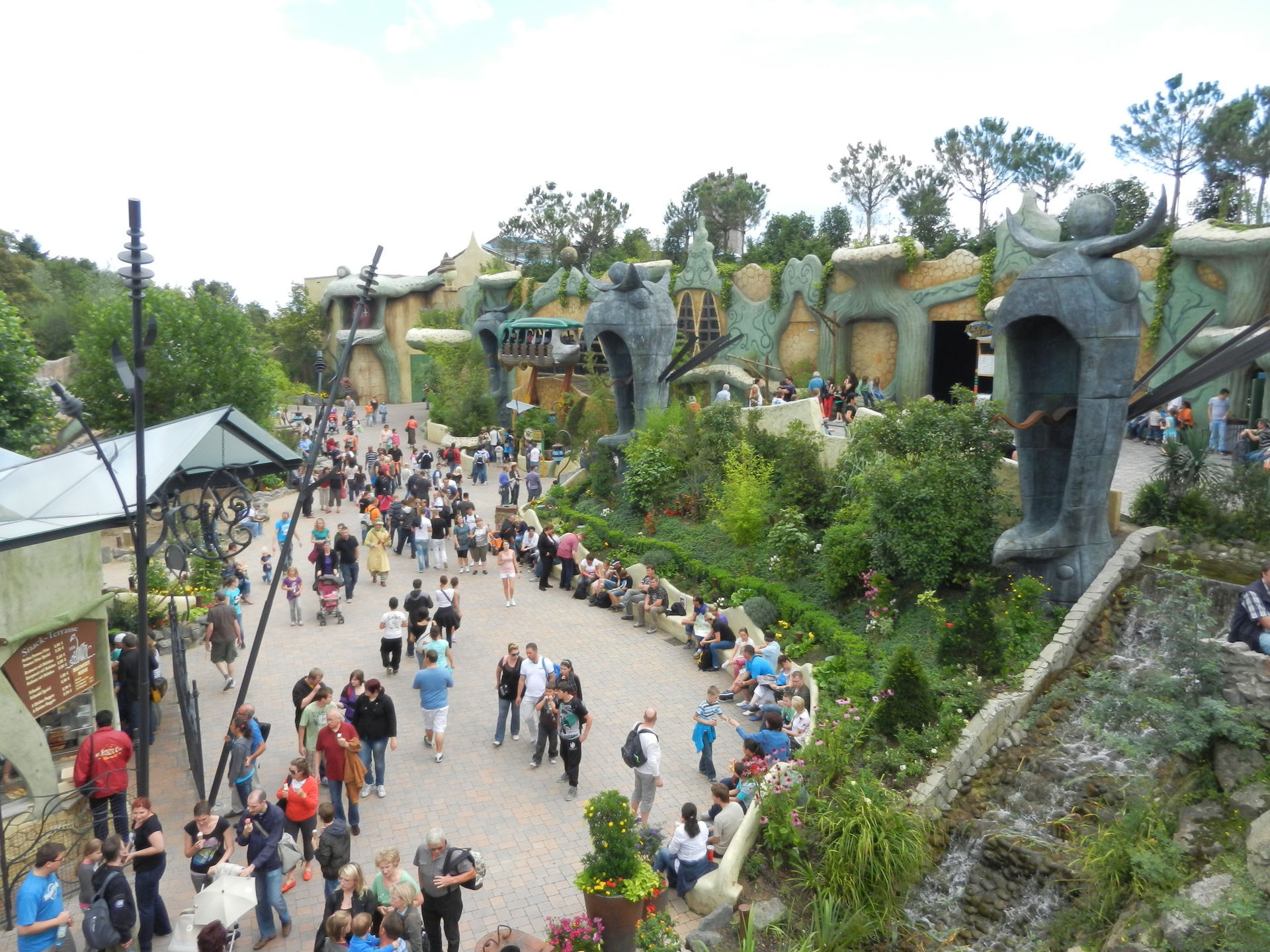 Obwohl die Parkplätze gut gefüllt, das Wetter an und für sich optimal und Ferien in ganz Westeuropa waren, verteilten sich die Besuchermassen gut und die Wartezeiten pendelten zwischen 0-20 Minuten an den Hauptattraktionen. Drei Tage später platzte der Park bei gleichem Wetter aus allen Nähten.