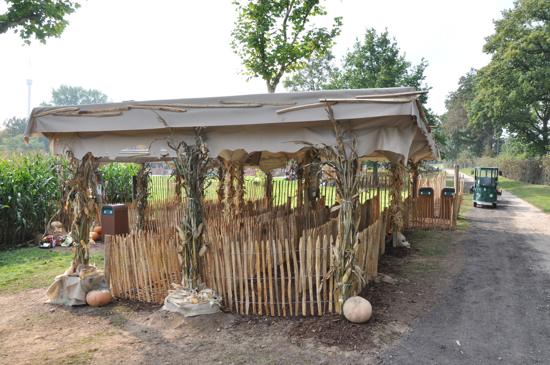 Der Tag war sehr voll im Park, da gleichzeitig der Schleswig-Holstein Jugendfeuerwehrtag im Park stattfand. Die vorderen Reihen des Parkplatz waren voll von den roten Fahrzeugen. Da wir uns rechtzeitig informiert hatten, waren wir erst um 14:00 Uhr da. Erst ein bißchen bummeln, essen und Nessi fahren. Bei der Glocke hatte man einen guten Überblick über das Maisfeld.