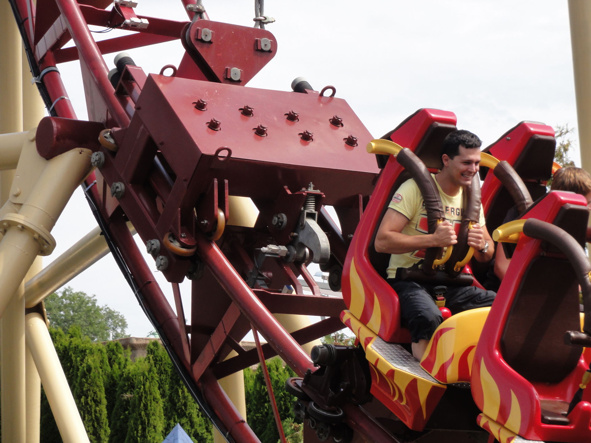 Fazit: Nach den was ich hier gelesen habe, hatte ich ja das Schlimmste Befürchtet (ich erinnere mich da z.B. an das Bild mit den Grauenhaften Schweißnähten der Stützen). Aber, so schlimm war die Bahn nicht. OK, sie wird nie den Preis der sanftesten Bahn gewinnen, aber man kann die Bahn durchaus gut fahren. Ich habe mehrere Fahrten vollzogen und dabei auch mehrere Reihen ausprobiert. Ganz klar, für diesen Coaster ist die Last Row die beste. Hier hat man nämlich schon vor der Station die höchste Geschwindigkeit drauf und man wird am kräftigsten in den Sitz gedrückt.