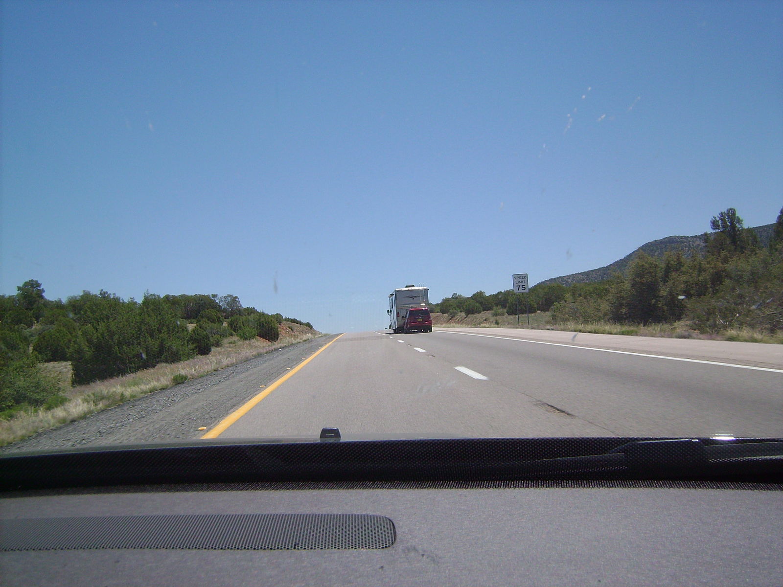Irgendwo mitten im Nichts werden wir von einer zur anderen Minute von einem undefinierbaren beigegrauen Nebel verschluckt. Ab hier nimmt die gesamte Umwelt einen gespenstisch-düsteren Endzeitcharakter an. Erst nach einigen hundert Kilometern und kurz vor dem Ziel werden wir von dieser Wolke wieder ausgespuckt. Als wir in Albuquerque angekommen unsere Einkäufe in den Kofferraum packen wollen, rieseln überall Ascheflocken aus den Ritzen und uns wird klar, dass wir nicht in einen Sandsturm geraten sind, sondern direkt an dem 1600 km² großen Waldbrand in Arizona vorbei gefahren sind. Beeindruckend und beängstigend zugleich!