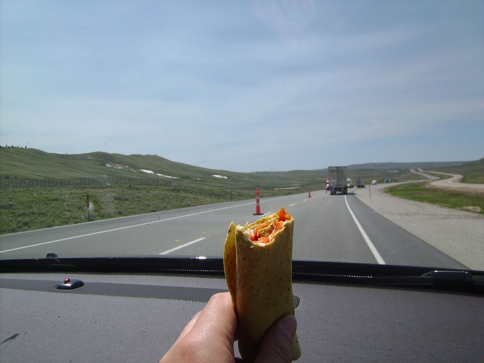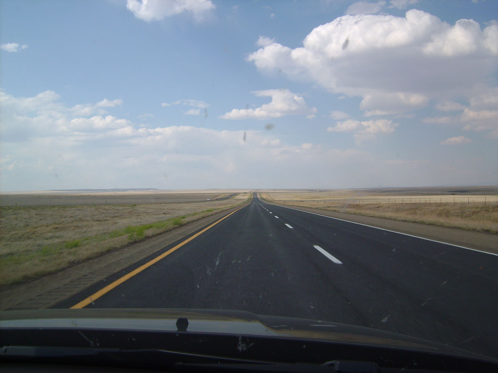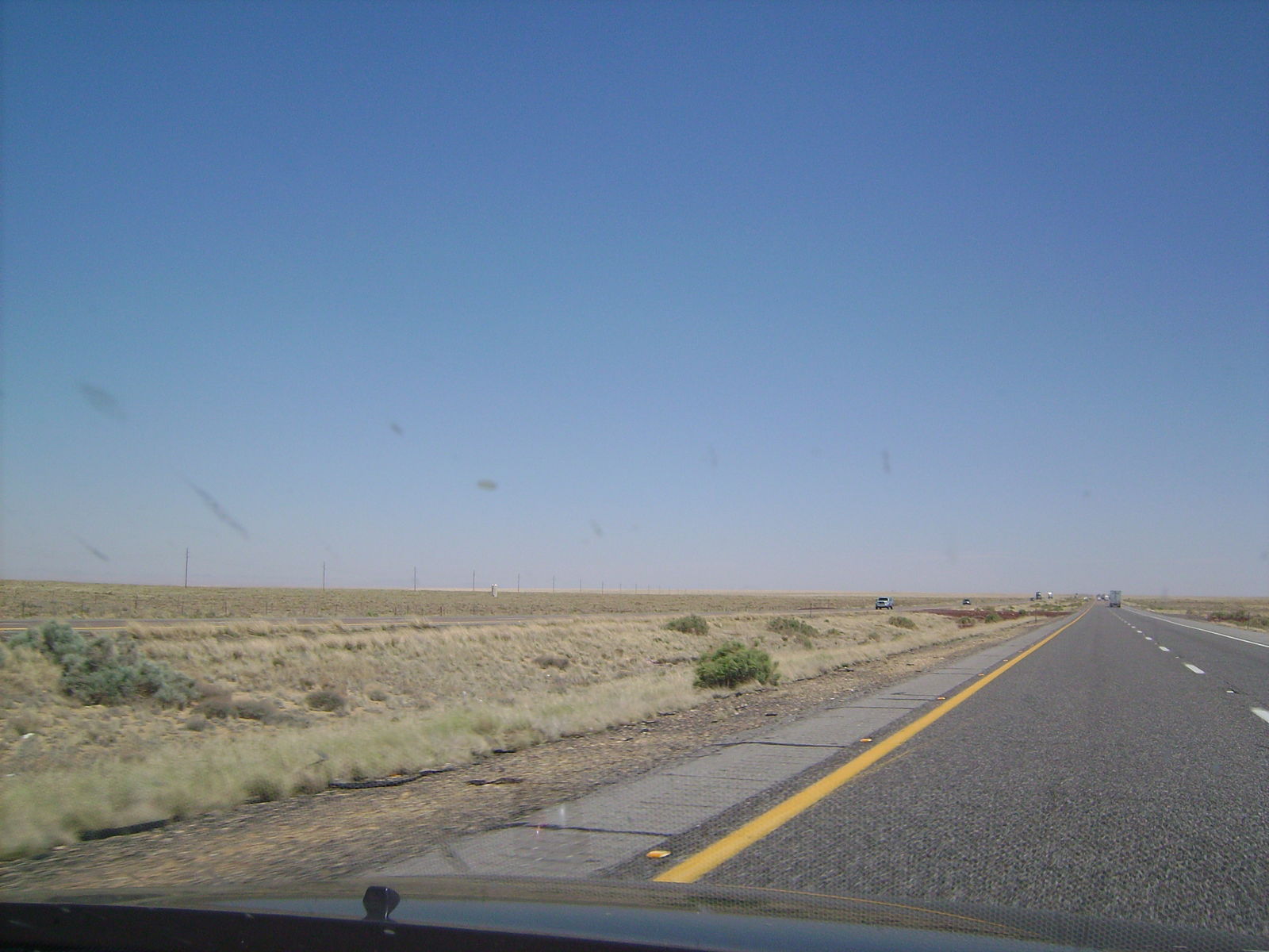 Wieder im Auto geht's weiter auf der Interstate geradeaus. Aus Wüste ist jetzt Steppe geworden, auf der sich statt Schupppenkriechtieren jede Menge noch lebender Beefburger tummeln.