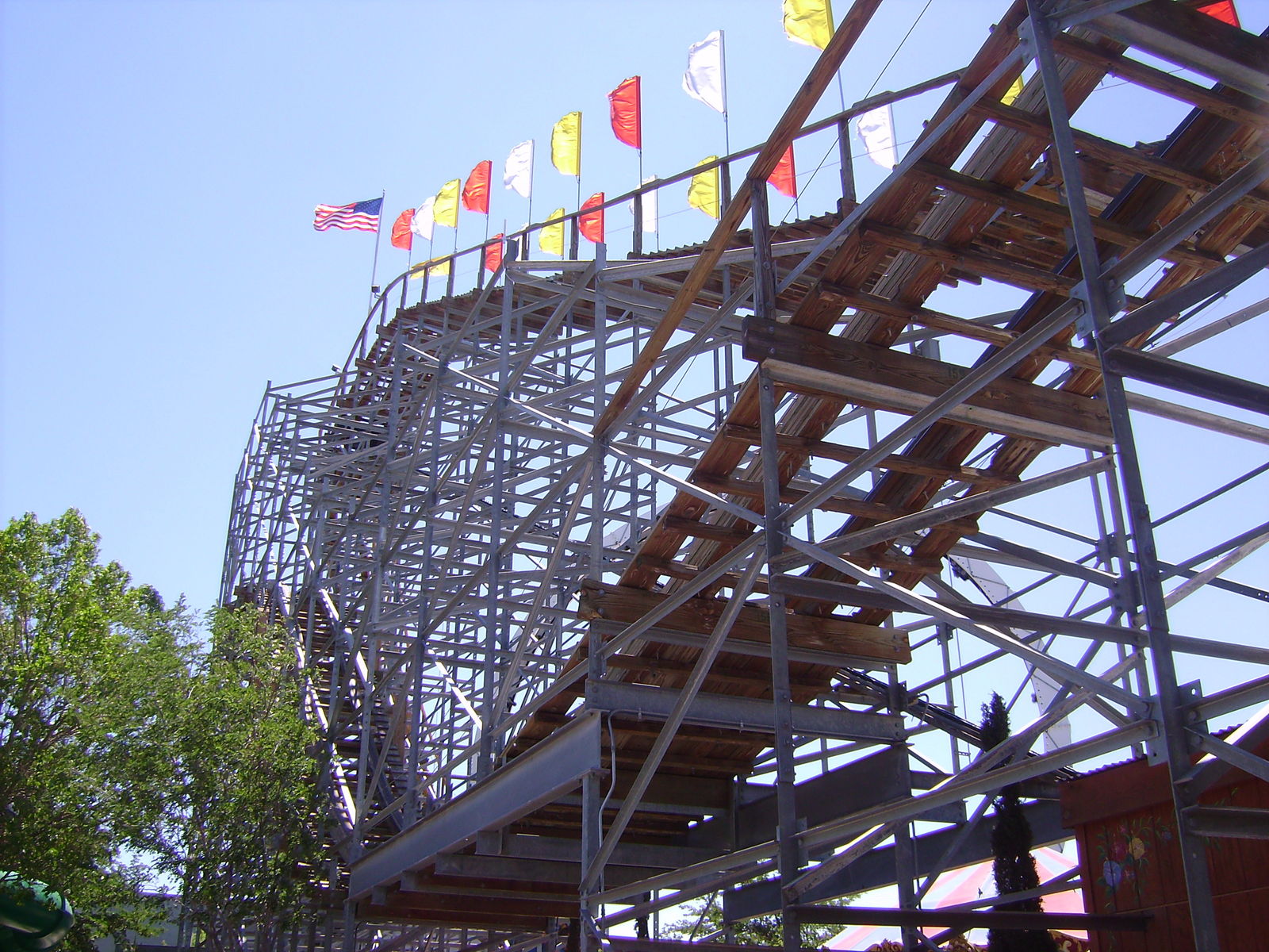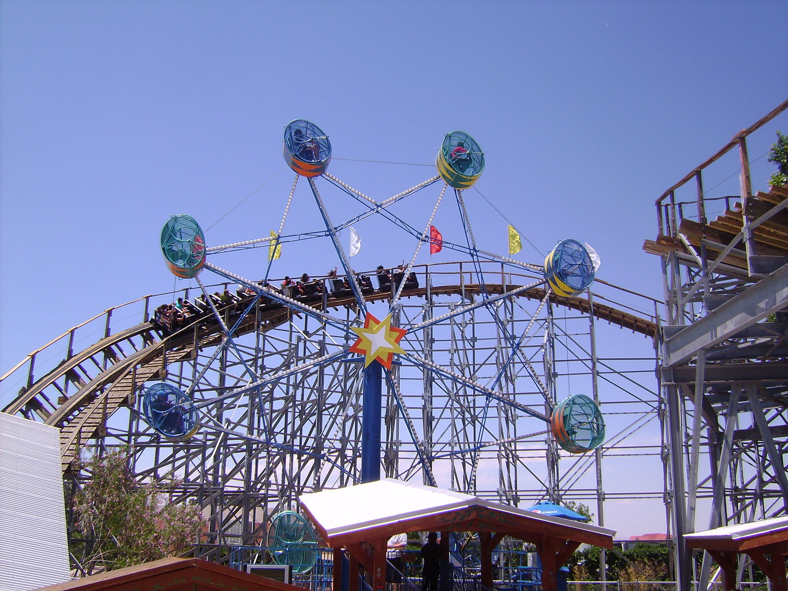 Mit einem klassischen US-Coaster-Urlaubs-Frühstücksritual starten wir in den Tag, um anschließend den Steinwurfabstand zu Knotts Beerenfarm zu überwinden. Schnell die ADAC Karte gezückt, um den Parkbetreibern 30% des Eintrittsgeldes vorzuenthalten und dann ab zu unser neuen Lieblingsfarbe für heute: Rosa. Im Zug Platz genommen, verlassen wir diese beschleunigte Sitzgelegenheit für die nächsten 4 Fahrten nicht mehr. Vier weitere Queue Durchläufe vergehen, bis der Ruf des gespenstigen Holzes so laut wird, dass wir ihm nicht mehr widerstehen können. Mehrere Downtimes und schwerwiegende Beladungsprobleme später sitzen wir endlich im Zug und genießen die unendlich lange und eher für fortgeschrittene Holzexperten geeignete Fahrt. Ansteigende Besuchermassen und dadurch deutlich länger werdende Wartezeiten erleichtern uns die Entscheidung, ein kleines Päuschen einzulegen. Mit einem Handstempel präpariert verlassen wir den Park, um eine kleine Zwischenmahlzeit einzunehmen. Nach dem Biss in ein selbstbelegtes Brötchen sind wir bereit, im 3 Kilometer entfernten Adventure City zwei exotische Coastersnacks als Nachtisch zu uns zu nehmen.