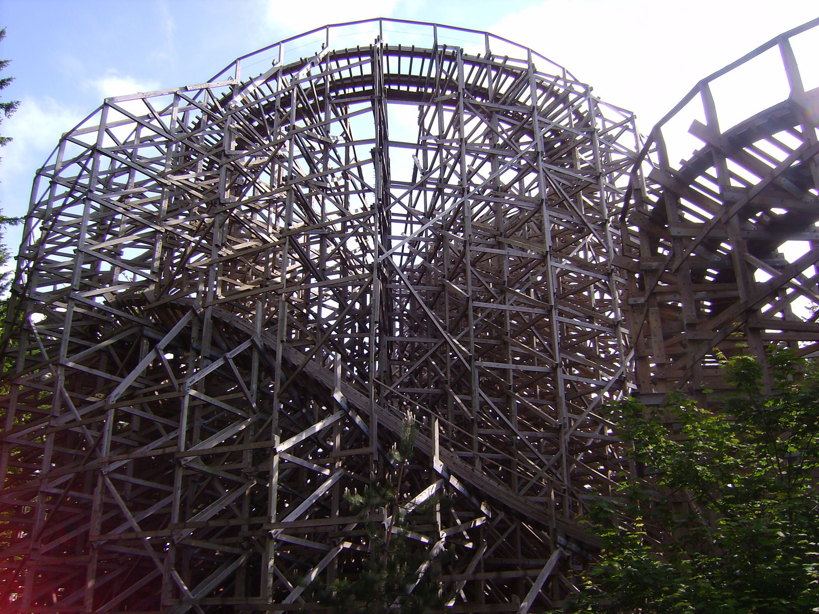 Colossus ist einer der sanftesten Woodies unserer bereits stattlichen Sammlung befahrenen Holzes und ist, wie so viele seiner Racingkollegen, leider nur auf einer Spur unterwegs. Apocalypse fährt sich nach viel zu langer und überflüssiger Pre-Show wie die anderen GCIs auch und hat dabei dennoch eine ganz individuelle Fahrweise. Dieser Holz gewordene Weltuntergang ist schnell und wild und vor allem schnell und bei Dunkelheit wirkt er noch viel schneller und wilder. Und vor allem schneller. Mit diesen Holzeigenschaften katapultiert er sich direkt in die Spitze unserer Lieblings-