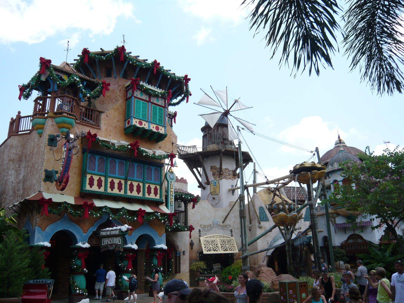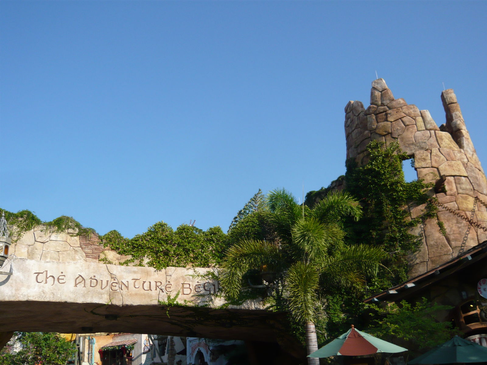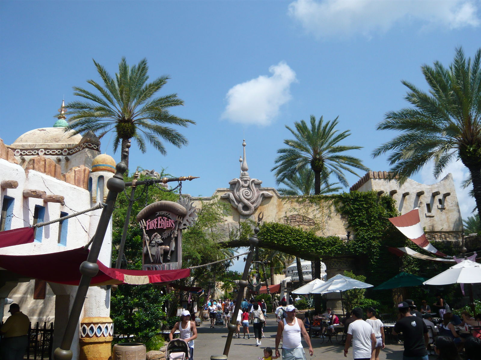 Die Mainstreet des Parks, Port of Entry, ist sehr eindrücklich und detailverliebt als eine Art orientalische Handelsstadt gestaltet. Das bereits in den Studios für gut befundene hohe Gestaltungslevel wird hier also schon mal nahtlos fortgesetzt. Man fühlt sich echt gleich wie in eine andere Welt versetzt. Ganz getreu dem Begrüssungsspruch über dem Eingangsbogen heisst es nun also: "The adventure begins..."