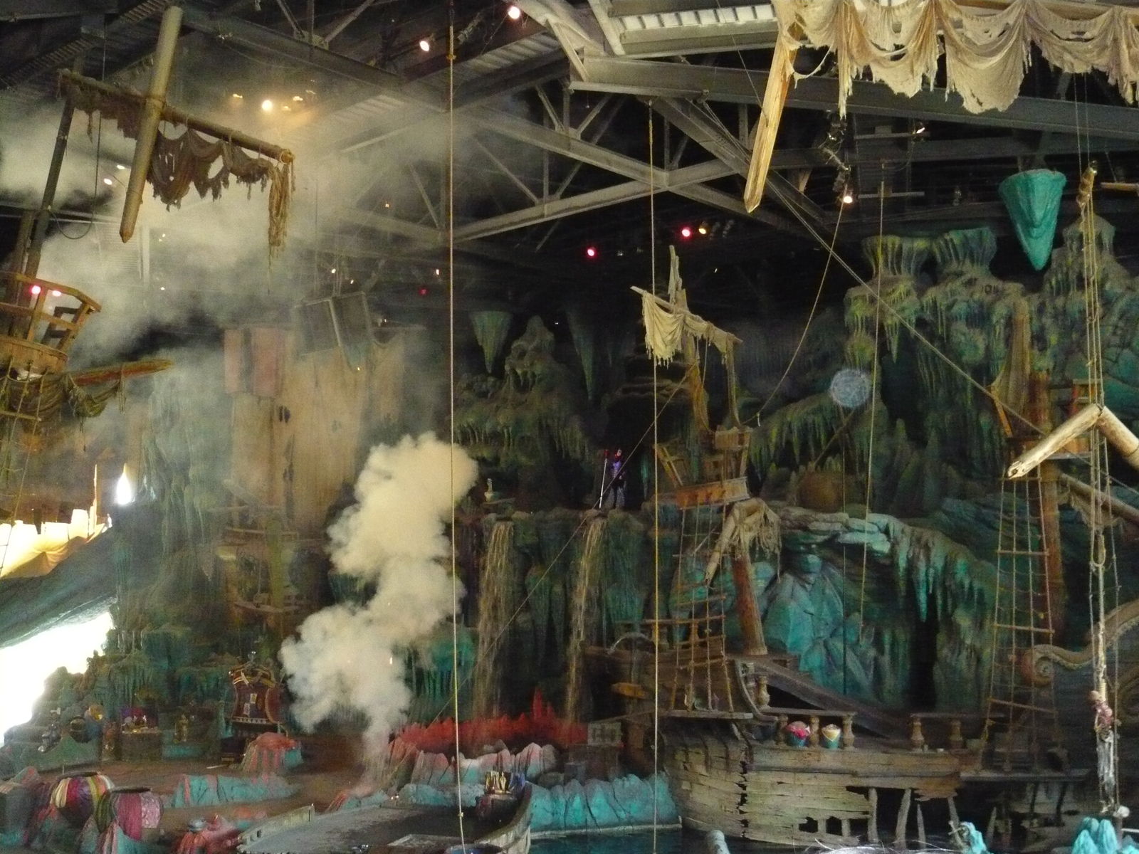 Die Tour führt durch zwei Showräume und wird von einem etwas trotteligen Archäologen-Lehrling abgehalten. Im Prinzip will er uns nur die Räumlichkeiten und Funde zeigen, aber irgendwie entwickelt sich das Ganze zu einem Machtkampf-Szenario - der Rivale von Meeresgott Poseidon, der sich über Lautsprecher und verschiedene Lichteffekte bemerkbar macht, will scheinbar endgültig die Macht ergreifen! Poseidon lässt sich dies natürlich nicht gefallen und so entwickelt sich nach und nach ein mit mitreissender Musik untermalter Showdown, den die beiden Gottheiten mit einer geballten Ladung Wasser-, Licht-, Wind- und Feuereffekten austragen. Die Mischung aus Live-Acting, Lautsprecherdialog und den eingespielten Effekten ist interessant gemacht, hat uns aber im Universal-Vergleich nicht wahnsinnig vom Hocker gehauen. Hier ist das Gesamterlebnis sehr vom spielenden Guide abhängig, der bei unserem Durchlauf einfach zu sehr "Möchtegern-Steve Carell" wirkte, um Sympathiegefühl aufkommen zu lassen. Da gibt es auf dem Universal-Gelände schlicht bessere Shows. Aber schon allein wegen dem unten abgebildeten Wassertunnel, der vom einen Showroom in den anderen führt, lohnt es sich, hier vorbeizuschauen! Man kriegt zwar eine halbe Chlorvergiftung ab, aber der Anblick der scheinbar um einen herum rotierenden Wasserdruckstrahlen ist faszinierend!