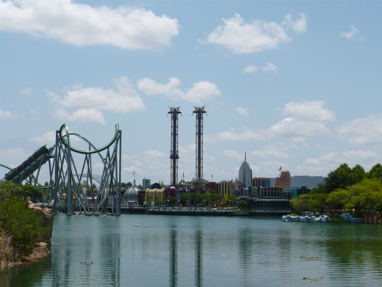 Nun war es Nachmittag und die Hitze fast unerträglich geworden - auf den Wegen kam man kaum noch vorwärts vor lauter Menschen und alles strömte zu den Wasserbahnen. Sogar beim Kapazitätswunder Jurassic Park waren 60 Minuten Wartezeit angegeben. So haben wir dann erst einmal nur einen Fotorundgang um die Lagune herum gemacht, haben noch einige Wiederholungsfahrten mit Hulk getätigt und sind dann für eine späte Mittagspause aus dem Park raus. Unsere mitgenommenen Badesachen konnten wir derweil im Spind beim Eingang lassen, dank eines eigens erstellten PIN-Codes konnte man da den ganzen Tag ein und aus gehen. Nach einem kurzen Nickerchen im Hotel haben wir dann sehr gut beim von Herrn Alvey und seiner Truppe immer so viel gelobten Carrabba's Italian Grill gespiesen und sind dann abends wieder in den Park zurück gekehrt. Dort haben wir uns in den Toilettenräumen neben dem Spindbereich umgezogen und haben dann mit Badehosen, Badelatschen und T-Shirt ausgestattet noch die Wasserbahnen im Bereich Toon Lagoon gestürmt, wo inzwischen Walk-on angesagt war.