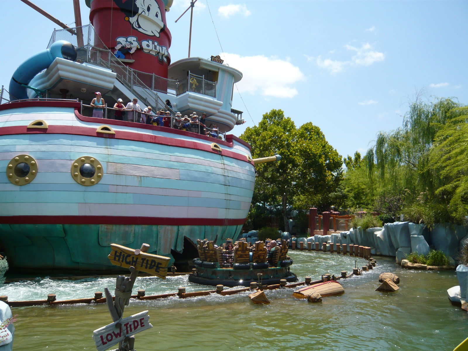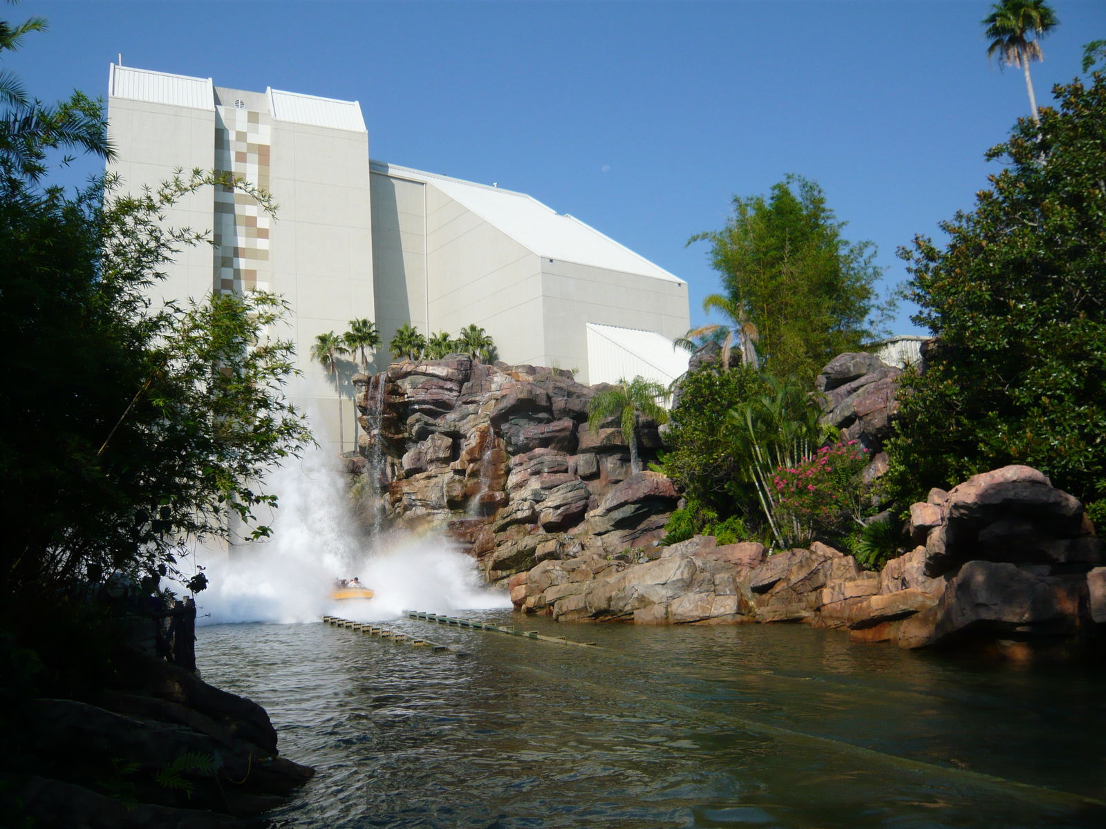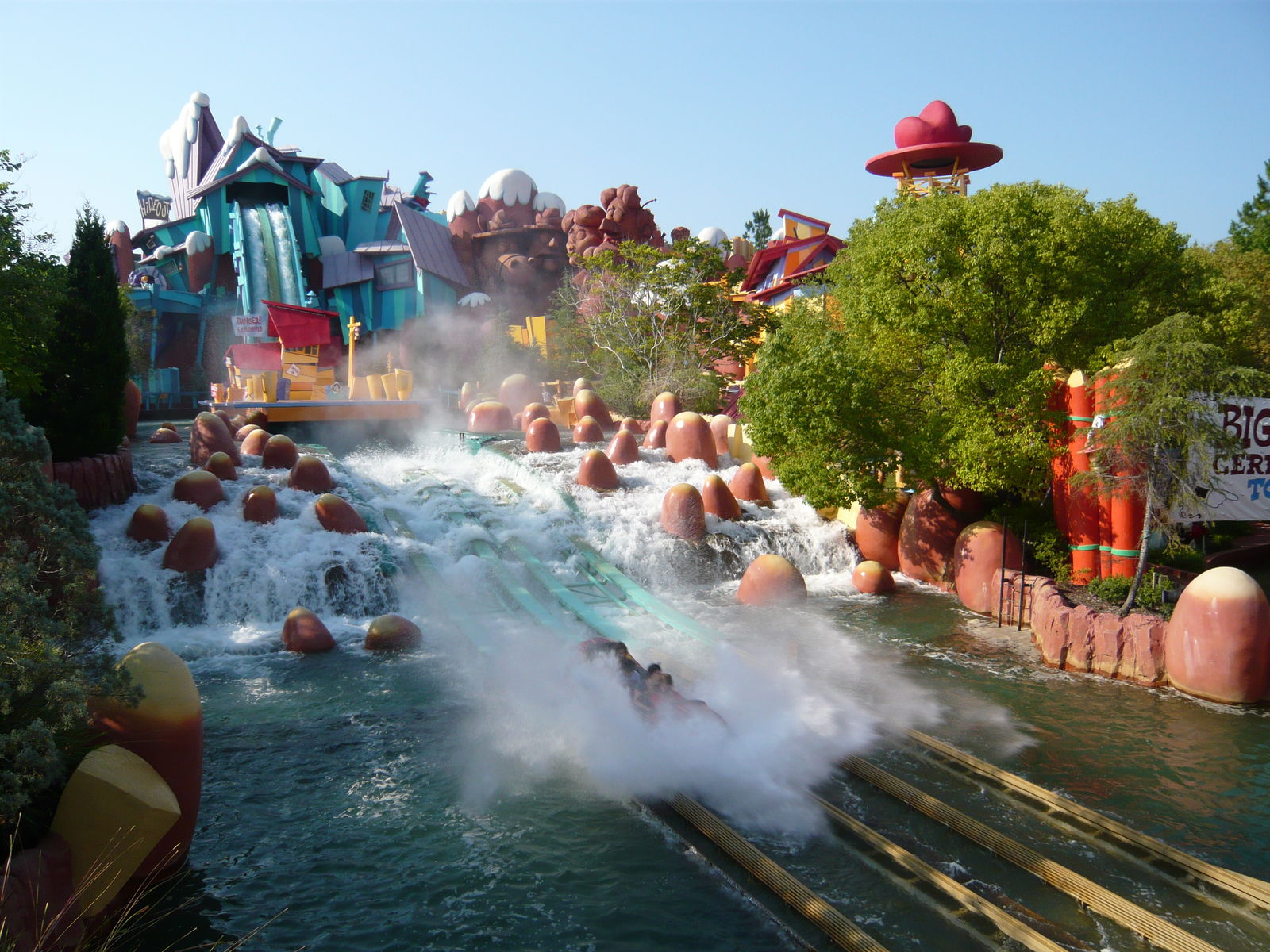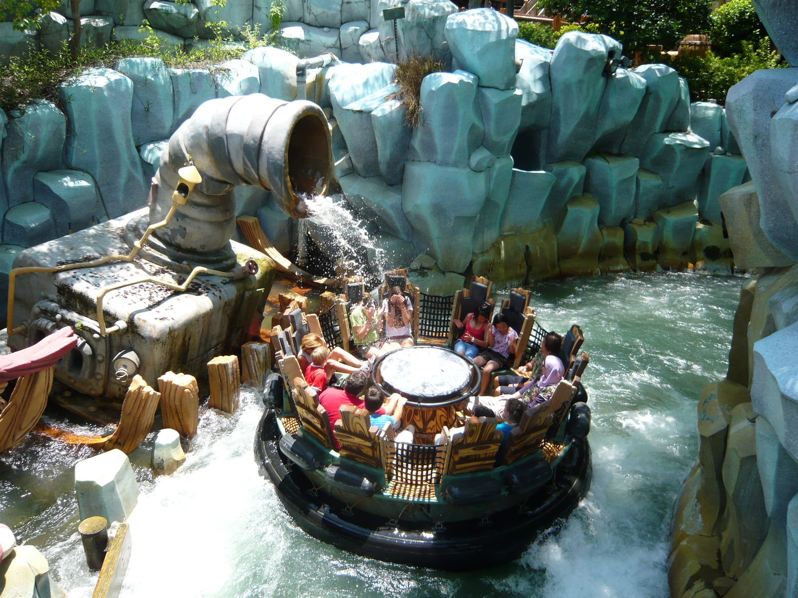 Die Fahrt selbst ist sehr lang, mit unzähligen Animatronics und witzigen Szenen gesäumt, besitzt insgesamt drei Schussfahrten und ist neben Splash Mountain im Magic Kingdom wohl eine meiner neuen Lieblings-Log Flumes! Sensationell detailverliebt und quietschbunt gestaltet! Auch hier hat sich die spezielle Montur bewährt. Bei jedem Eintauchen in den Kanal schwappte eine stolze Wasserladung ins Boot, es gab vereinzelte Wasserkanonen und Fontänen, auf den beiden kleineren Schussfahrten wurde man so nass wie man es auf manchen europäischen Spillwaters nicht wird und die berühmte, finale Schussfahrt liefert ein derart konstantes Dampfkondensierungs- und Spritzwasserbombardement, dass einem hinterher sogar komplett die Haare triefen. Ein irrsinniger Spass und einfach sensationell cartoonhaft thematisiert!