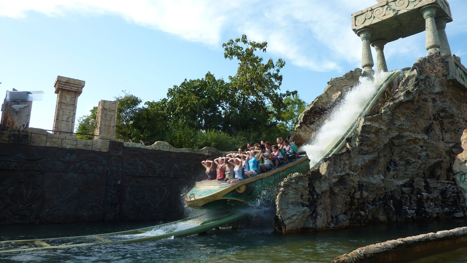 Achso: Und wegen Nässegrad bei Fuga di Atlantide: Ich war bisher immer enttäuscht von der Bahn - bis zu dem diesjährigen Ride. Das erst mal dass ich Frontrow saß und wir 4 konnten uns alle nicht beschweren, dass wir nicht komplett nass waren. Außerdem helfen die 3 Spritzkanonen nach dem 2. Drop, die von Gästen bedient werden können, auch noch ordentlich nach.