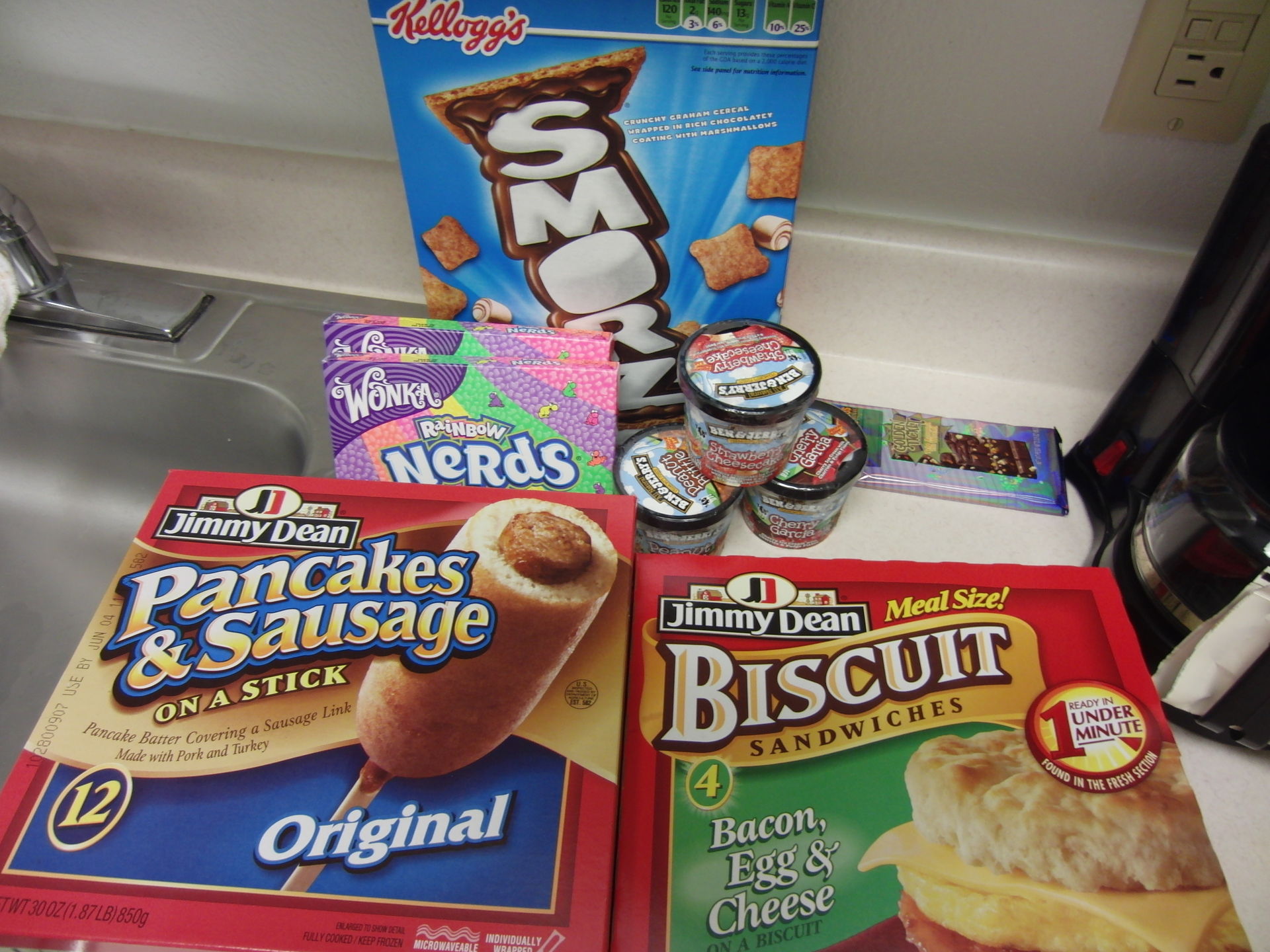 Mac and Cheese, Sloppy Joe, Hamburger Helper, Hotdogs, Hotpockets und diverse andere Tiefkühlgerichte, Grilled Cheese Sandwiches, Pizza und weitere gefühlte 5 mio Dinge.