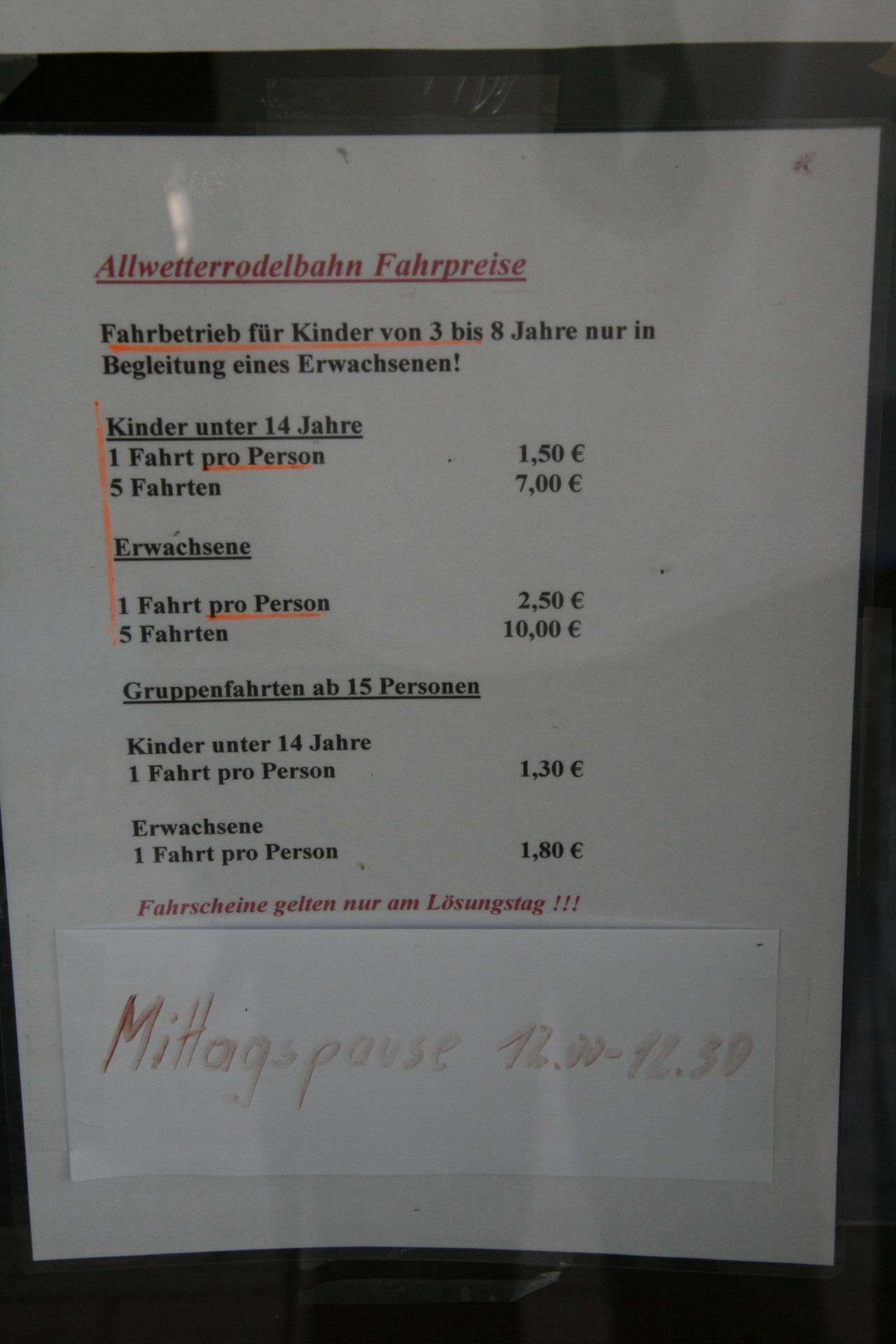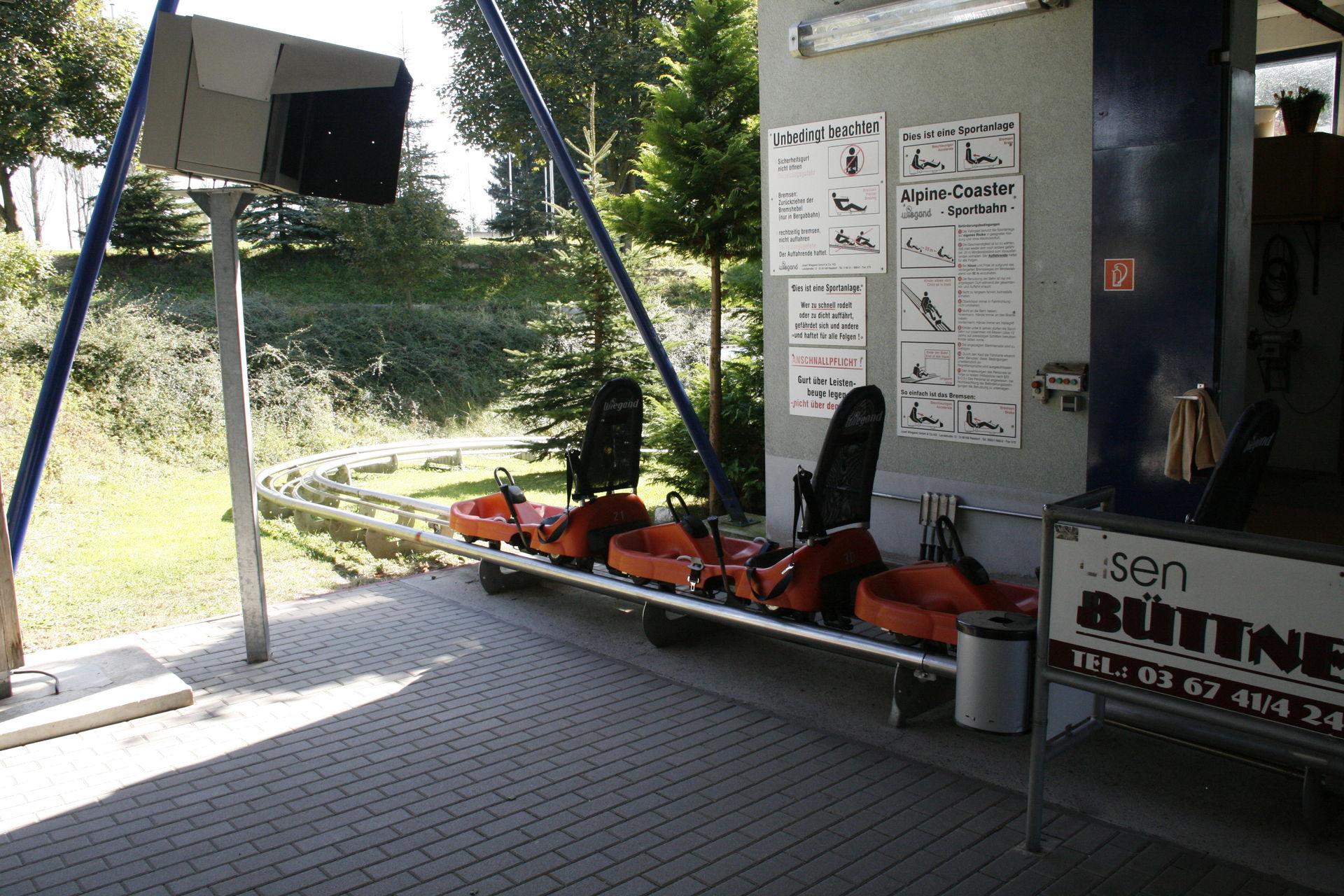 Vor dem Start hieß es erstmal warten. Ich hatte übrigens ernsthafte Zweifel, ob die Anlage überhaupt öffnet, weil auf dem gesamten Areal bis auf zwei Autos alles ausgestorben schien. Glücklicherweise kam ein Mitarbeiter auch recht pünktlich und hat seine auf dem Schild angekündigte Mittagspause nicht abgehalten.