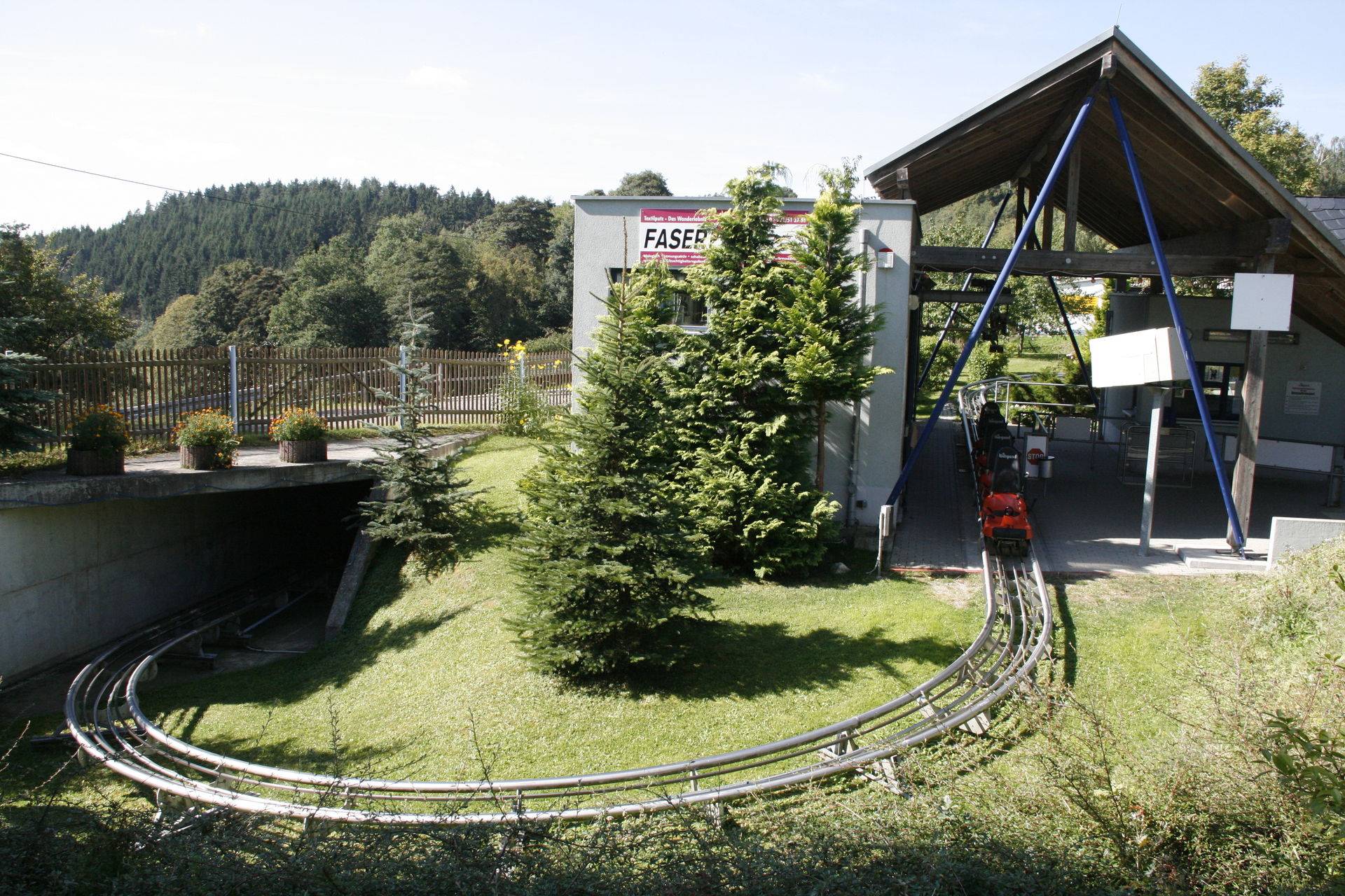Nach dem Start geht es hinab in ein Tal, welches doch eine - für die relativ kurze Anlage zumindest - interessante Streckenführung mit vielen Kurven bietet.