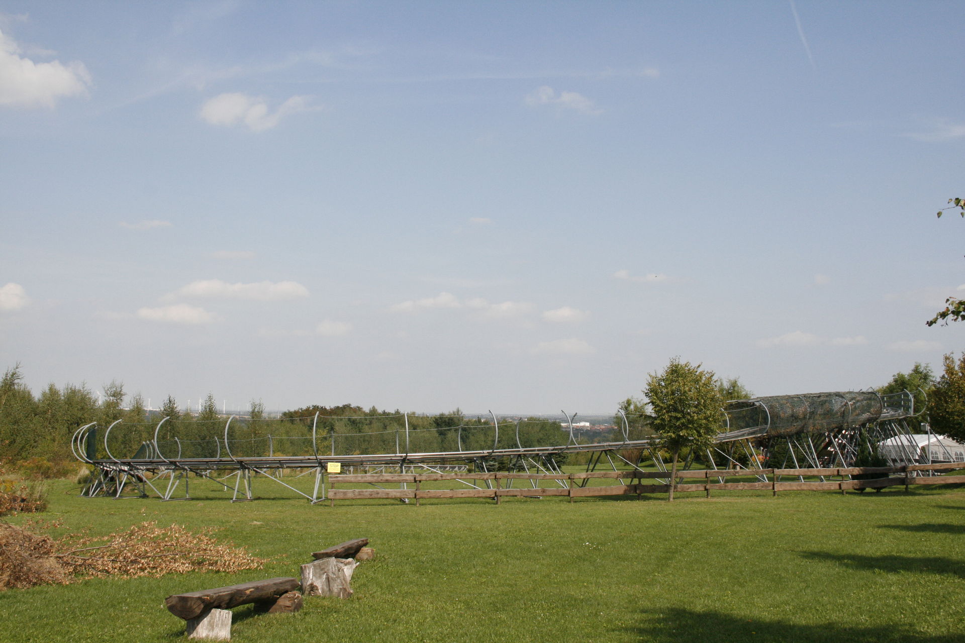 Irgendwann war der Weg dann mit "Allwetterrodelbahn" ausgeschildert, dann kann es ja nicht mehr so weit sein. Naja, irgendwann die Ortschaft Dittrichshütte erreicht und dann die Rodelbahn gesucht. Irgendwann bin ich halt dran vorbei gefahren und habe gesehen, dass sie auf dem Areal des Jugenderholungscamps - oder was auch immer das ist - liegt. Wieder zurück und dekadent mit dem Auto bis fast direkt davor gefahren.