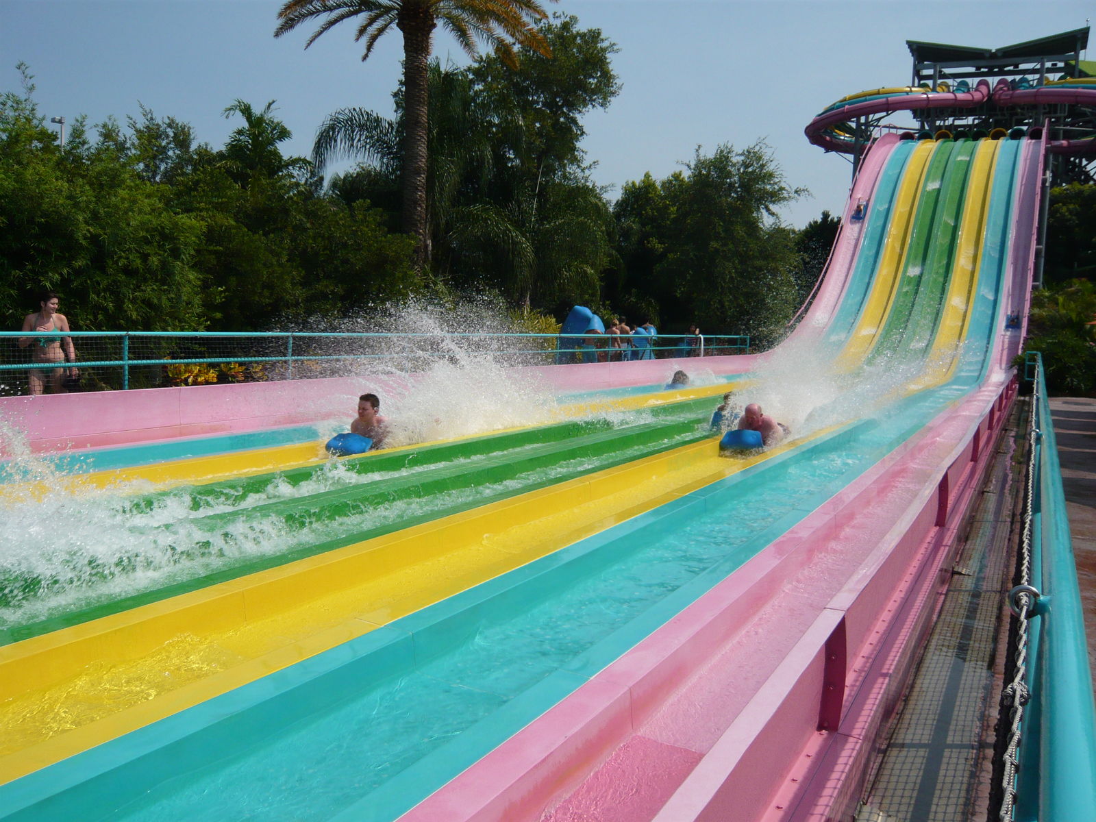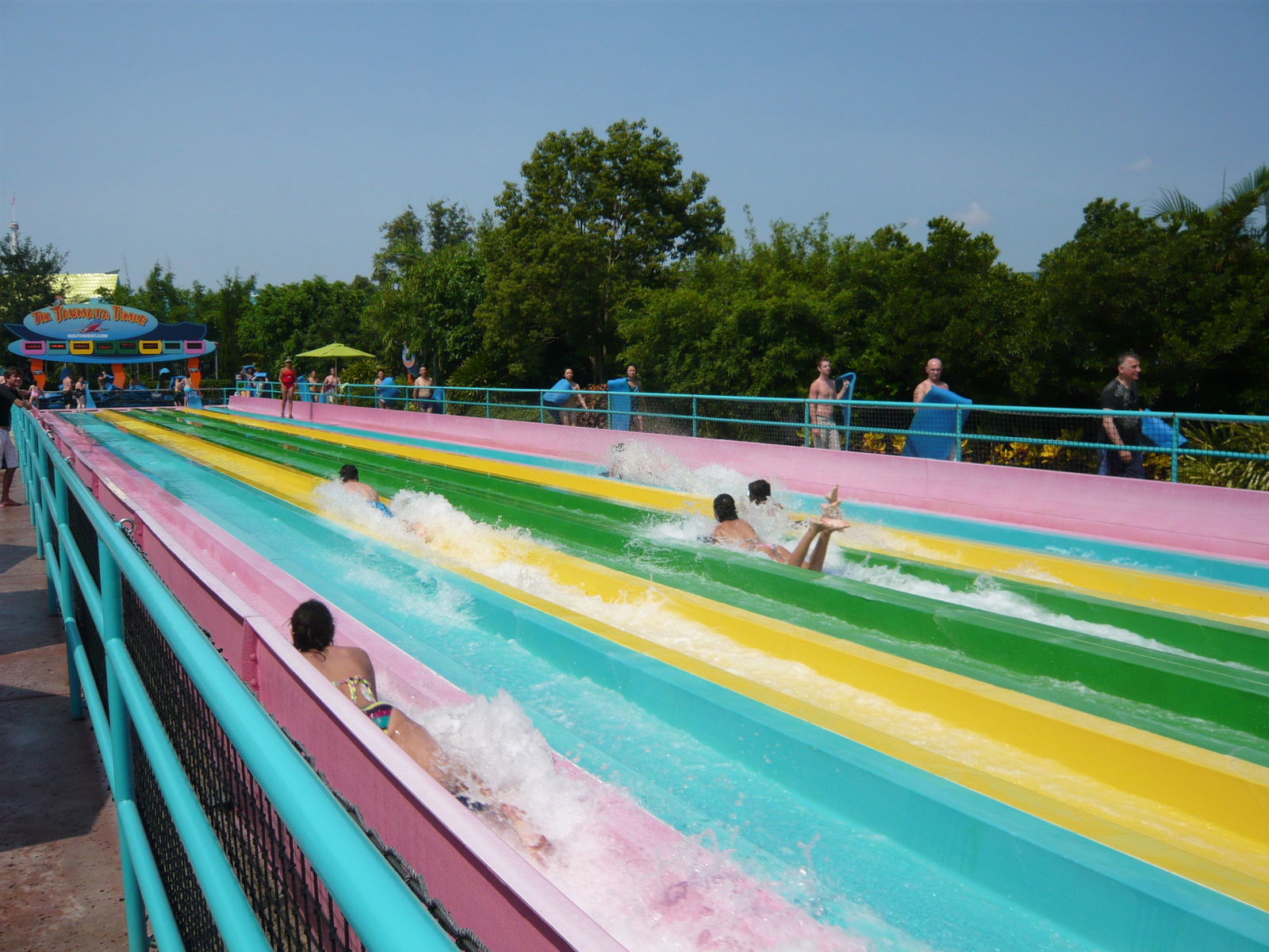 Am Tag nach unserem Besuch in Sea World war dann der hauseigene Wasserpark Aquatica an der Reihe. Auf diesen waren wir sehr gespannt, hat er in Erfahrungsberichten doch immer geradezu unwahrscheinlich bunt und von den Rutschen her sehr spassig ausgesehen! Nach unseren Erlebnissen in Wet 'n' Wild hofften wir hier auch auf abfertigungstechnisch etwas besser organisierten Wasserspass. Gleich vorweg: Dies konnte man sich an unserem Besuchstag in die Haare schmieren, weil es ziemlich voll war und die Abfertigungen stellenweise noch mühsamer als weiter oben am International Drive waren. Doch von vorn.