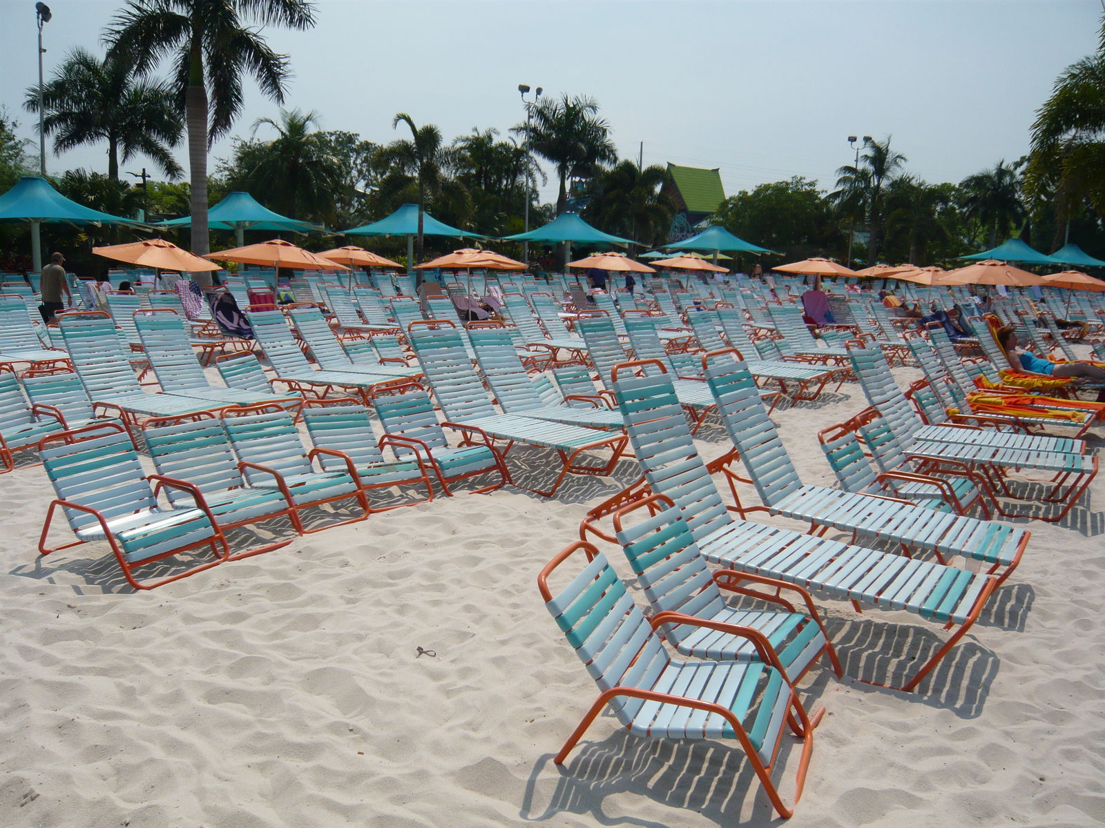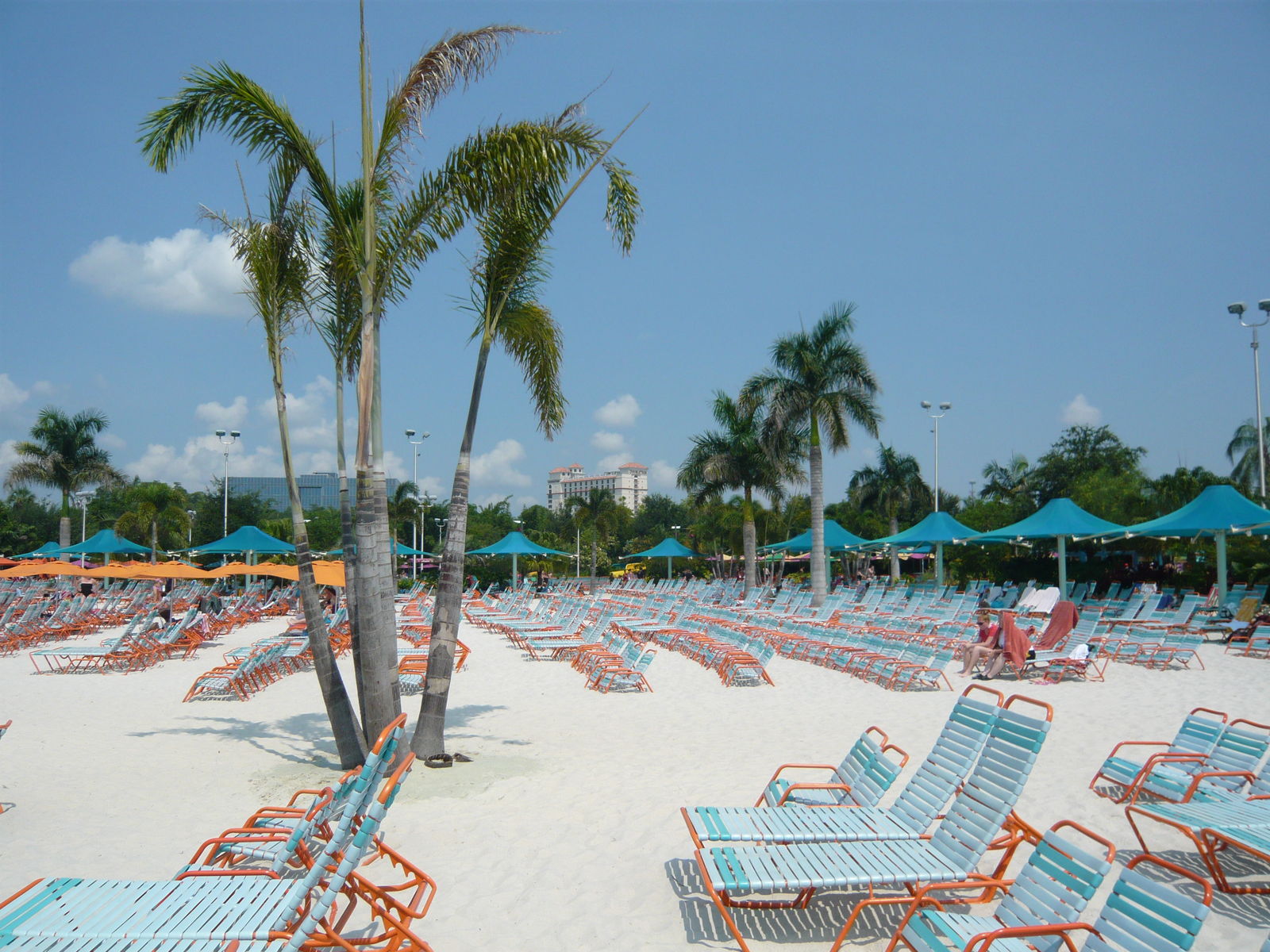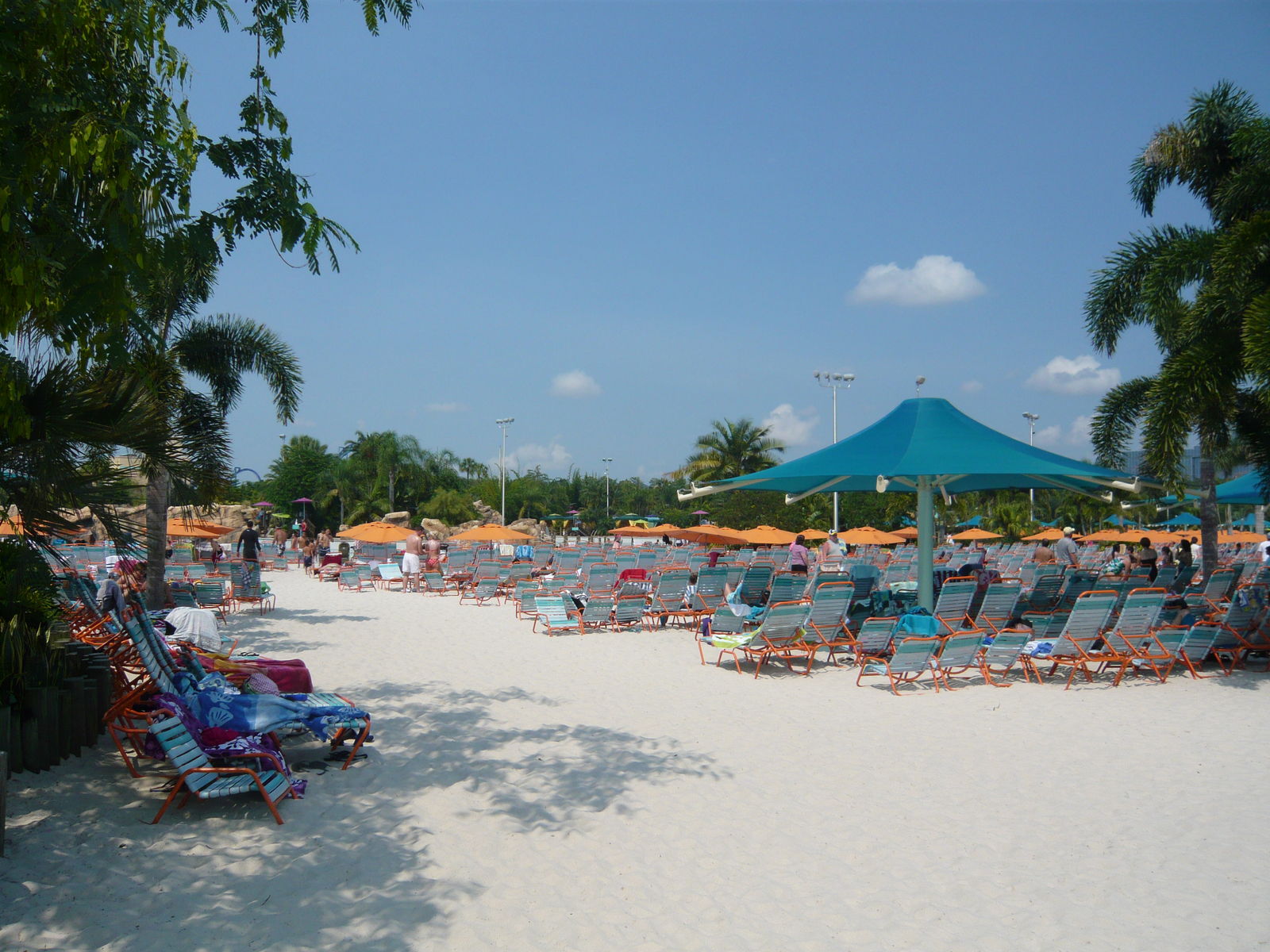 Vor den flachen Auslaufbereichen der Wellenbäder erstreckt sich noch ein sehr schöner und grosser künstlicher Sandstrand. Hier kommt echtes Ferien-Feeling auf.
