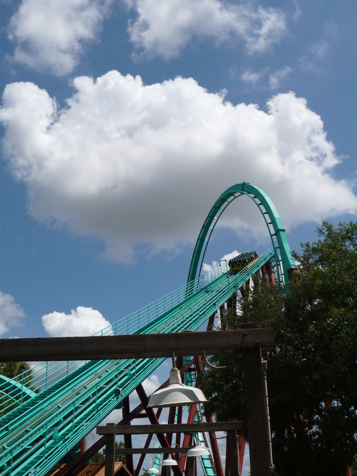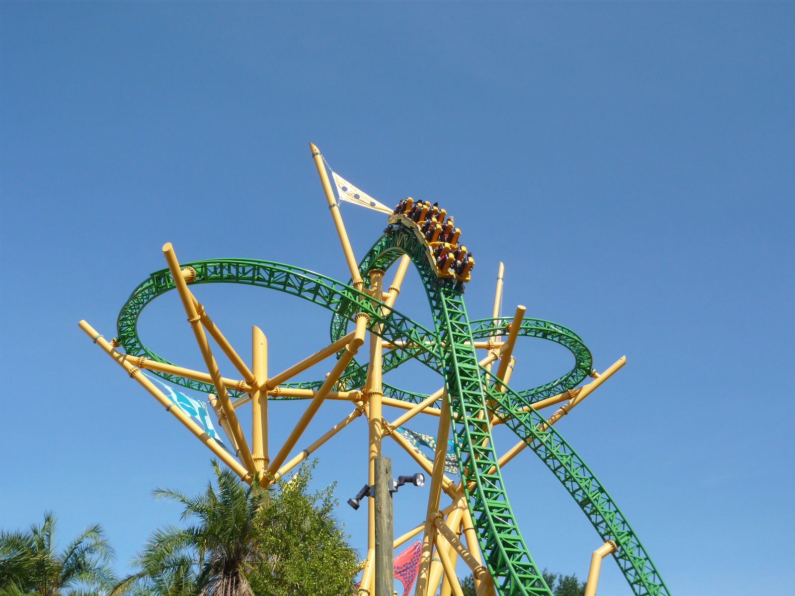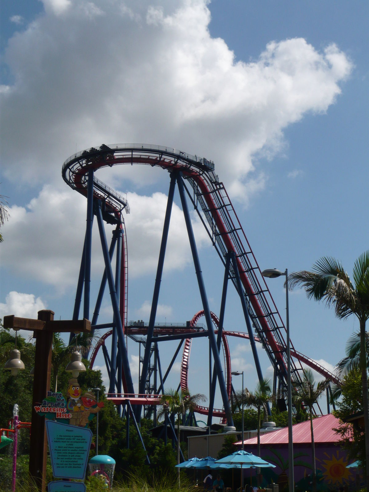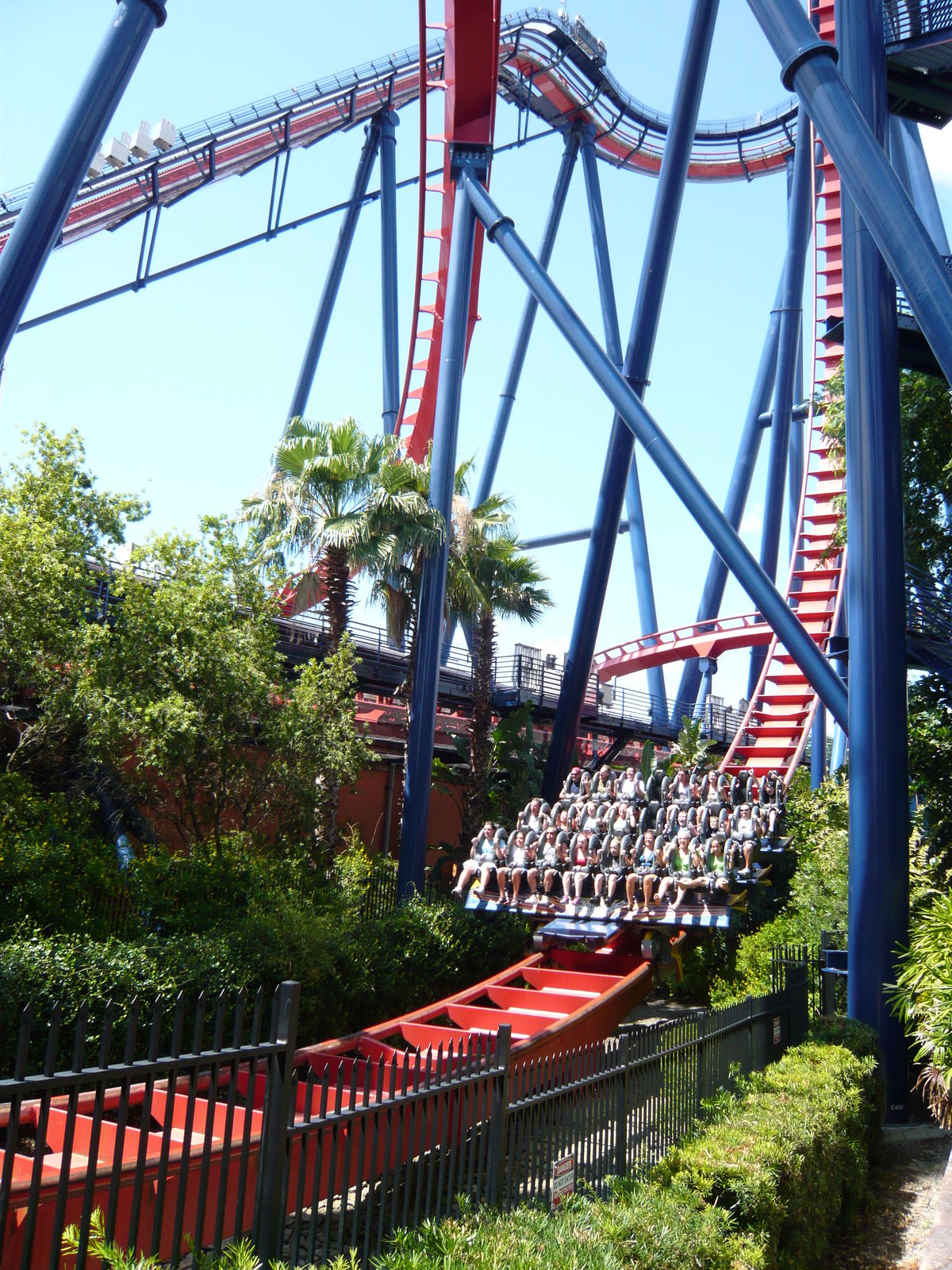 Airtime to the max! Und nicht zu knapp! Einfach irre, wie man dort bei den Schussfahrten stark und lange in die Schulterbügel hochgeschickt wird! Durch die neuen Floorless-Züge sind auch alle Aussensitze in den Achterreihen gleich noch eine Spur genialer geworden: Während man früher die Beine zwar auch nicht auf den Boden stellen konnte, gibt es heute schlicht gar nichts mehr, dass zwischen den eigenen Beinchen und dem 60 Meter tiefer liegenden floridianischen Boden liegt. Unglaublich, wie man da bei jeder Fahrt aufs Neue zittert.